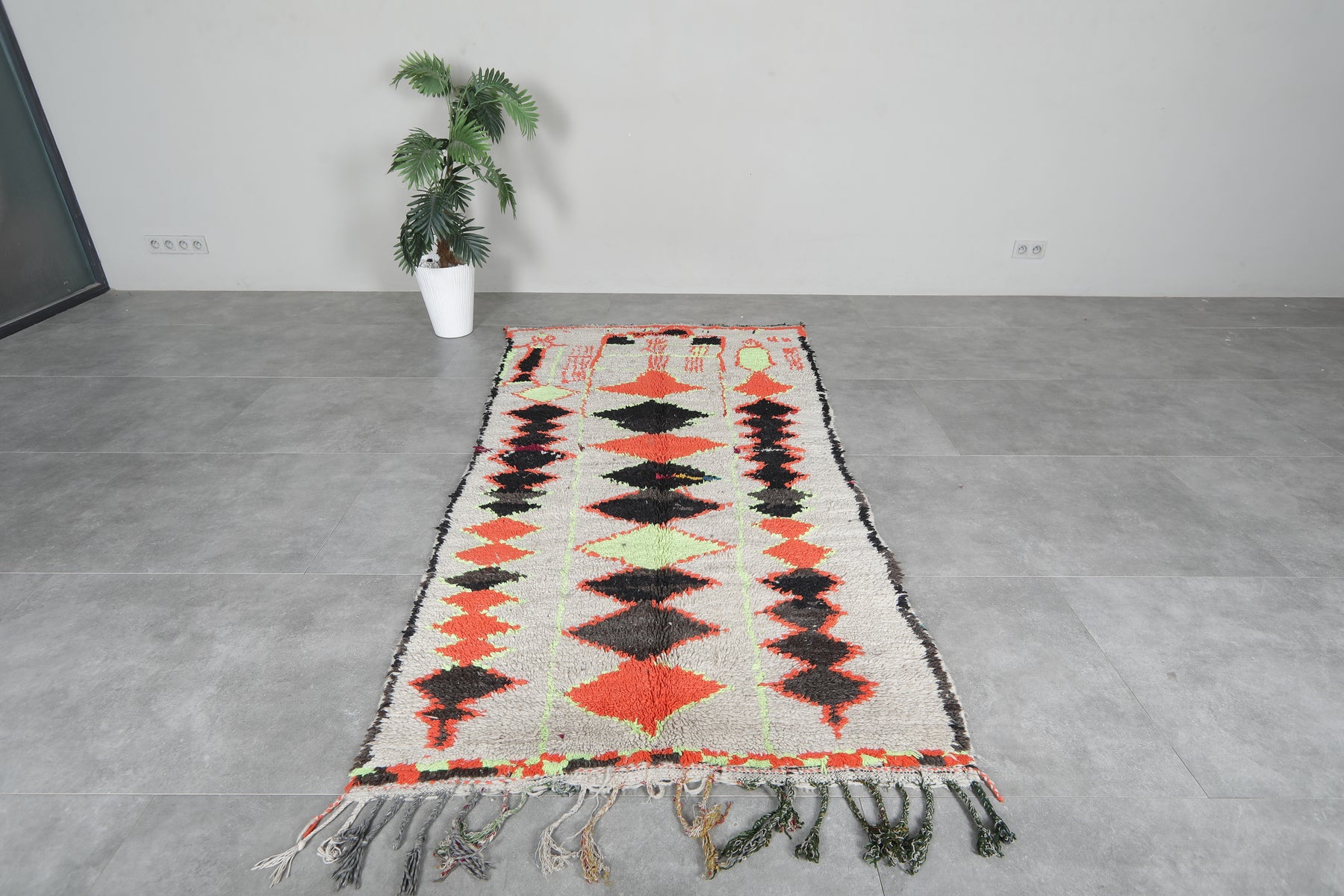 Colorful Moroccan Wool Rug 3.7 X 8.1 FT Berber Rug