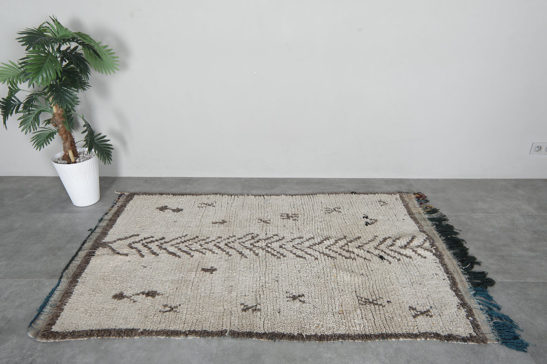 Handmade All Wool Rug 3.8 x 6.5 ft Moroccan Berber Carpet