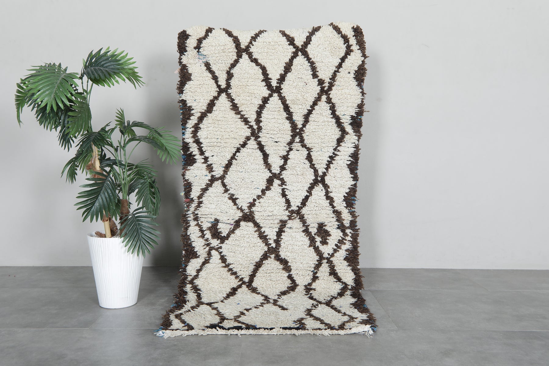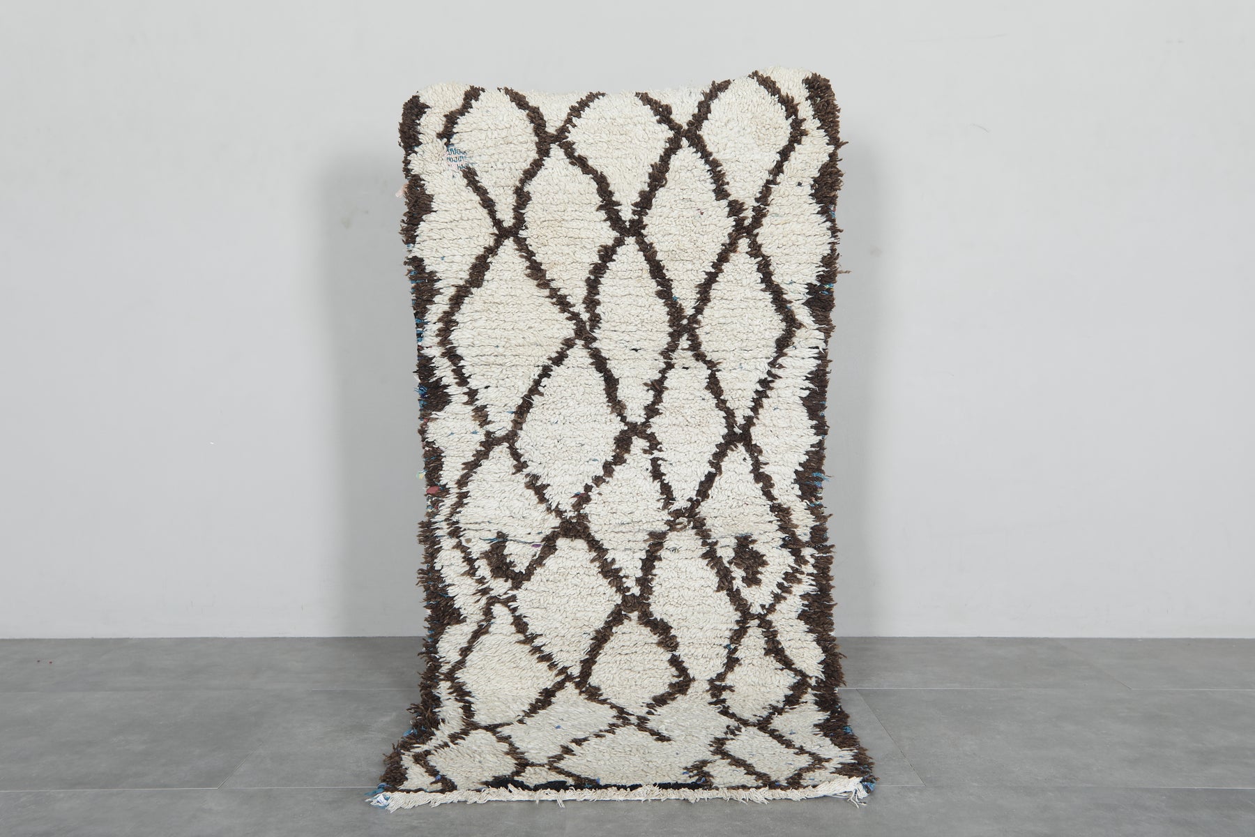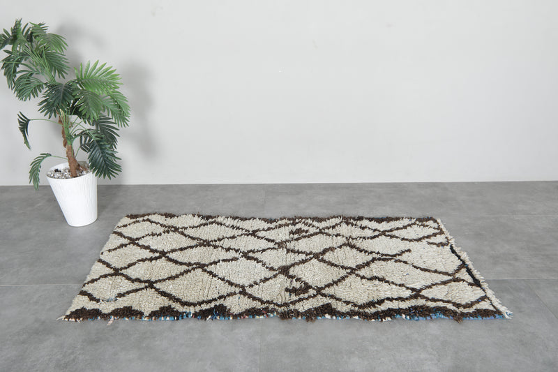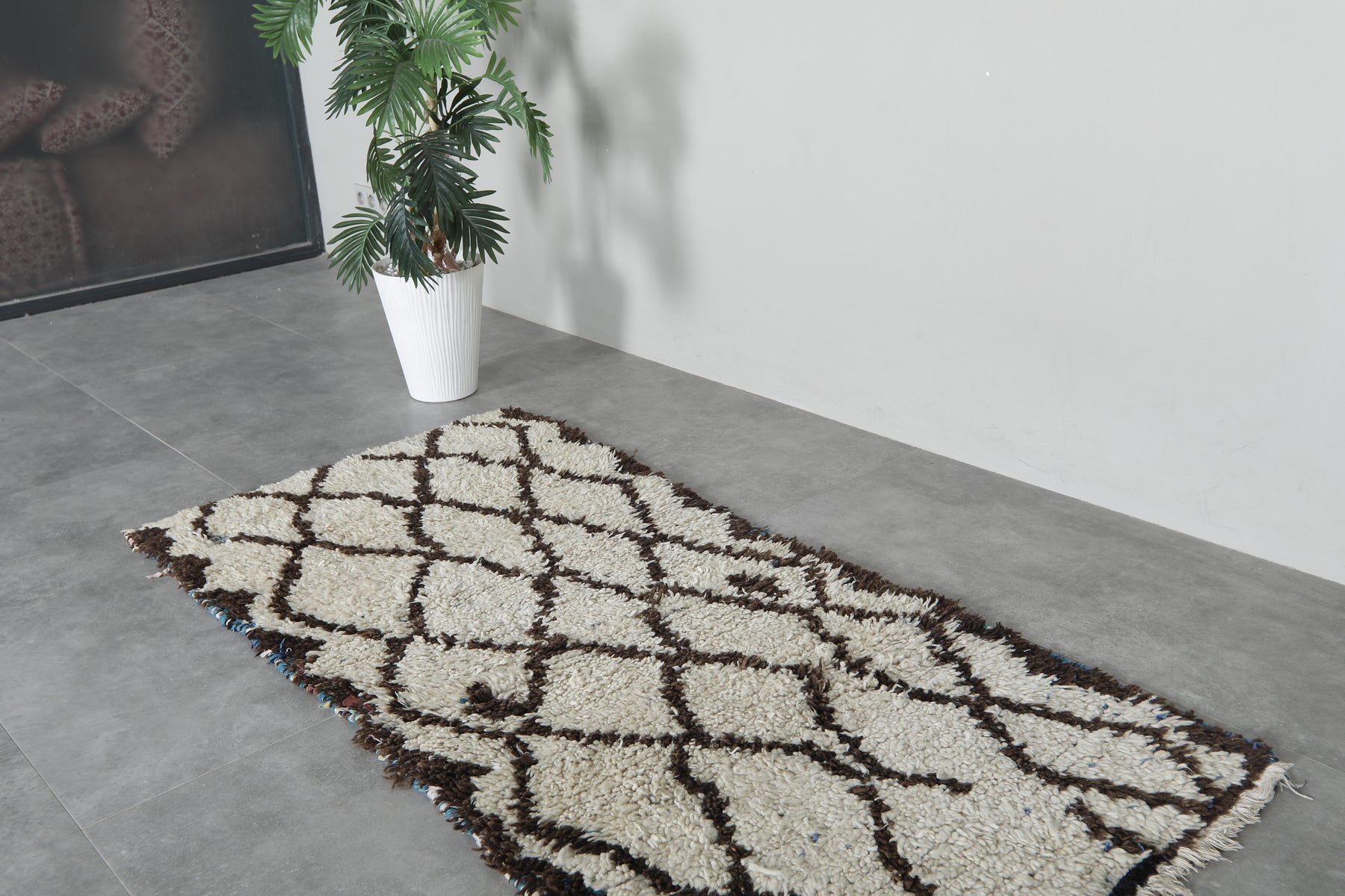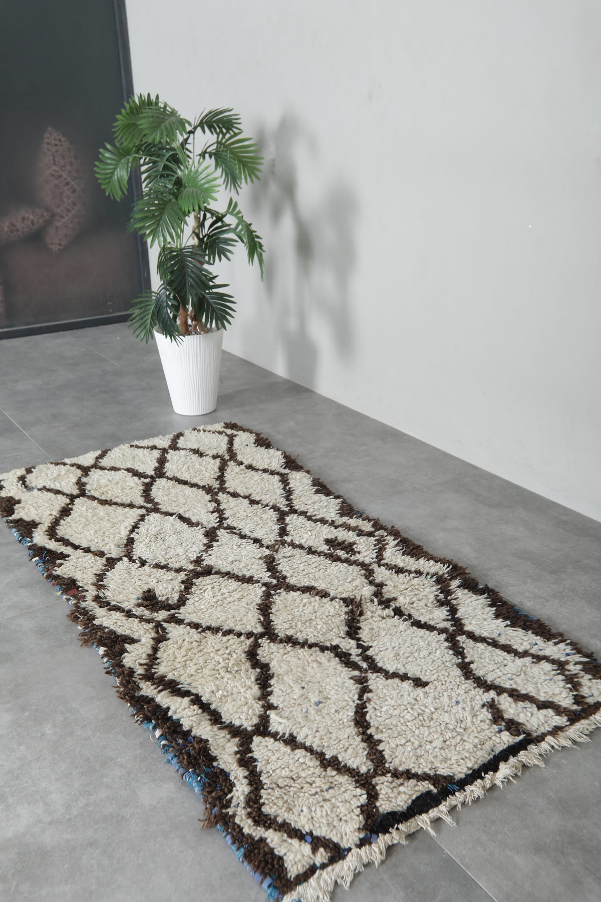 Expertly crafted with timeless techniques, this 2.6 X 5.9 FT handmade Boucherouite rug adds a unique touch to any space. Made by skilled artisans, the intricate design and quality materials ensure durability and lasting beauty. Elevate your decor with this authentic Berber rug.