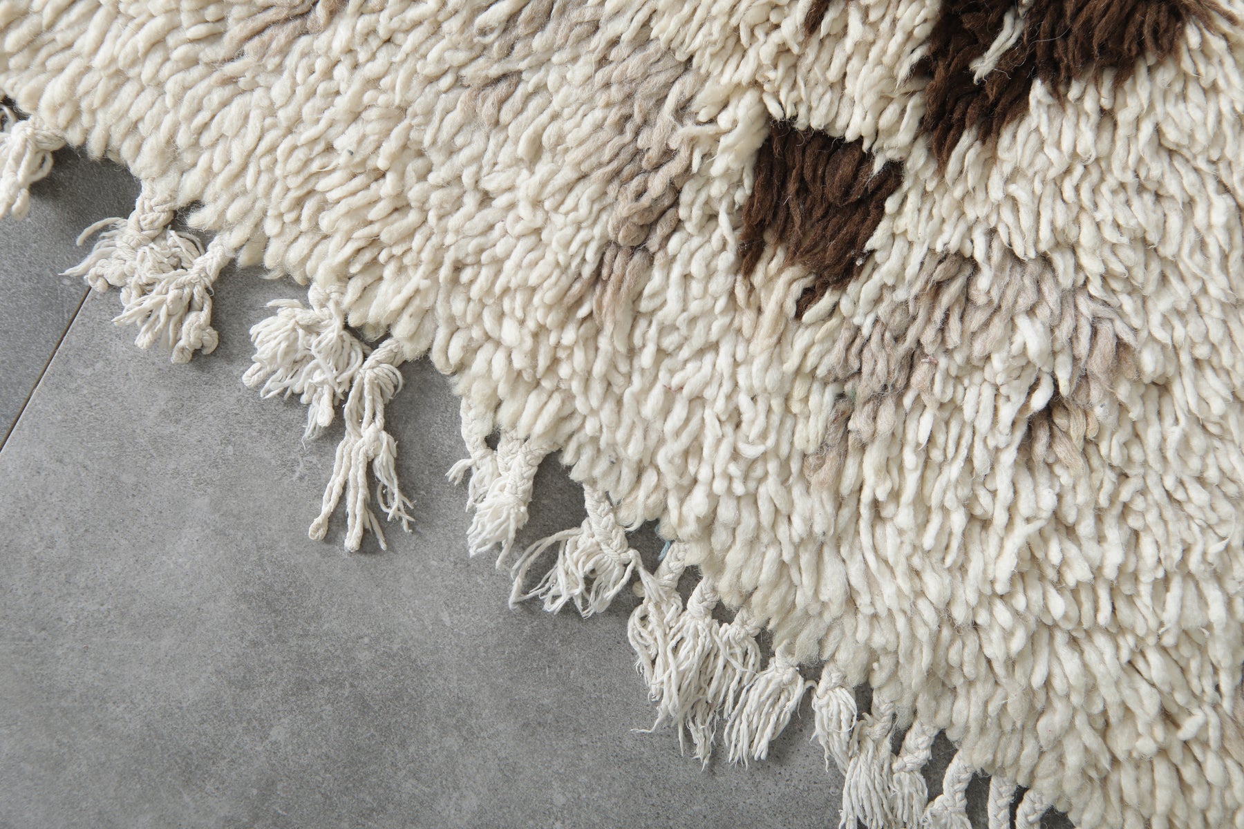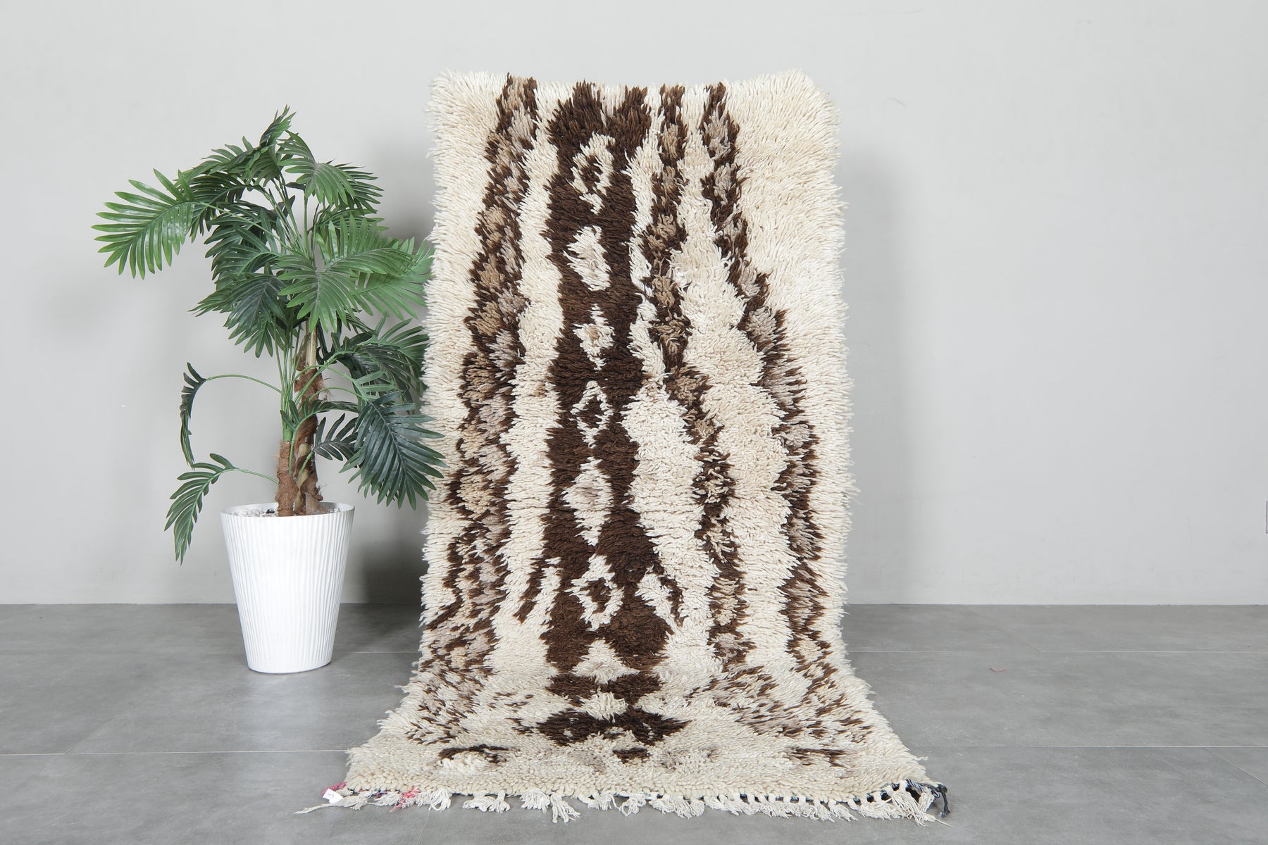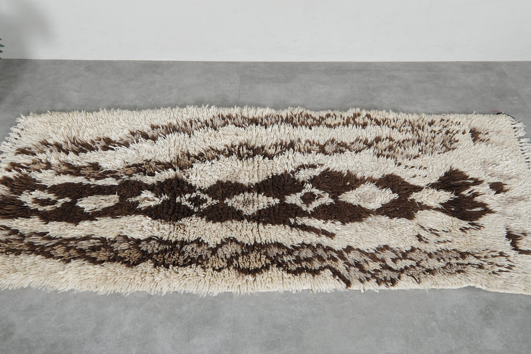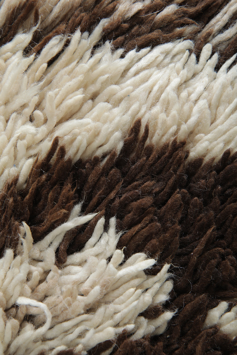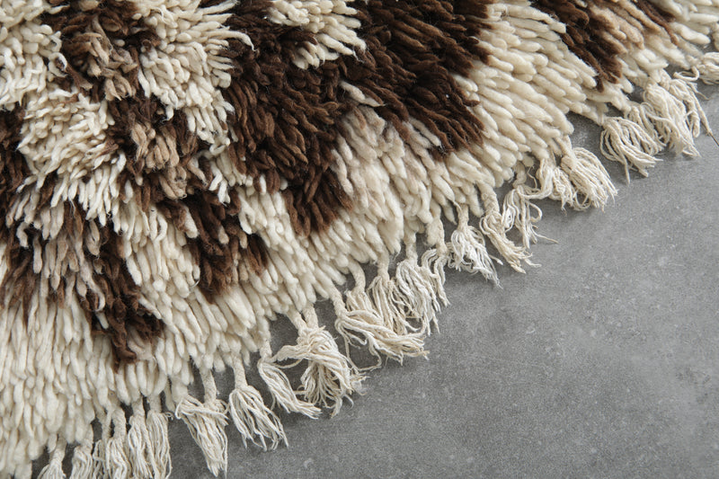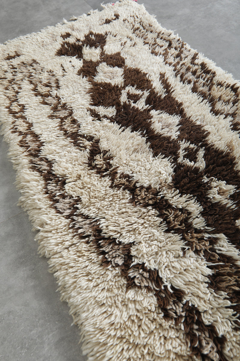 Beautiful handmade wool rug measuring 2.8 x 6.1 ft, featuring a rich brown and ivory Berber pattern. This Moroccan rug adds warmth, texture, and artisanal charm to bohemian, rustic, or modern interiors. A perfect cozy accent for hallways, bedrooms, or living spaces.