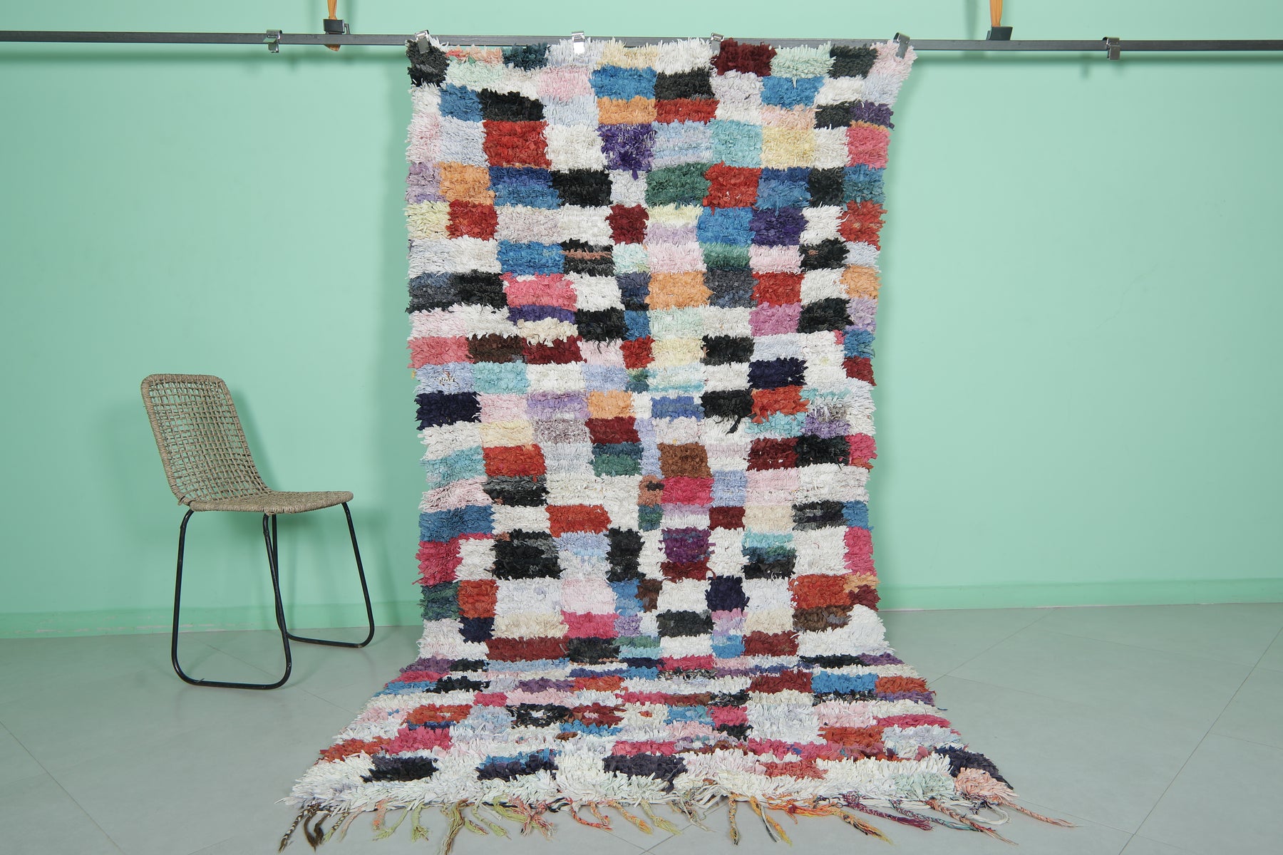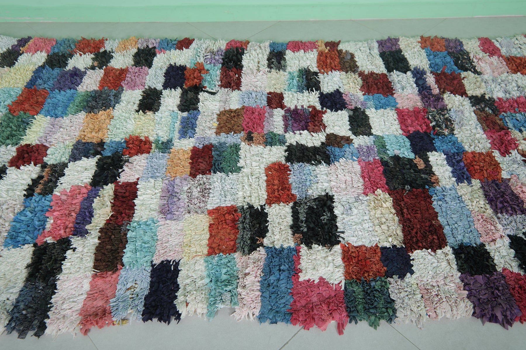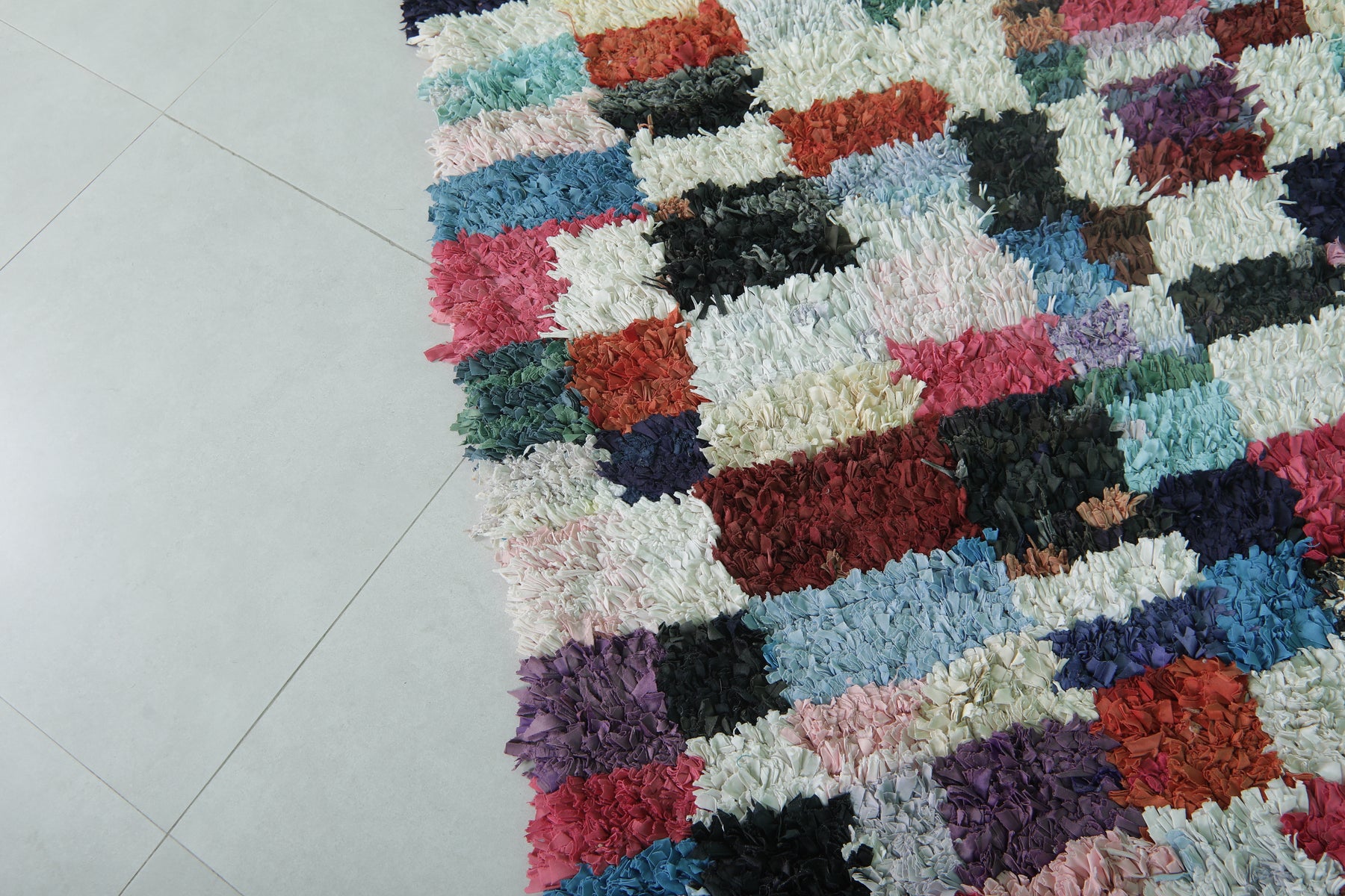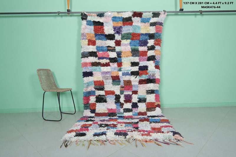 Elevate your décor with this Moroccan Berber rug, featuring a vibrant patchwork of multicolored squares. Each square showcases an array of hues, from bold reds and blues to soft pastels, intricately handwoven for a rich, textured look. Measuring 4.4 x 9.2 feet, this rug brings a splash of artistic charm to larger spaces. Its playful design and durable construction make it ideal for living rooms, dining areas, or bedrooms. Embrace the unique artistry and vibrant appeal of Moroccan craftsmanship with this standout piece.