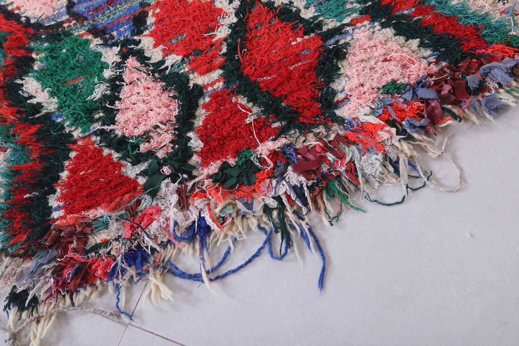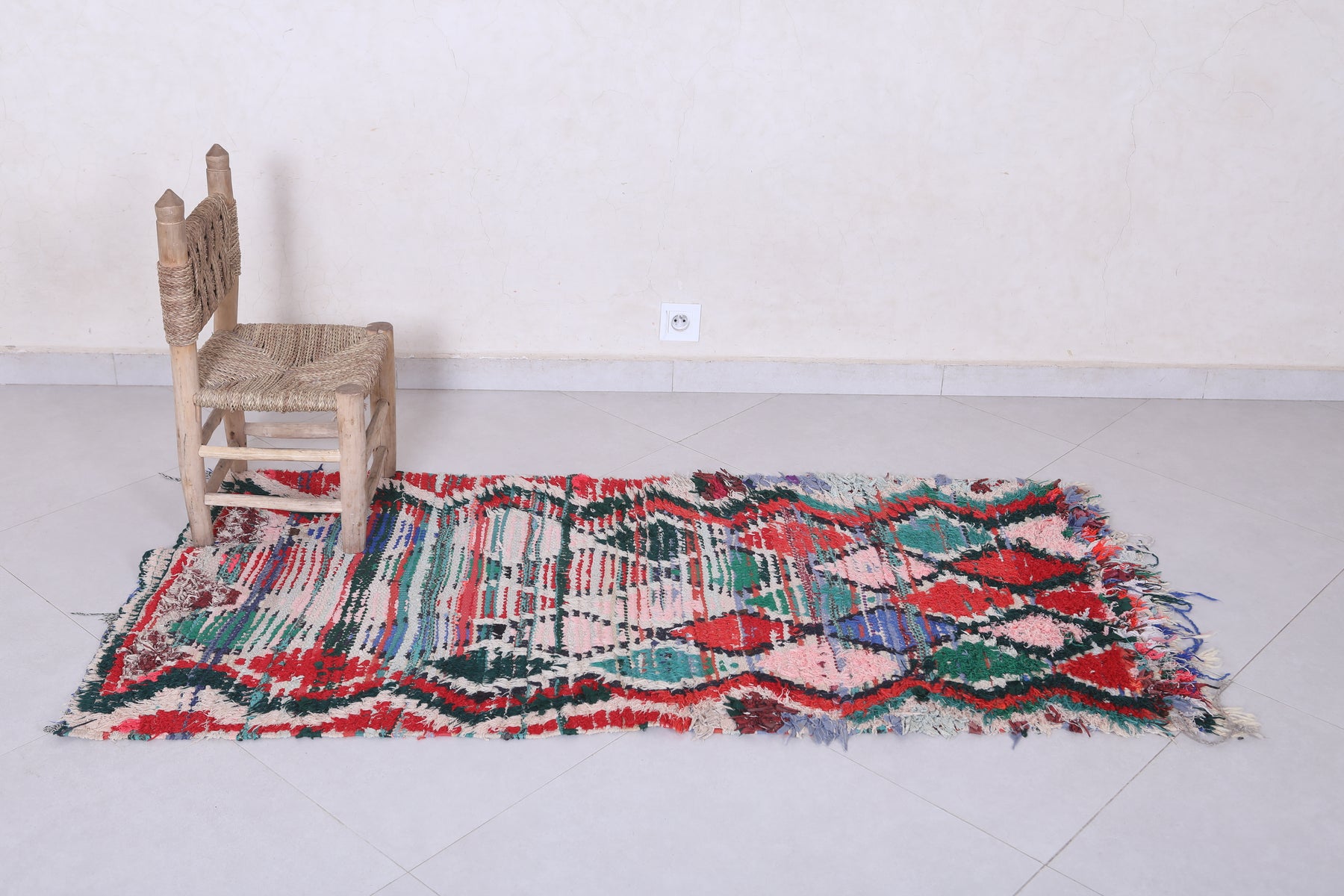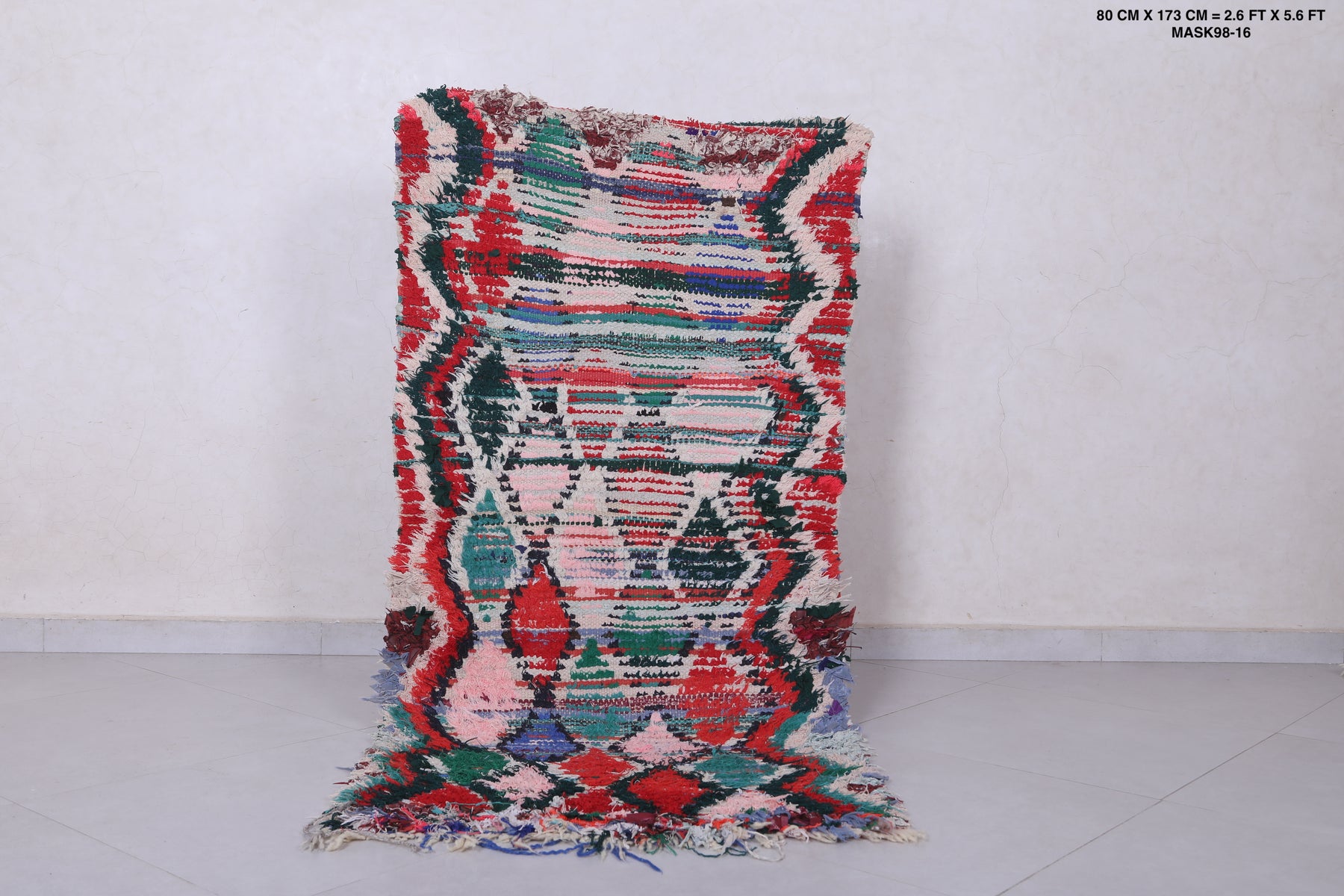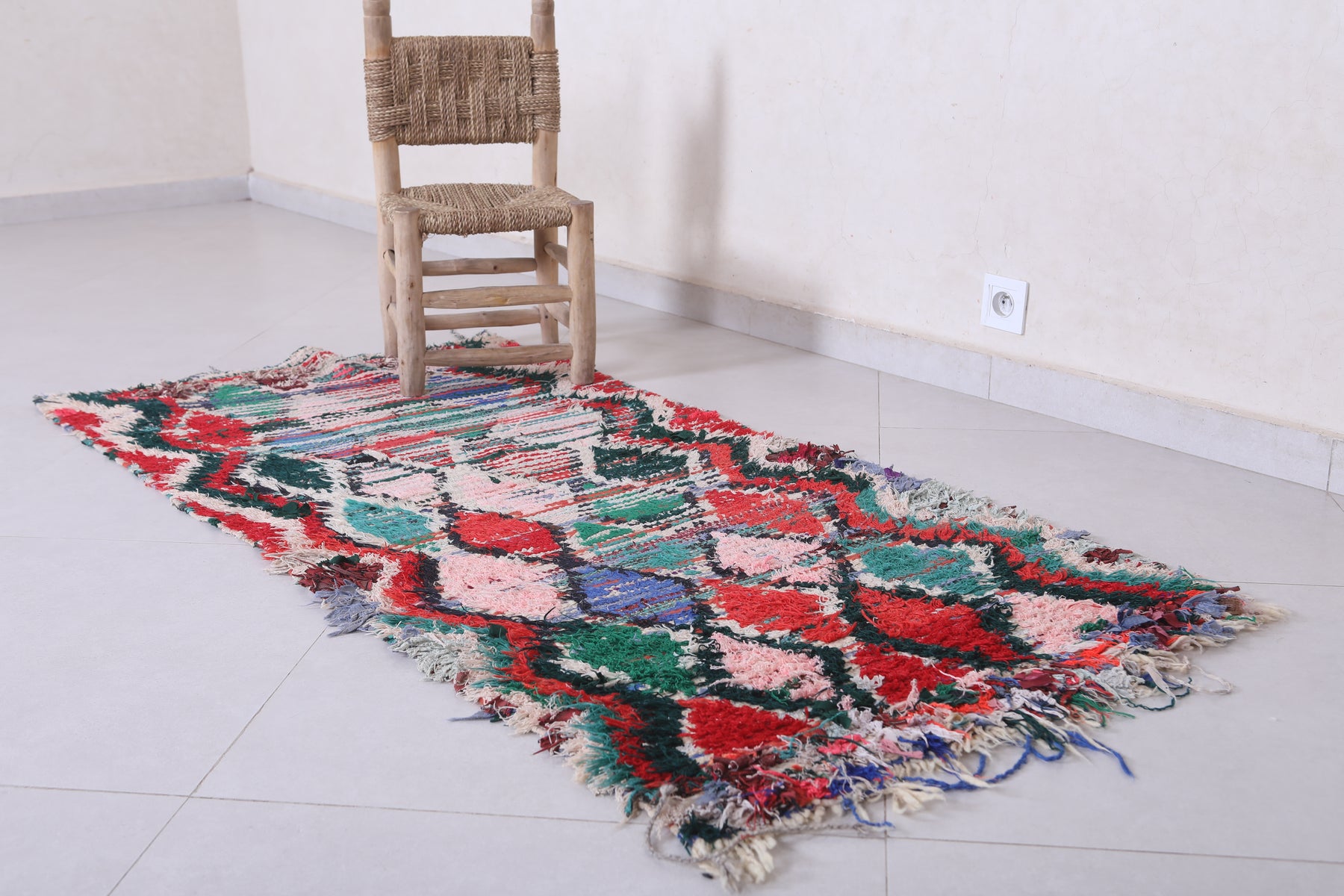 Add vibrancy and warmth to your home with this Moroccan Berber Rug, measuring 2.6 x 5.6 feet. Featuring a dynamic mix of red, green, pink, and blue in a geometric pattern, this rug is perfect for brightening any room. The handwoven wool material ensures durability and a soft feel underfoot. Ideal for living rooms, bedrooms, or entryways, it offers both style and comfort to complement a variety of interior designs.