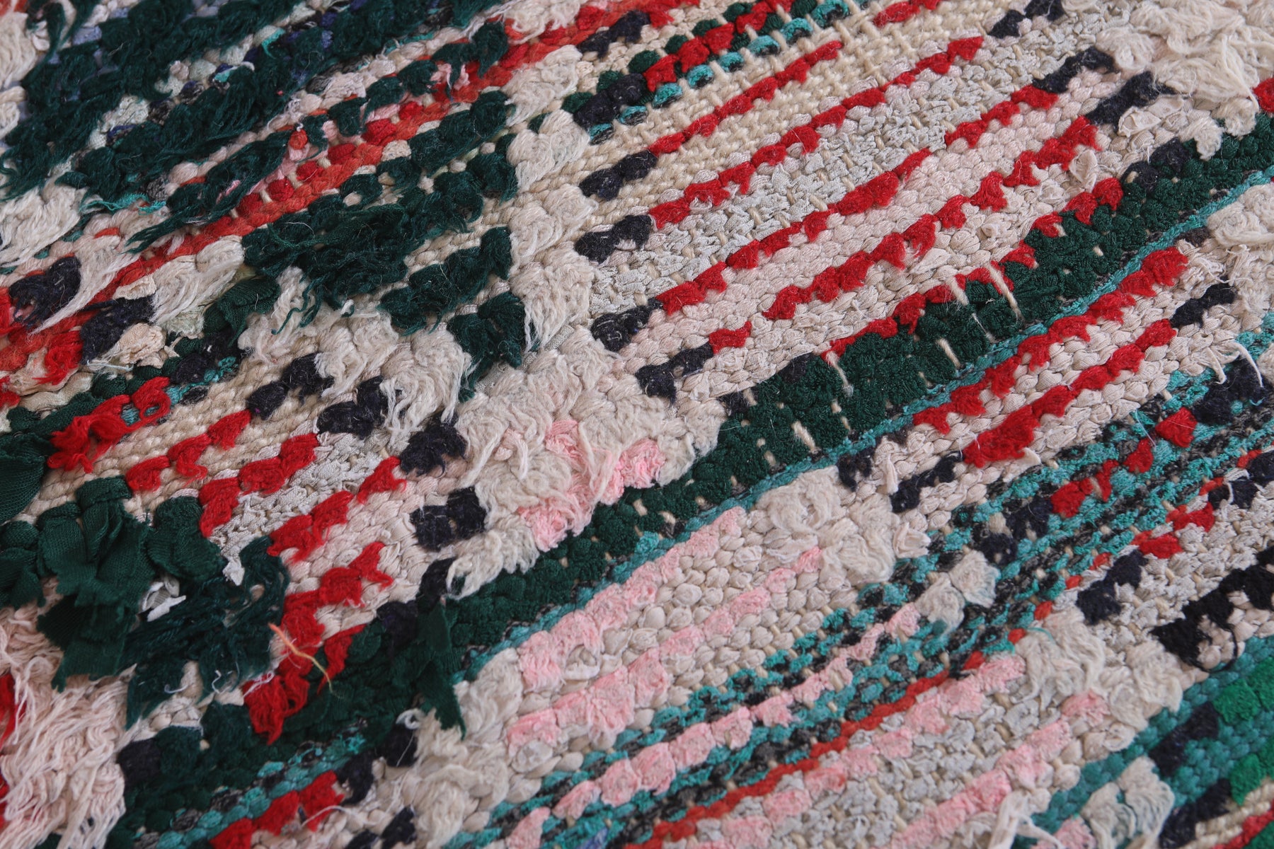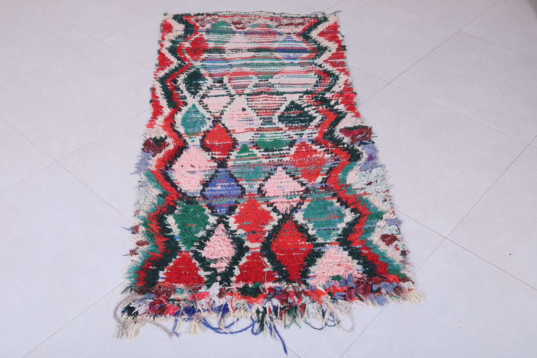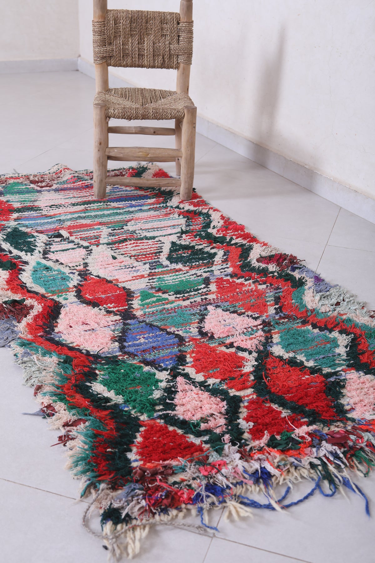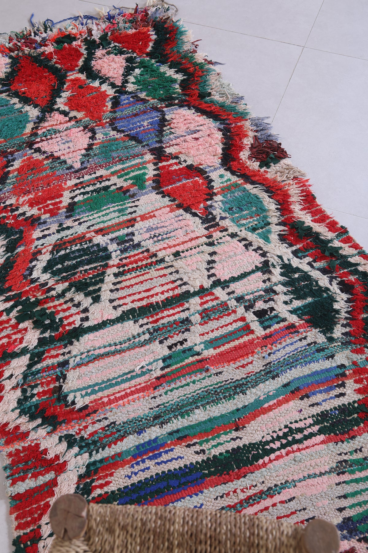 Add vibrancy and warmth to your home with this Moroccan Berber Rug, measuring 2.6 x 5.6 feet. Featuring a dynamic mix of red, green, pink, and blue in a geometric pattern, this rug is perfect for brightening any room. The handwoven wool material ensures durability and a soft feel underfoot. Ideal for living rooms, bedrooms, or entryways, it offers both style and comfort to complement a variety of interior designs.