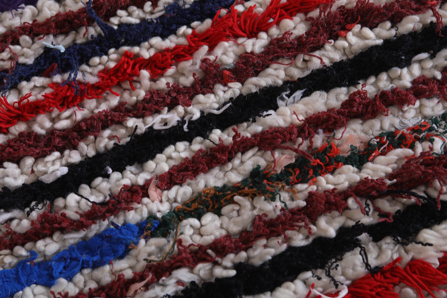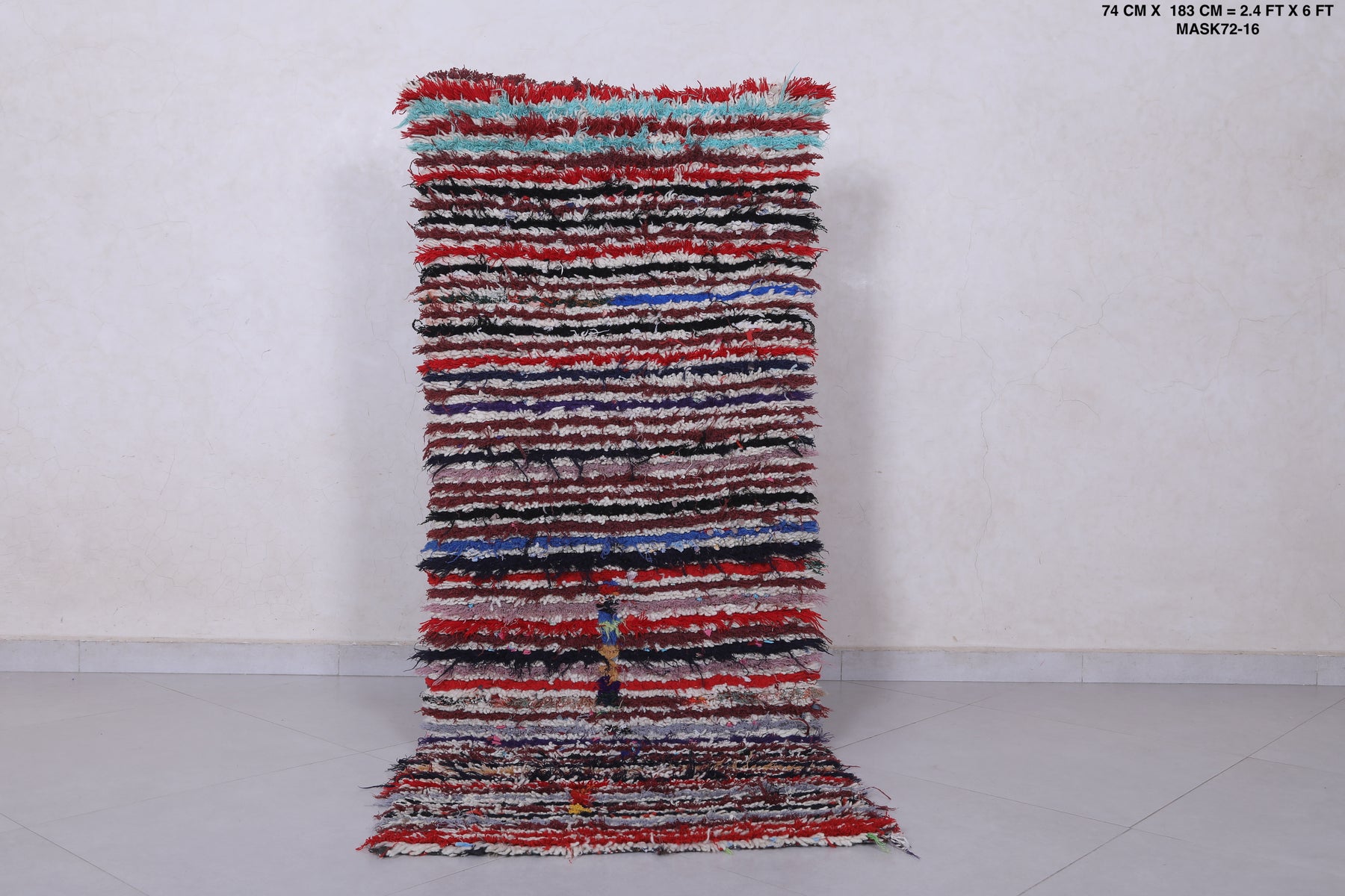 Add a burst of color to your space with this handwoven Moroccan Berber rug measuring 2.4ft x 6ft. Featuring vibrant multicolored stripes with intricate textures, this rug is perfect for creating a lively and inviting ambiance in your home. Made by skilled artisans, this one-of-a-kind piece is both durable and soft underfoot, ideal for high-traffic areas like hallways, entryways, or living rooms. Embrace authentic Moroccan craftsmanship and elevate your decor with a rug that combines tradition and modern style.