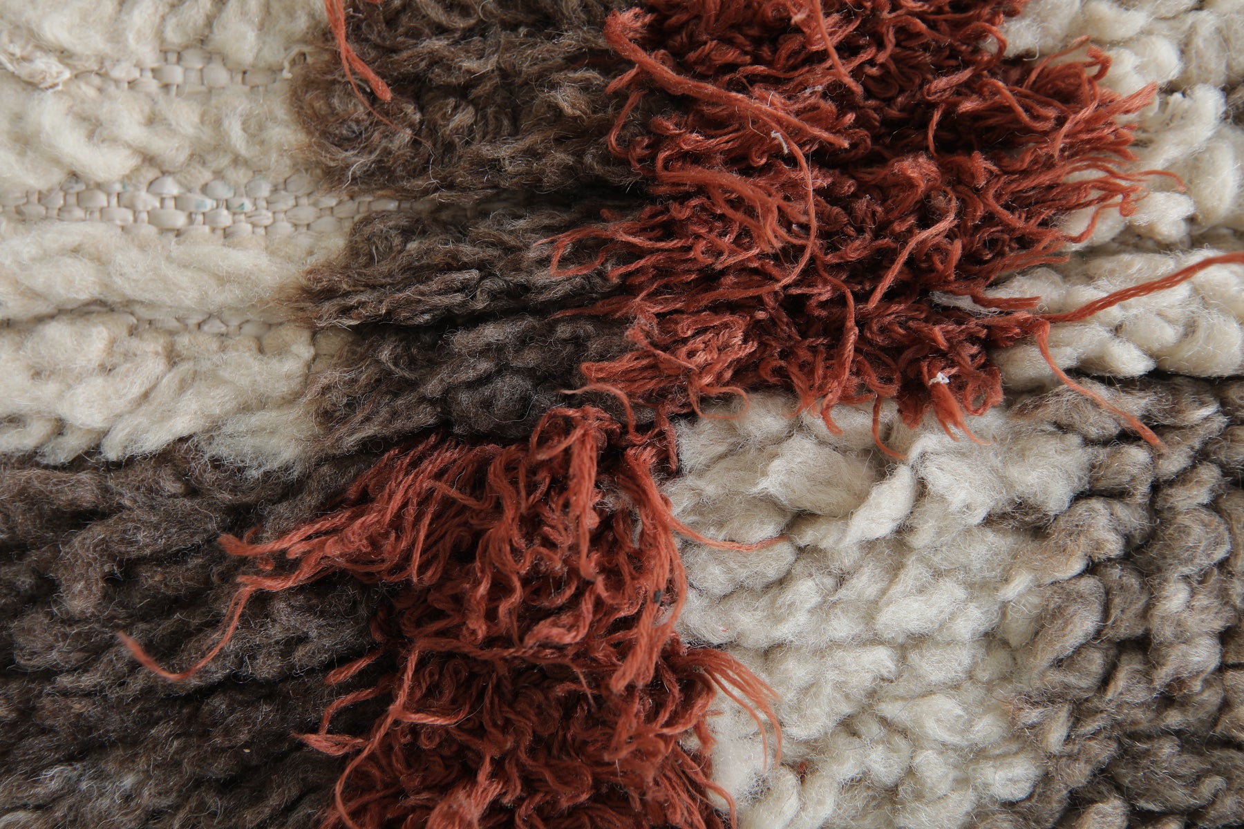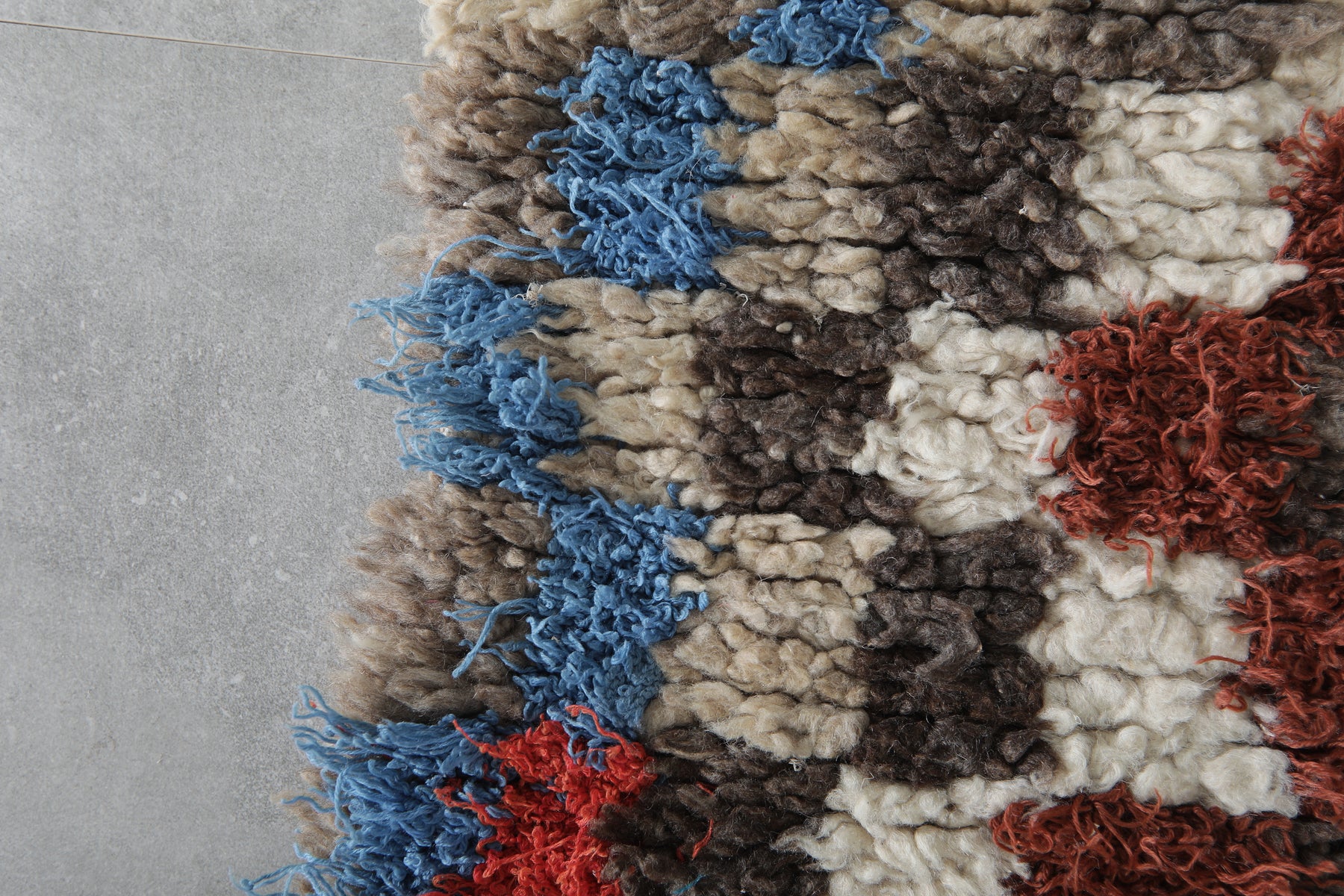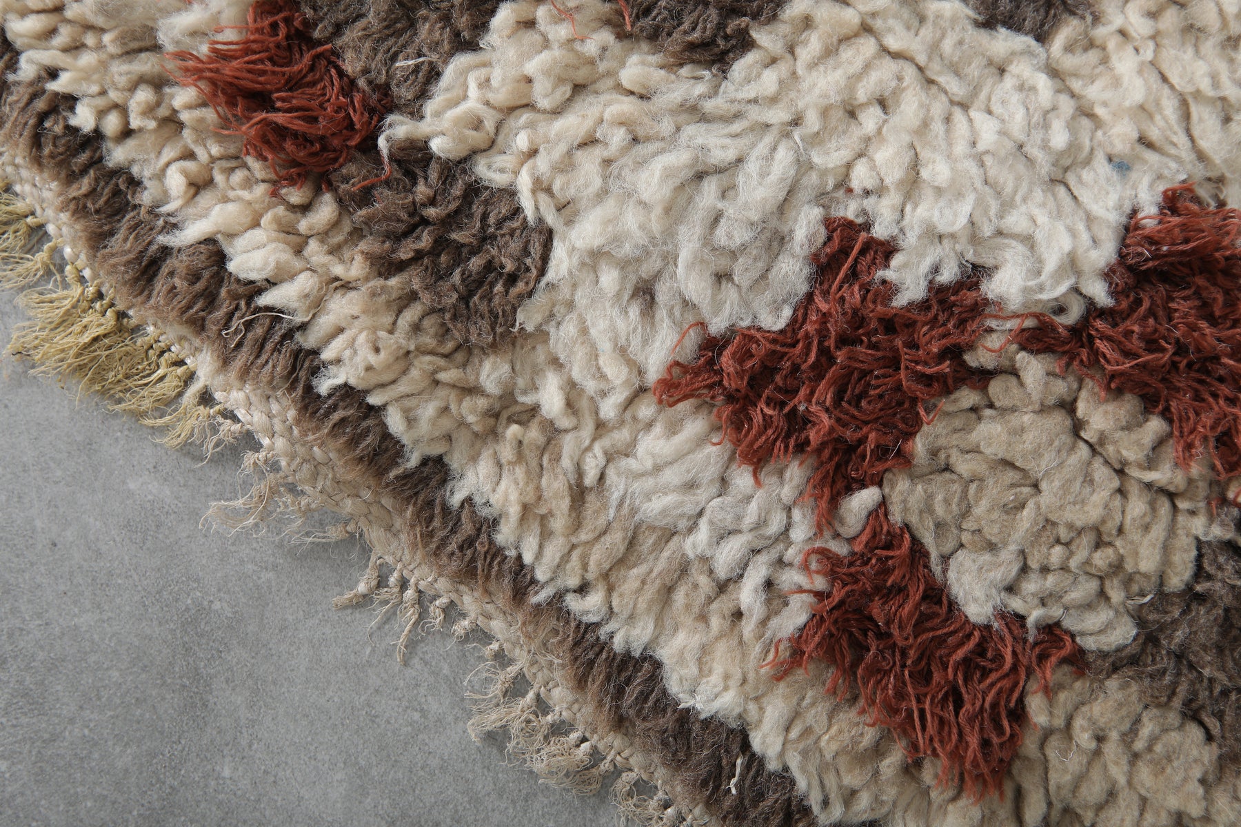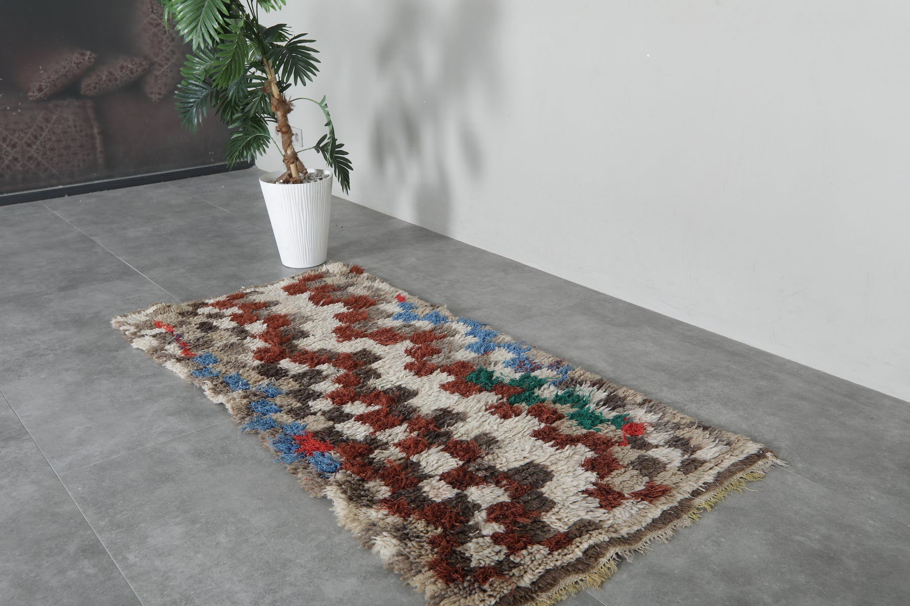 Handwoven Moroccan Berber rug measuring 2.6 x 5.7 ft, crafted from soft wool with a unique geometric pattern. This artisan-made piece adds warmth and texture to any space, perfect for bohemian, modern, or rustic interiors. Elevate your home with authentic Moroccan craftsmanship.