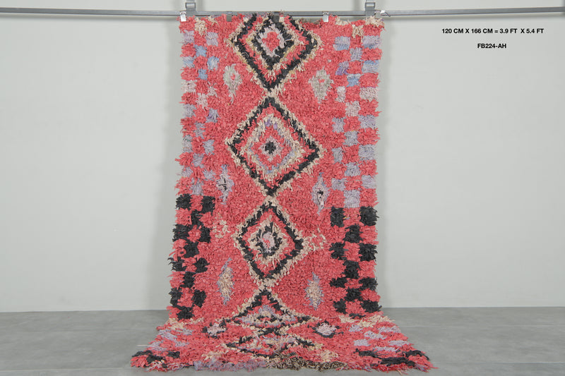 Bold Red Vintage Moroccan Boucherouite Rug – 3.9 ft x 8.7 ft