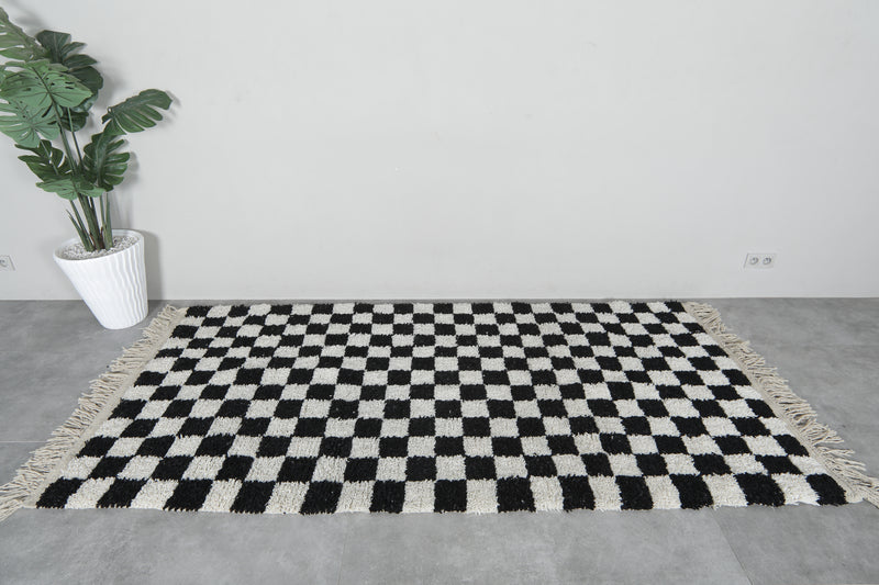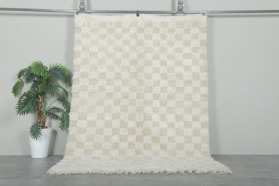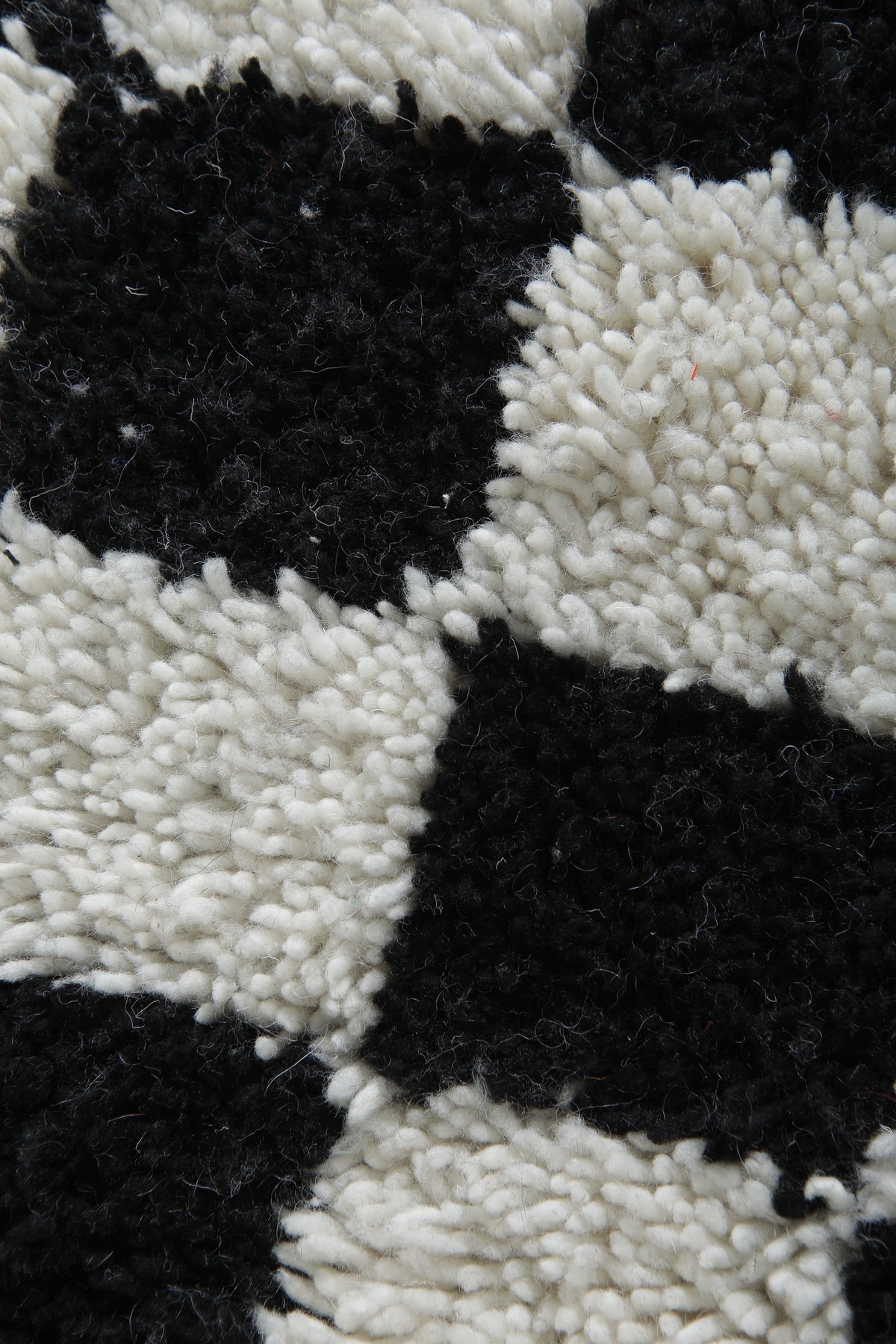 Crafted from 100% wool, the Checkered Moroccan Rug brings warmth and elegance to any room. With dimensions of 6.3 feet by 9.2 feet, it offers plenty of coverage for your space. The natural fibers provide durability and comfort, making this rug a timeless addition to your home.