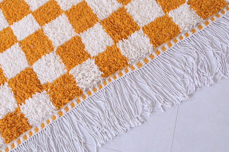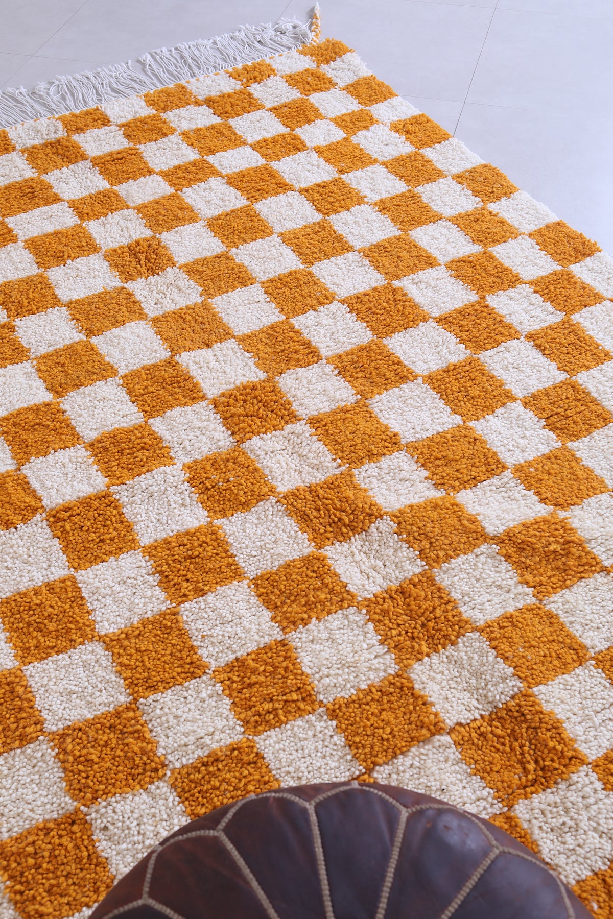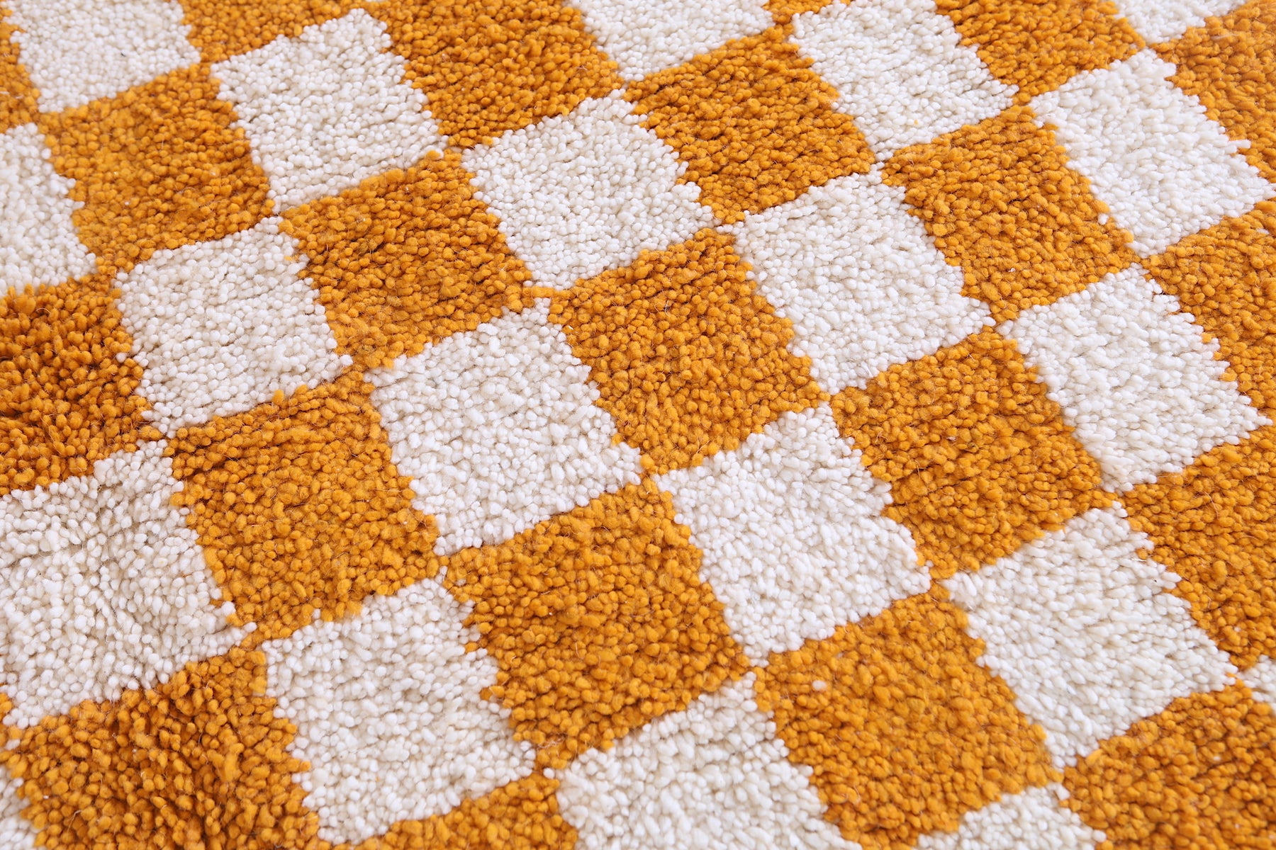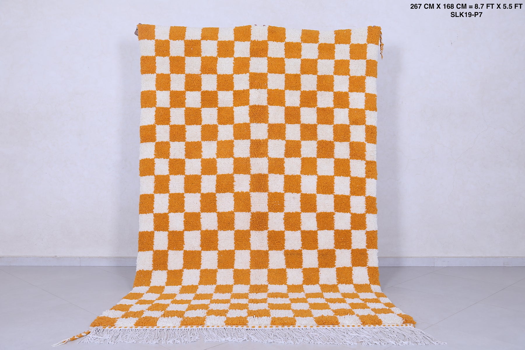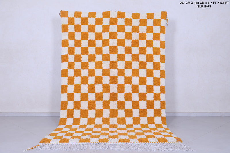 Add a vibrant touch to your home with this Moroccan Handmade Rug, sized at 8.7 x 5.5 feet (267 CM x 168 CM). Featuring a bold checkered pattern in warm orange and cream tones, this handwoven piece blends tradition with modern flair.