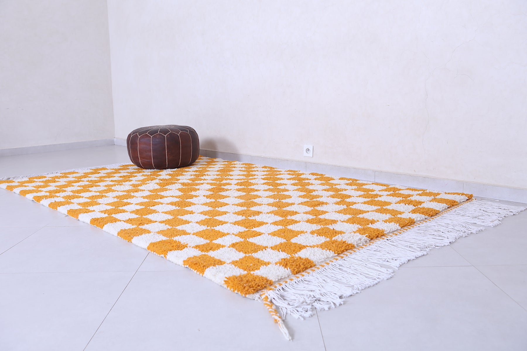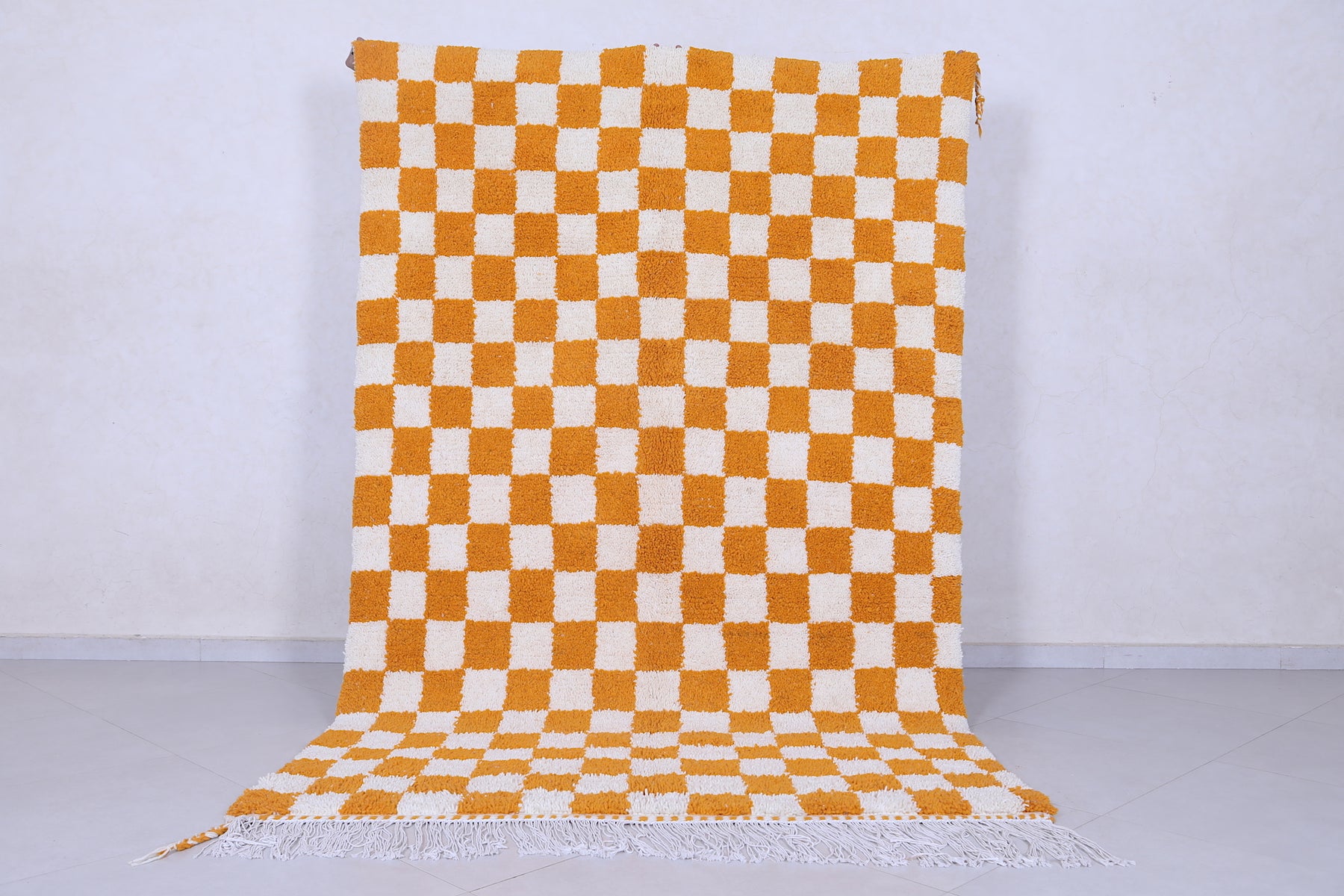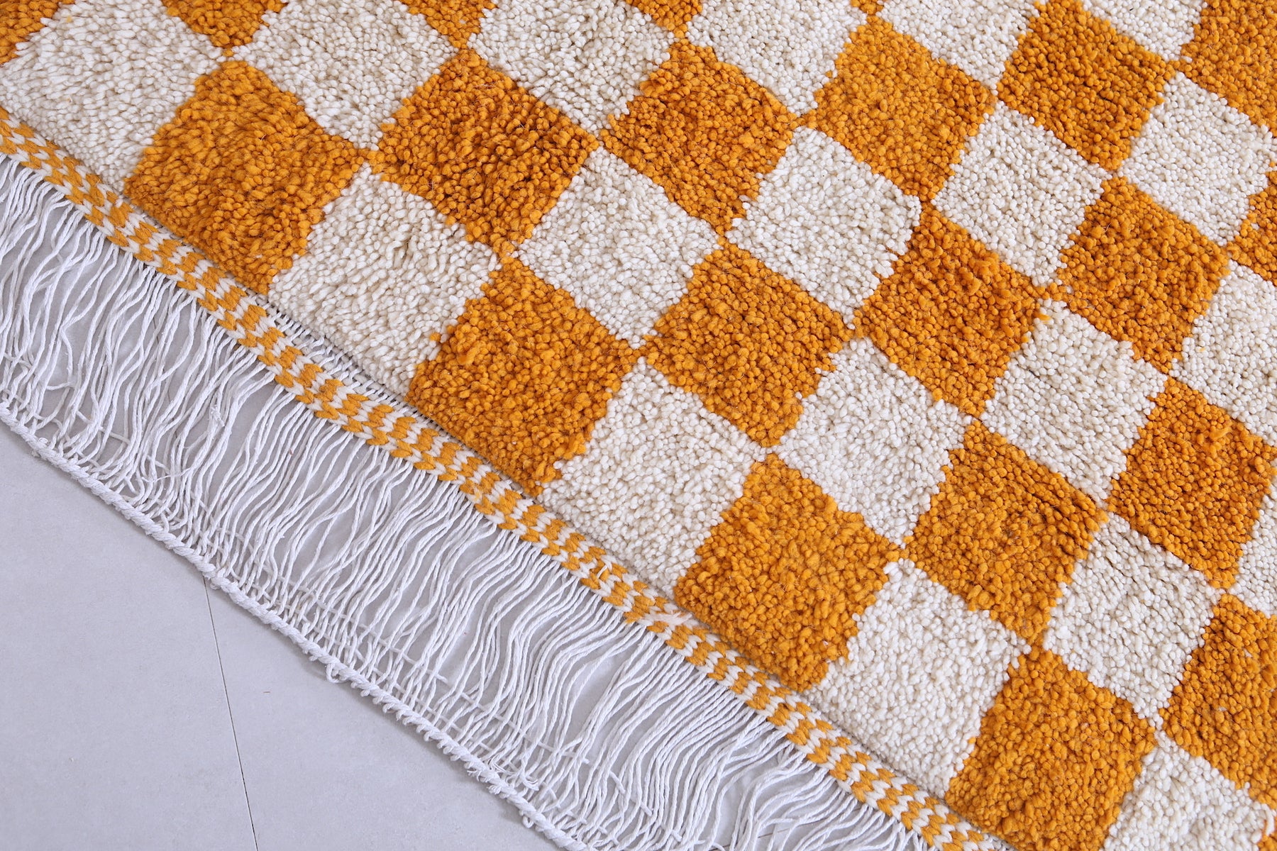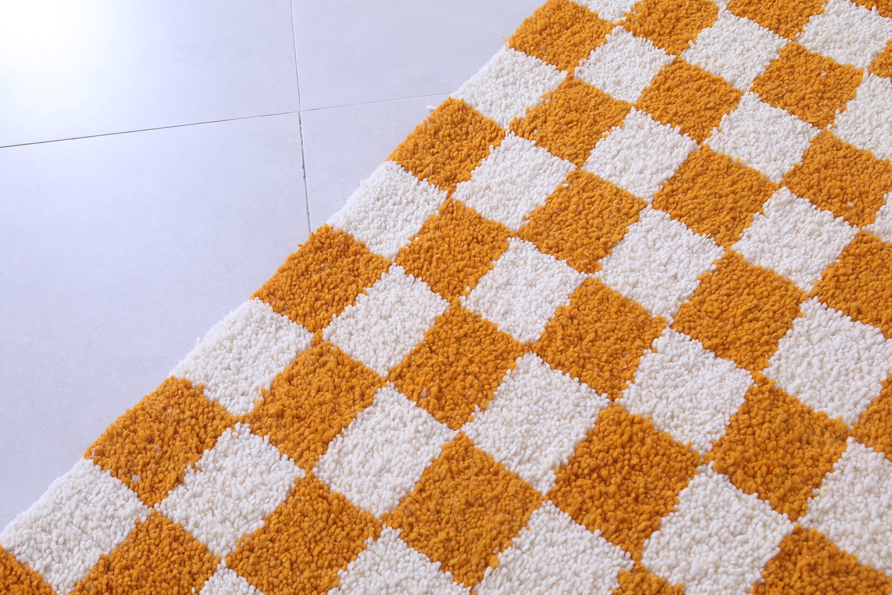 Add a vibrant touch to your home with this Moroccan Handmade Rug, sized at 8.7 x 5.5 feet (267 CM x 168 CM). Featuring a bold checkered pattern in warm orange and cream tones, this handwoven piece blends tradition with modern flair.