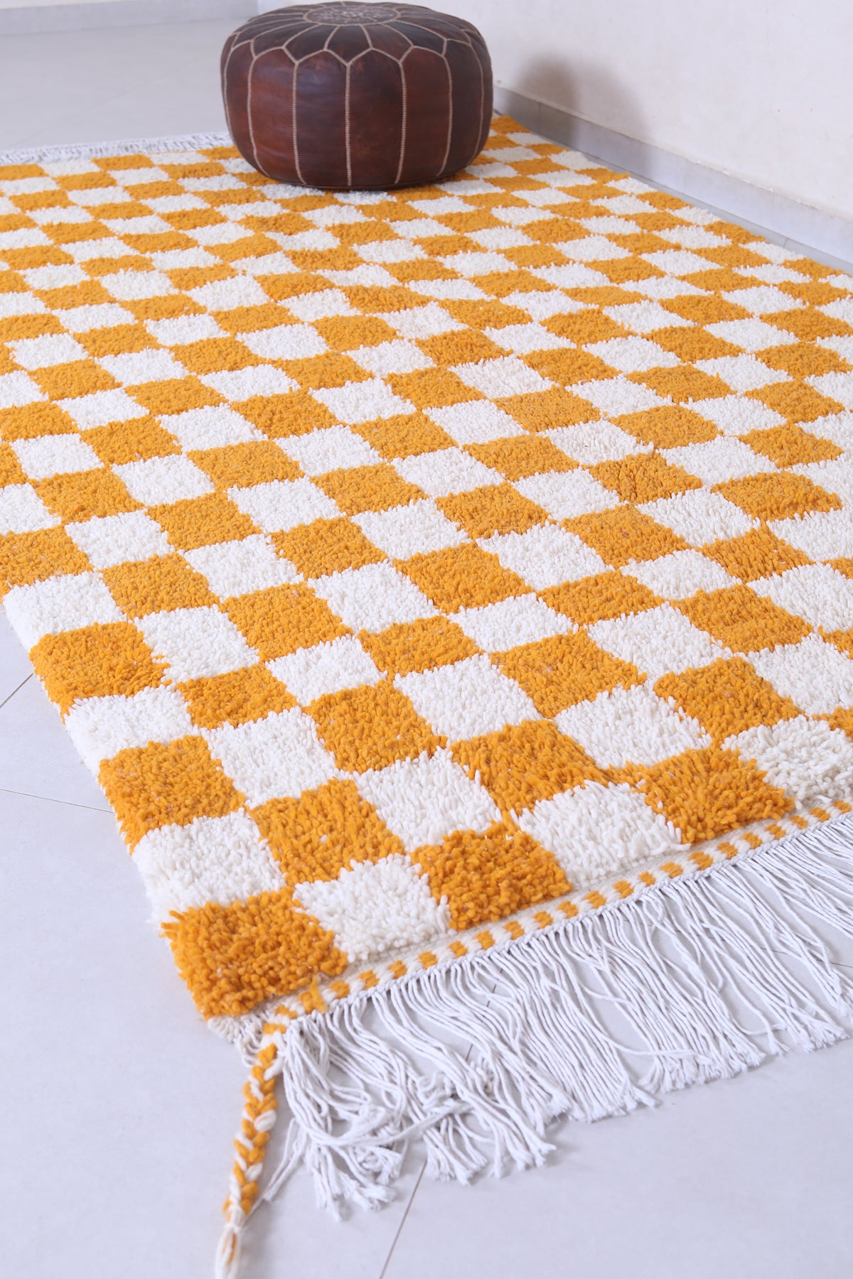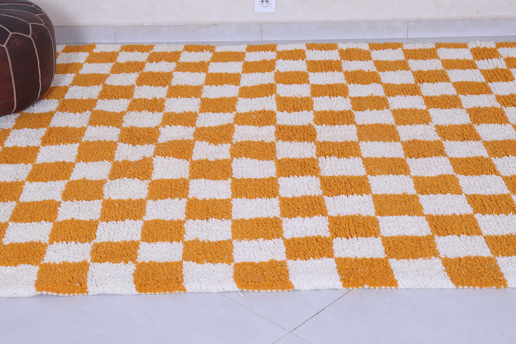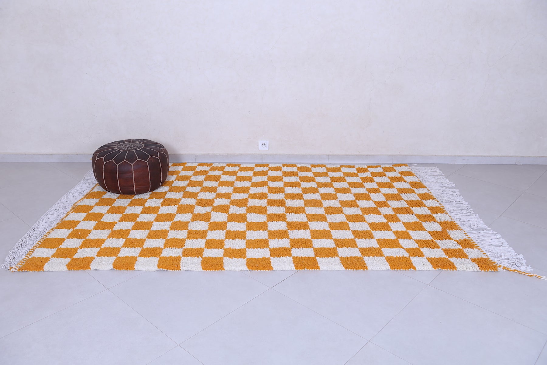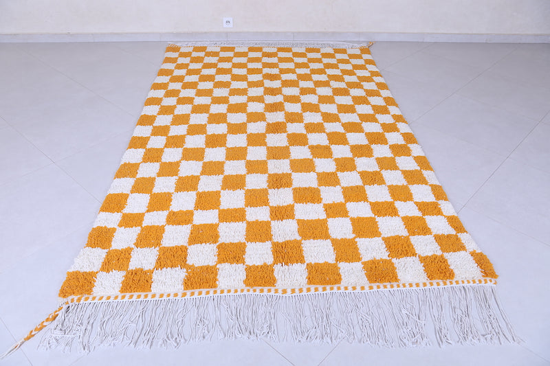 Add a vibrant touch to your home with this Moroccan Handmade Rug, sized at 8.7 x 5.5 feet (267 CM x 168 CM). Featuring a bold checkered pattern in warm orange and cream tones, this handwoven piece blends tradition with modern flair.
