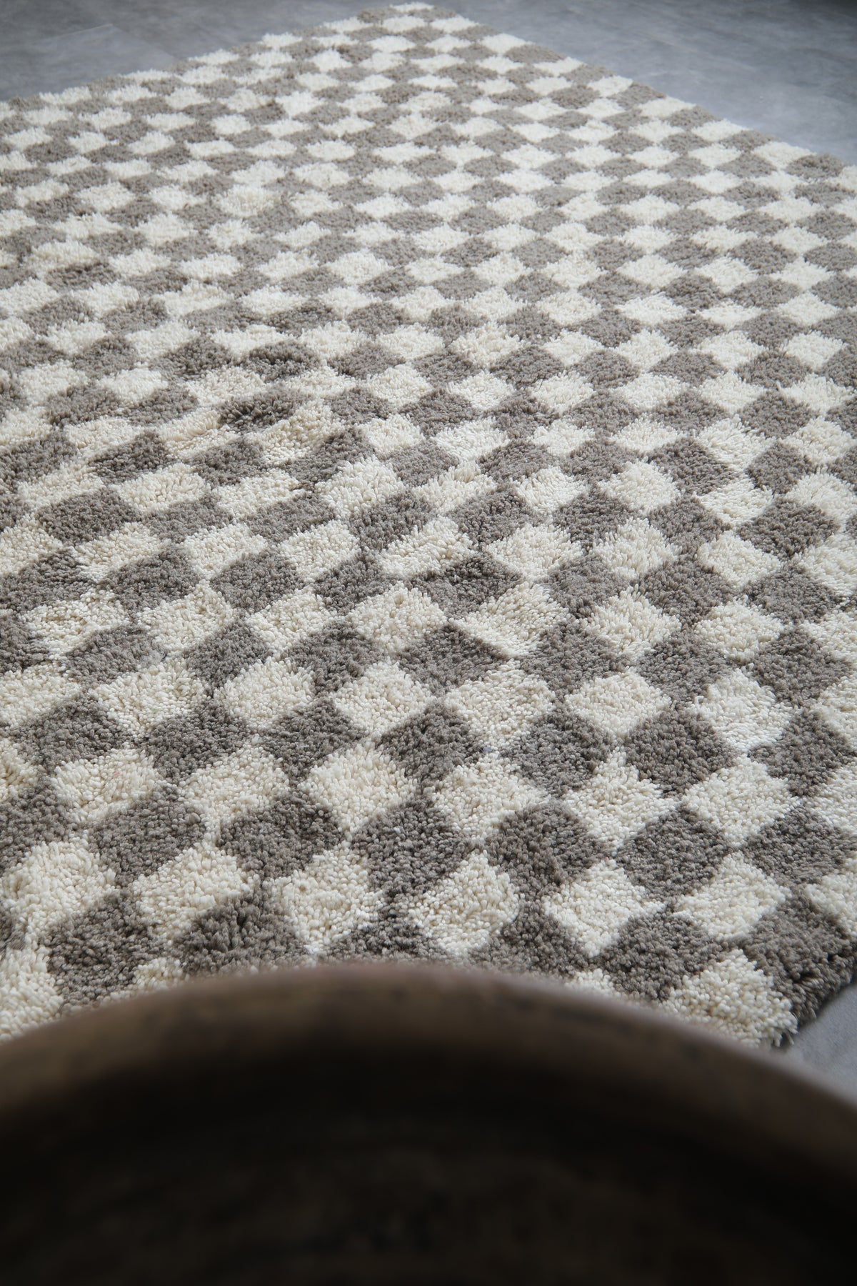 Elevate your space with this Large Moroccan Checkered Rug, designed in a soft neutral palette and measuring a generous 10 x 9.8 feet. Handwoven with care, this timeless piece features a modern checkered pattern perfect for spacious living areas, open dining rooms, or studio-style interiors. Its plush wool texture provides everyday comfort, while the durable craftsmanship ensures lasting quality.
