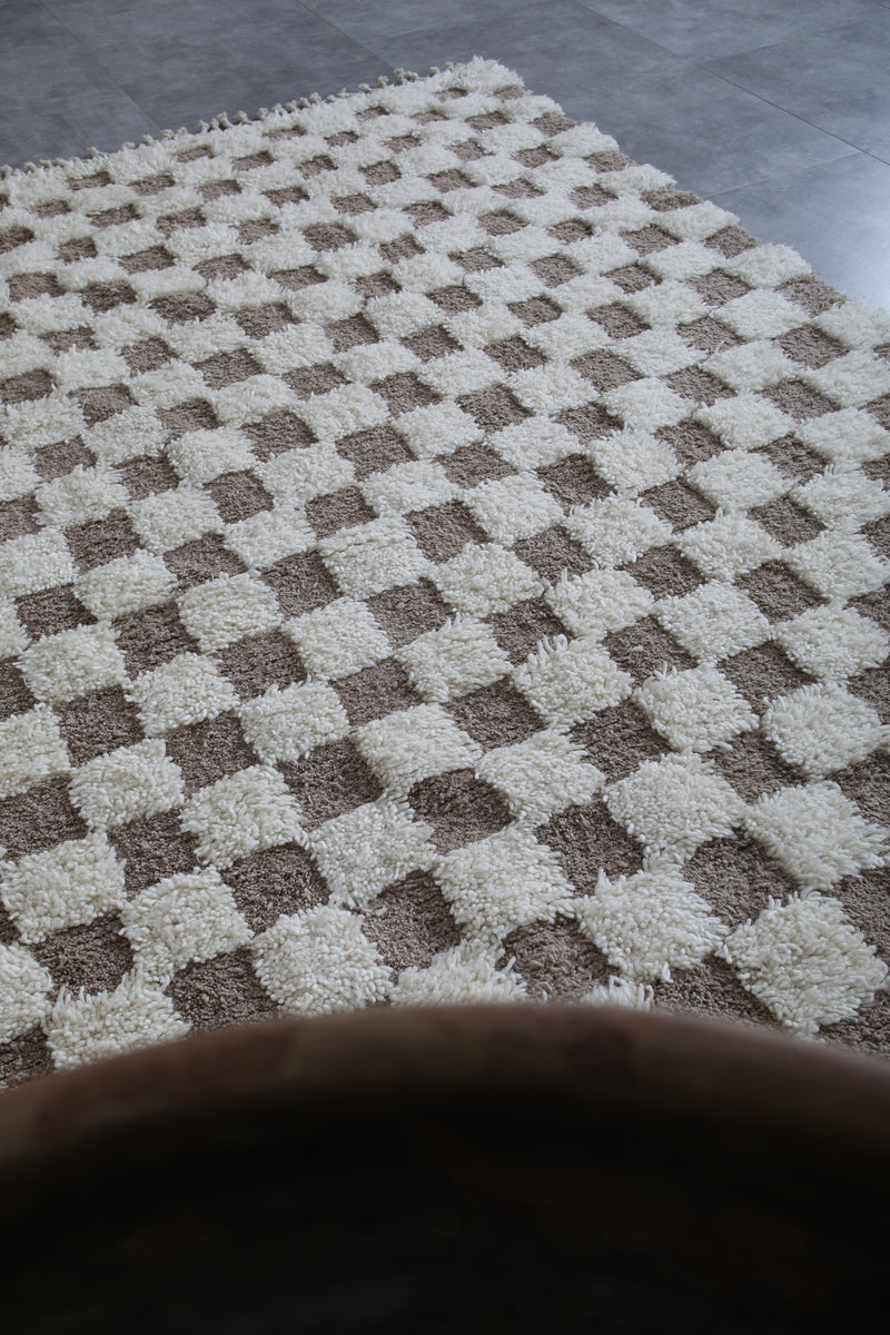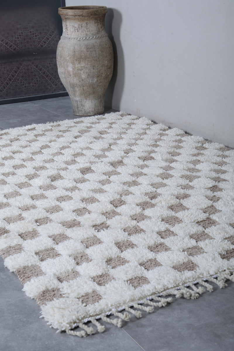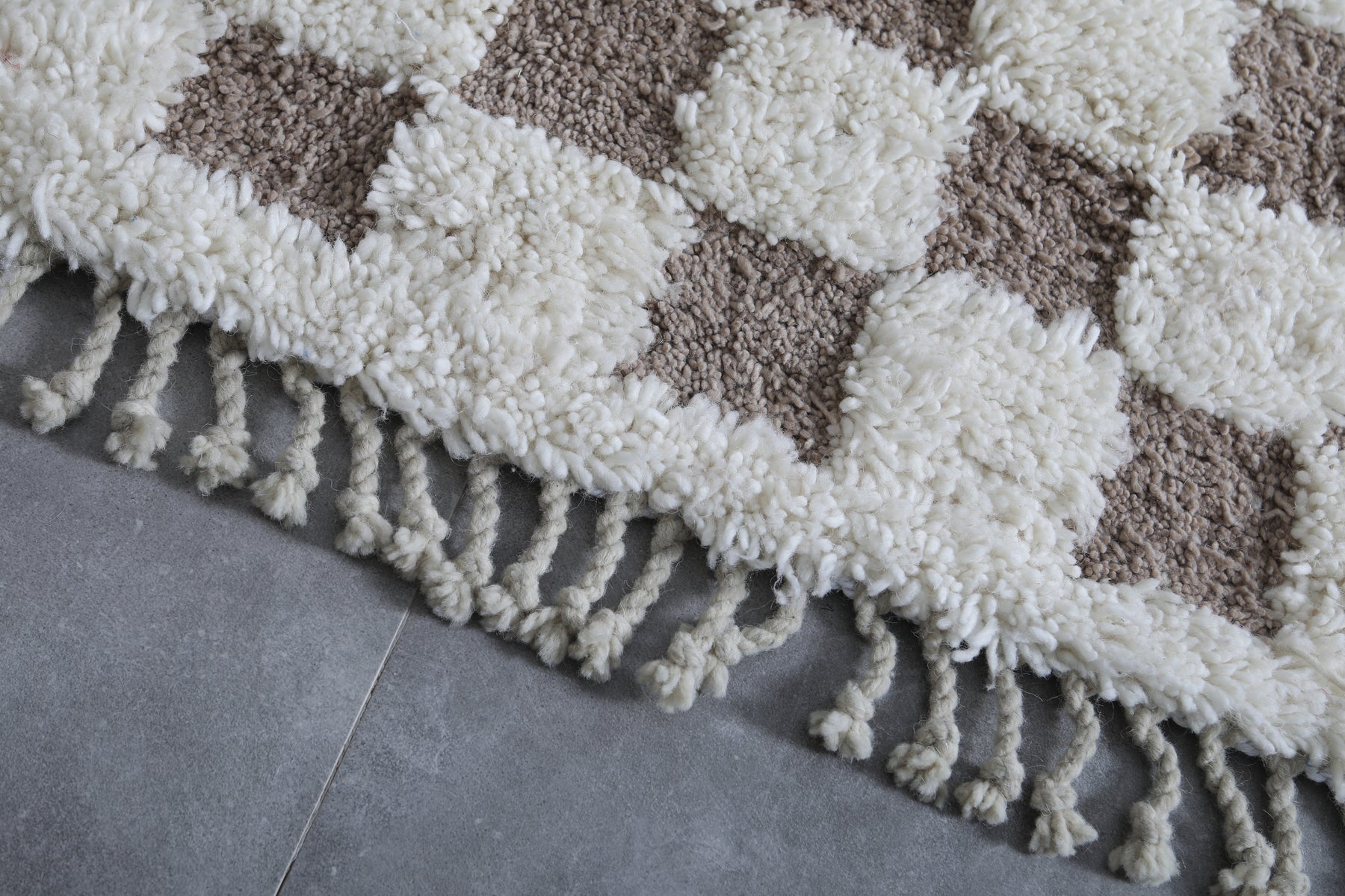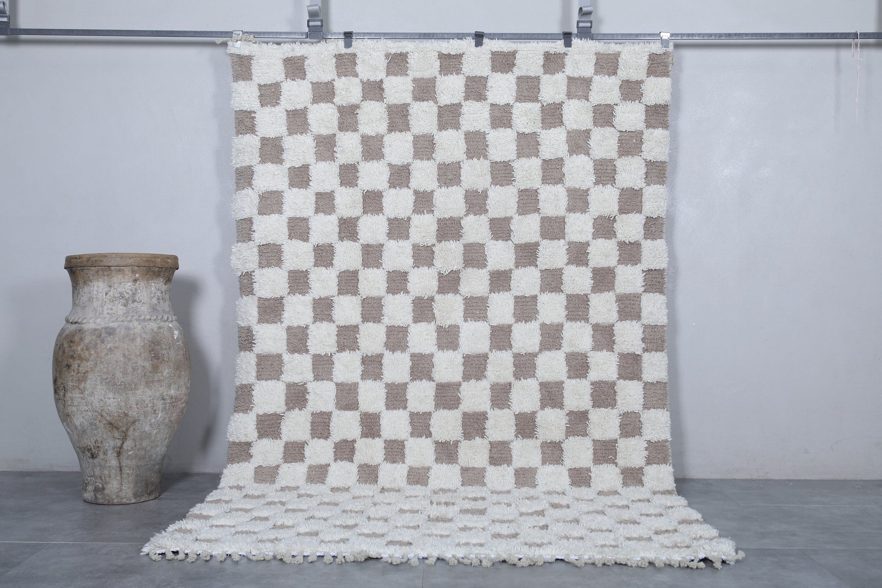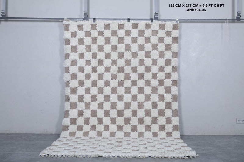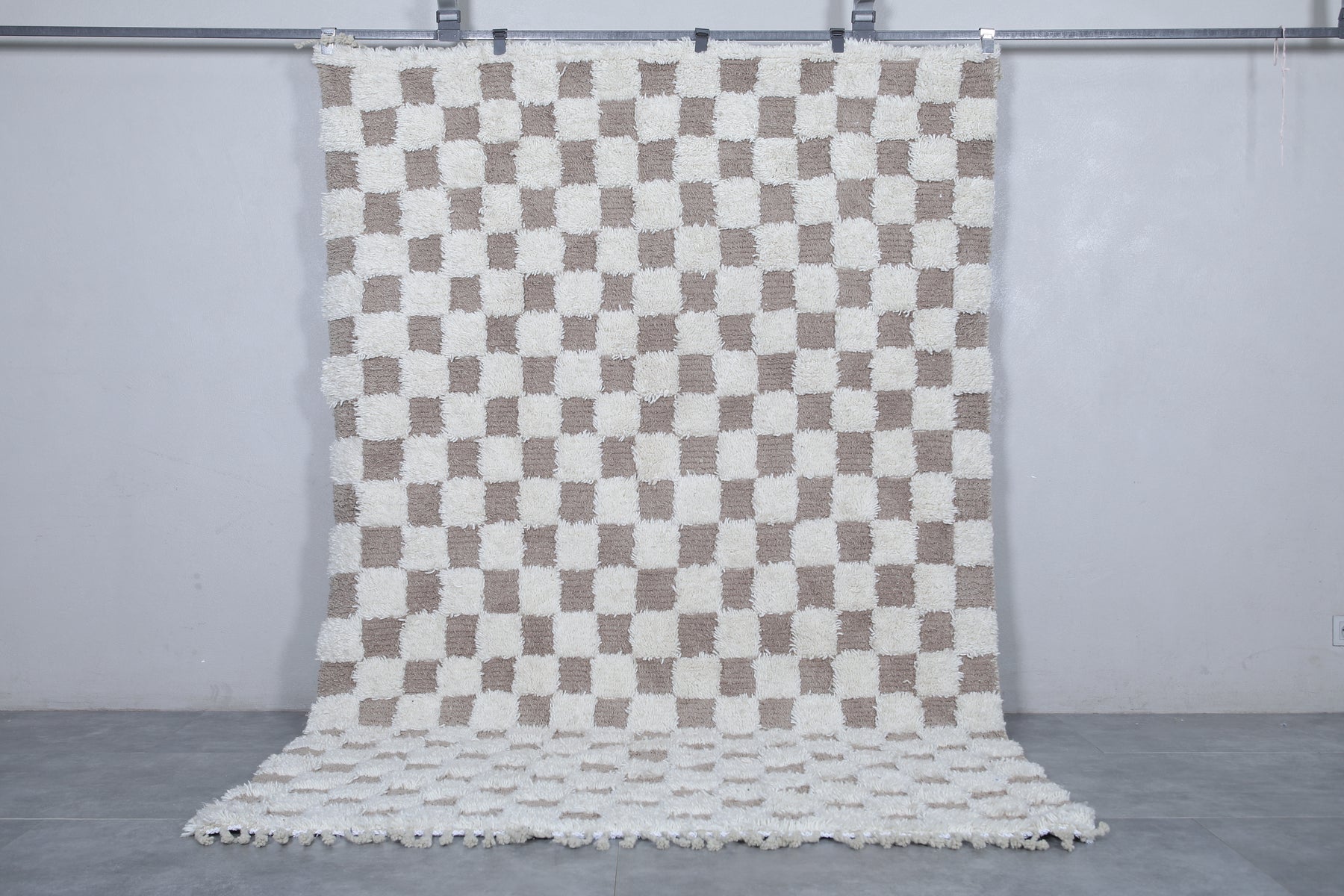 Add soft elegance to your space with this Handmade Moroccan Rug, featuring a calming beige and white checkered design. Measuring 5.9 x 9 feet, this artisanal piece blends traditional craftsmanship with modern minimalism, perfect for smaller living rooms, bedrooms, or dining areas. The plush wool texture delivers everyday comfort, while the neutral color palette makes styling effortless across a range of décor themes.