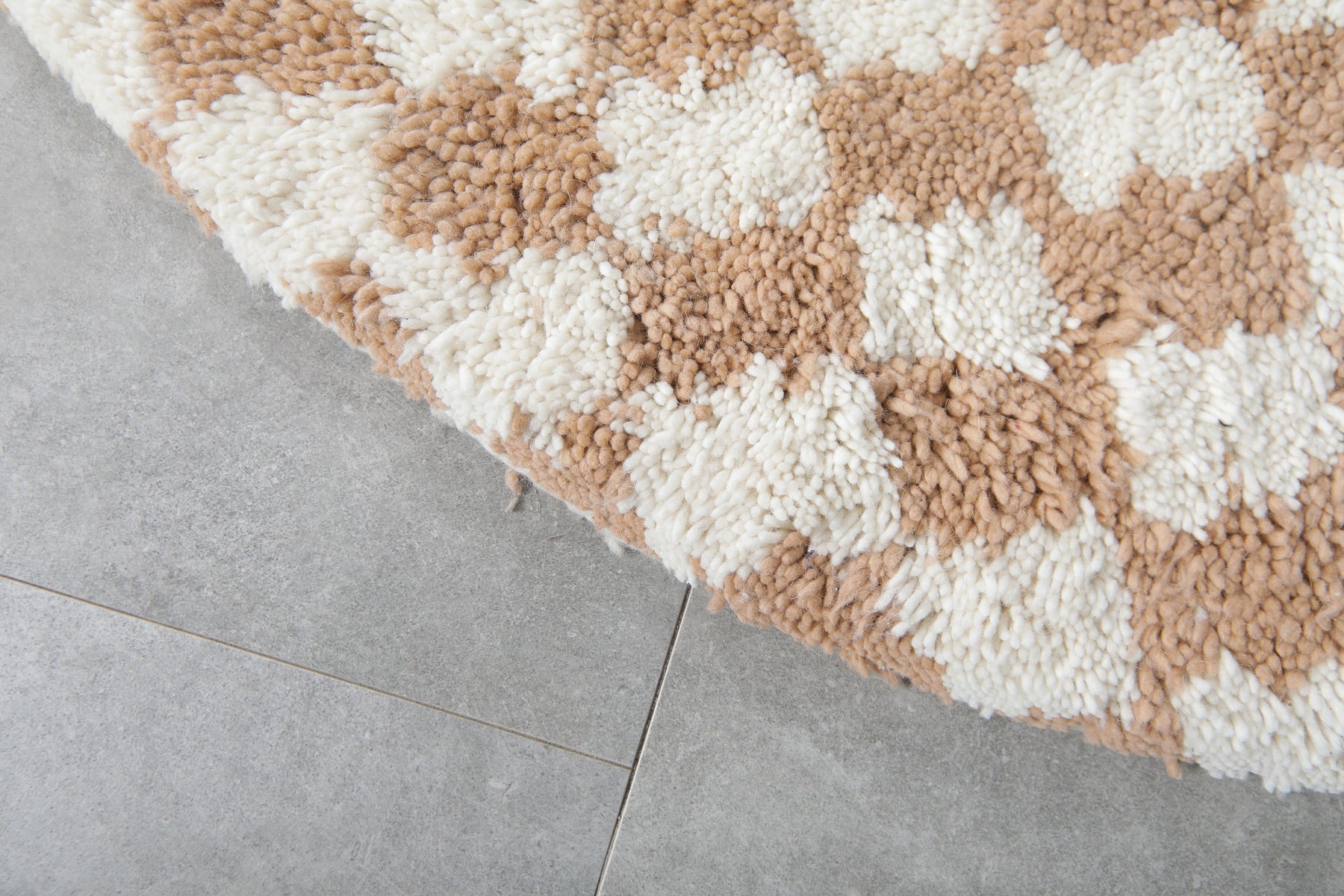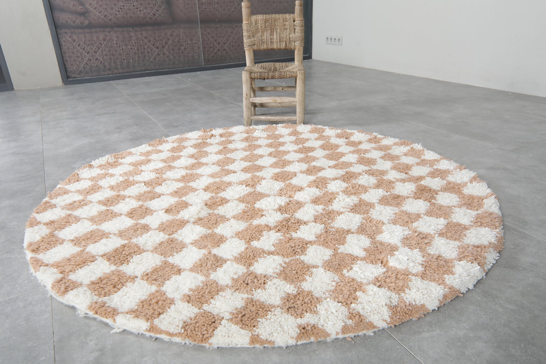 Round Moroccan Wool Rug - 5ft Beige & Cream Checkerboard