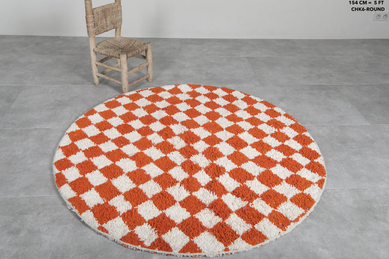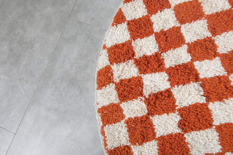 Round Moroccan Wool Rug - 5ft Orange Checkerboard