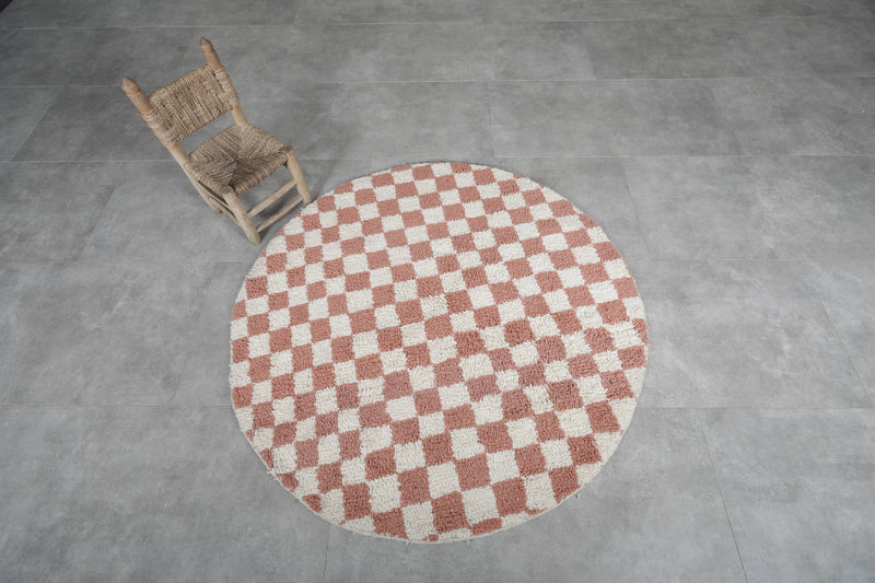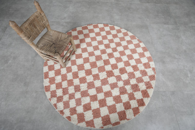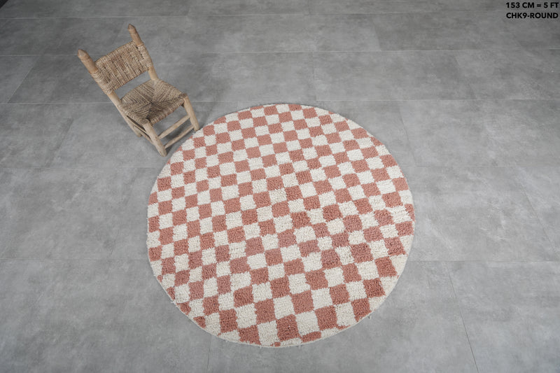 Round Moroccan Wool Rug - 5ft Terracotta & White Checkerboard