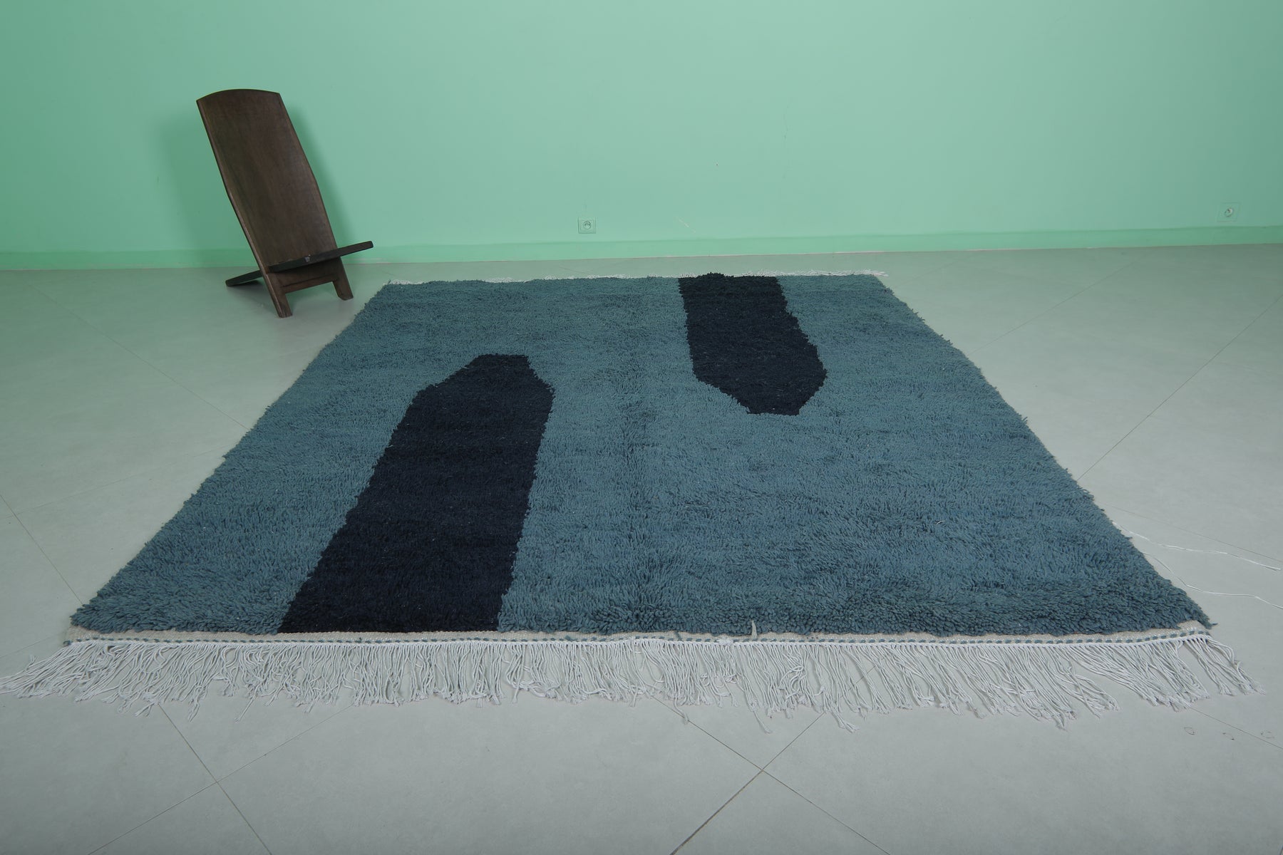 Blue Handmade Berber Rug - Contemporary Design | 7 x 8.1 ft