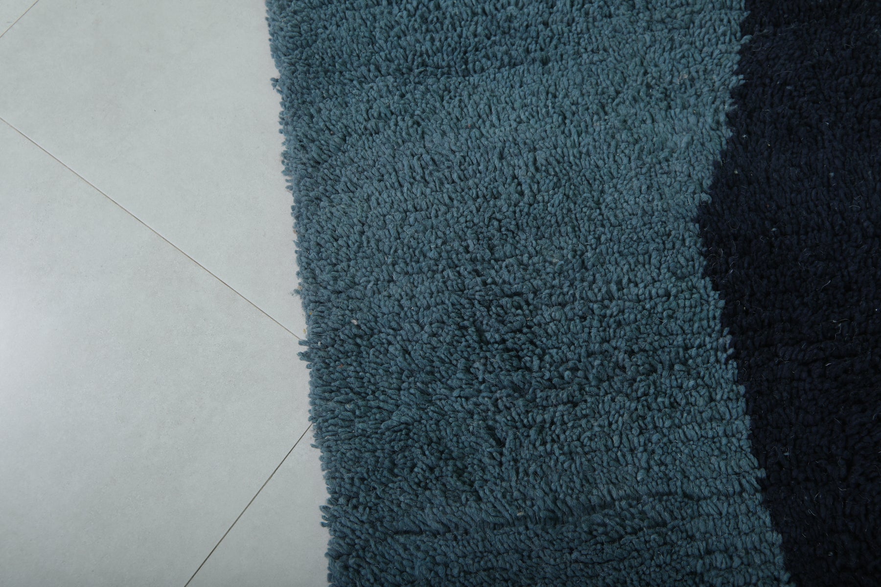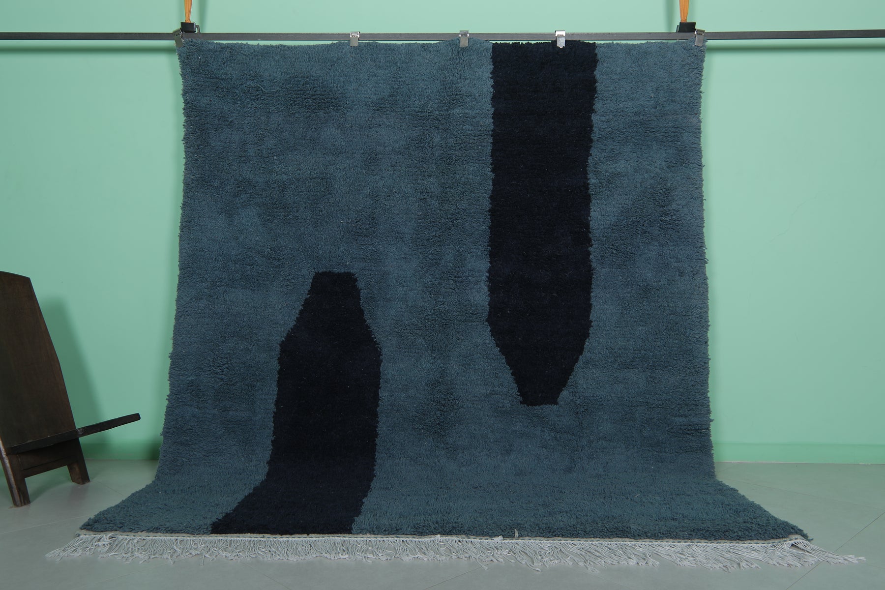 Introduce modern sophistication into your space with this Blue Handmade Berber Rug, sized at 7 x 8.1 feet (216 CM x 247 CM). Featuring deep blue tones with bold abstract black shapes, this handmade rug is a true statement piece.
