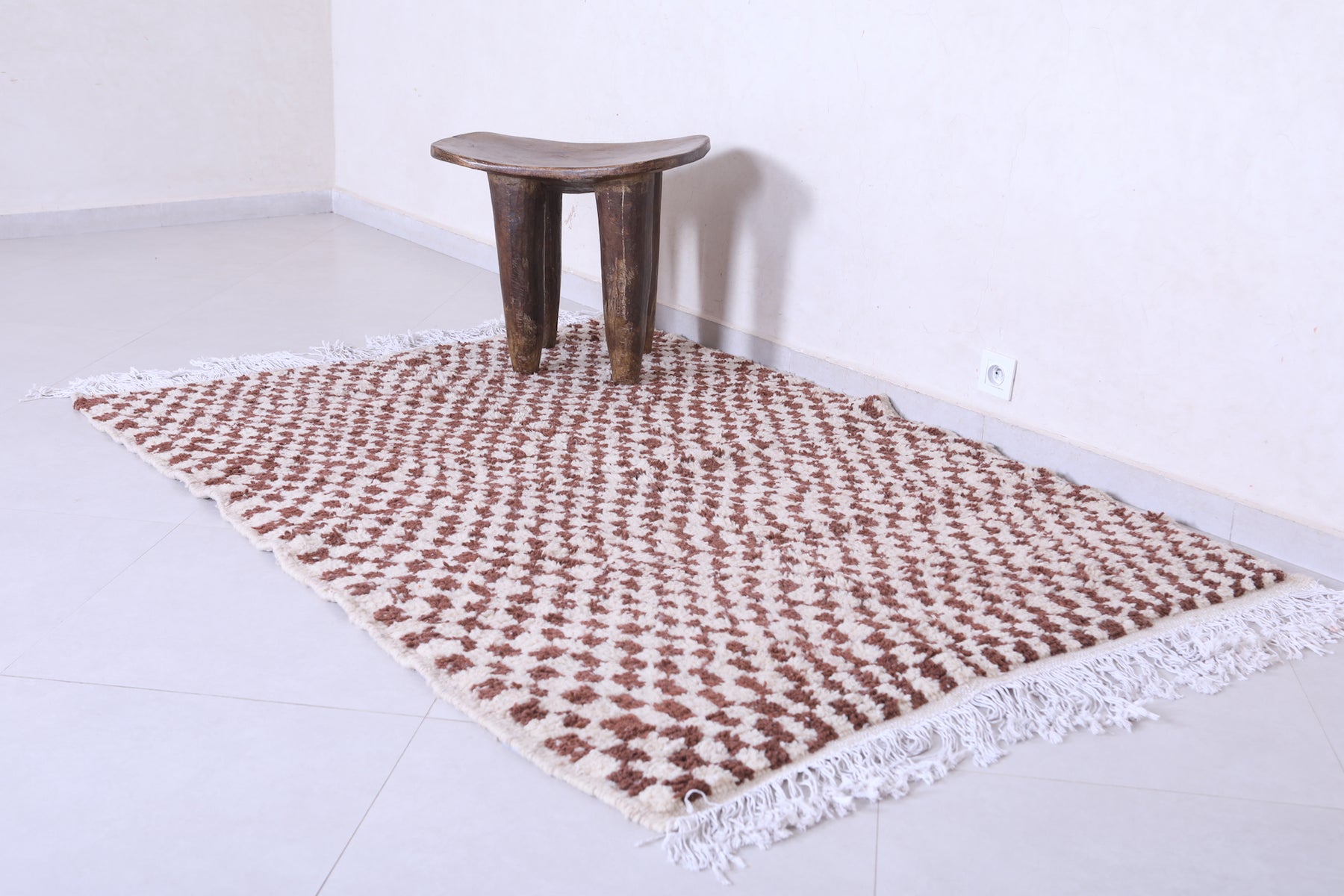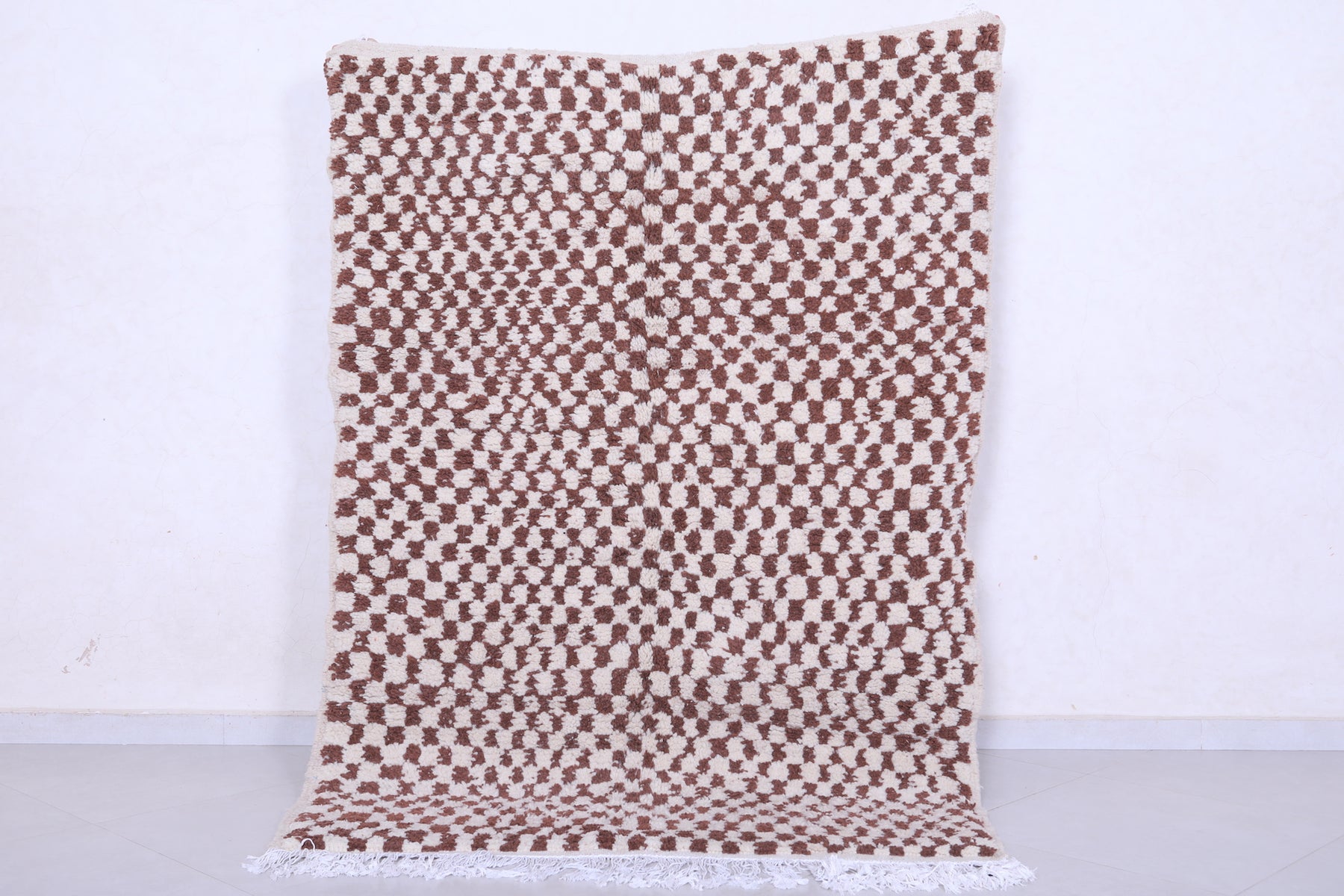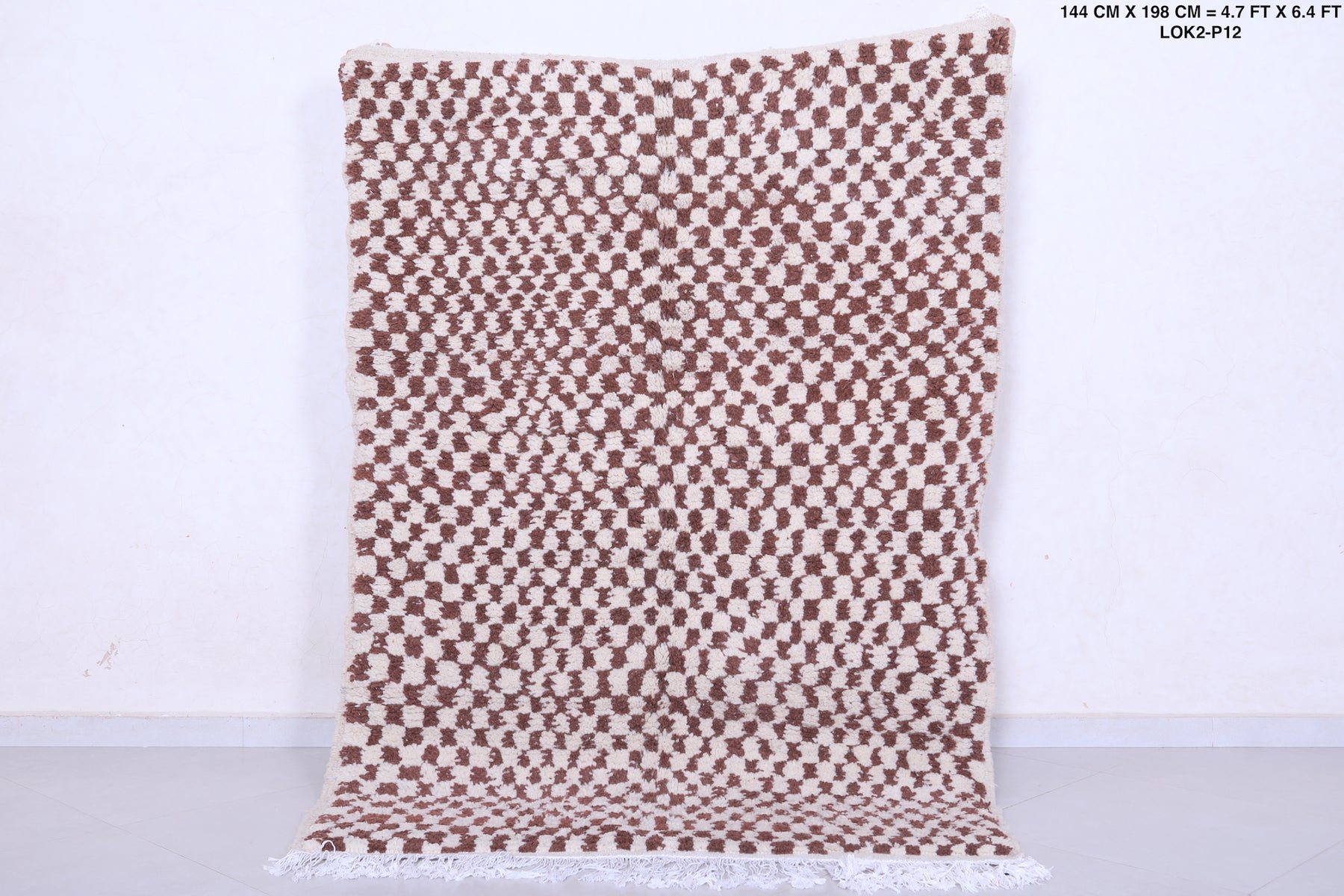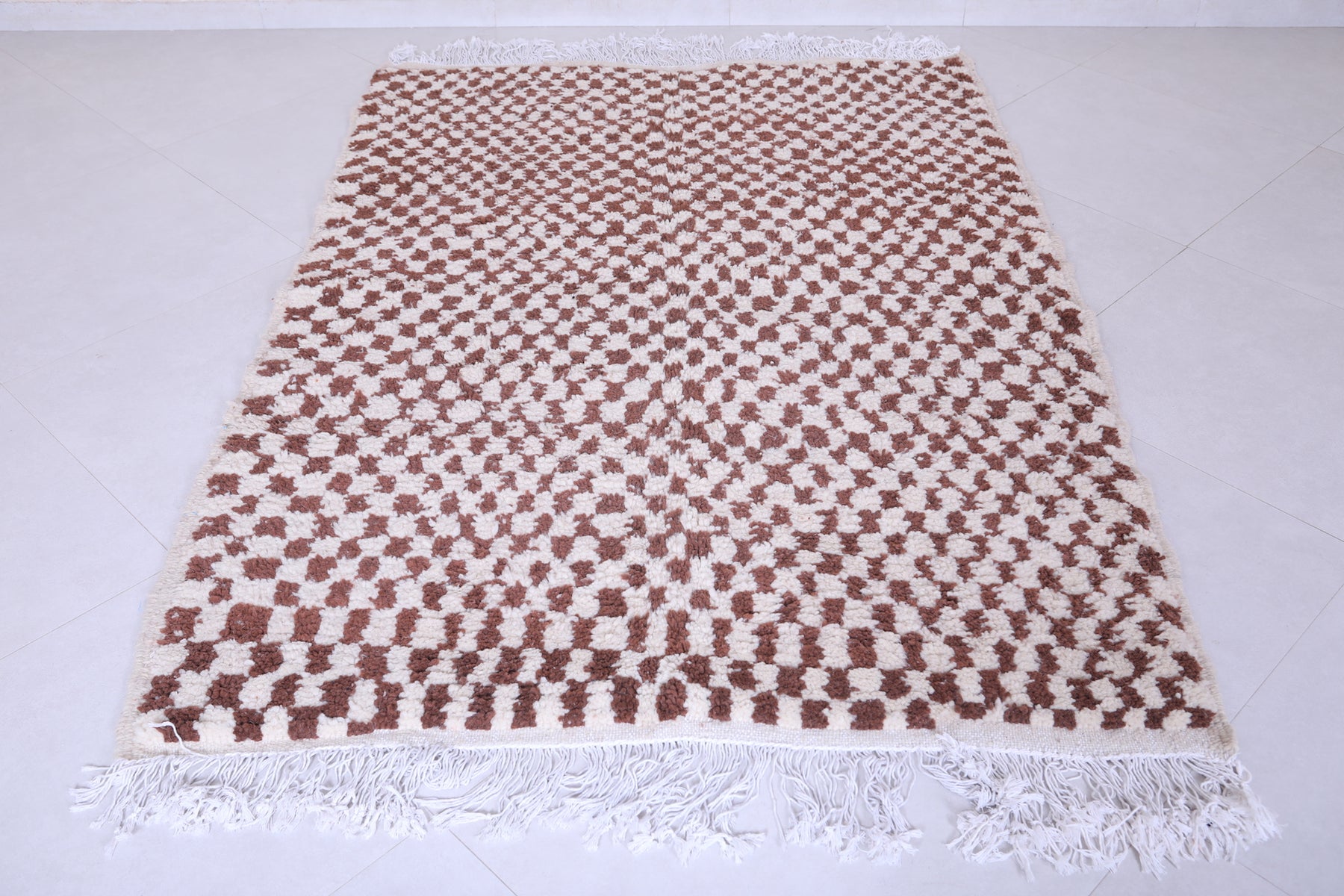 Brown and Beige Moroccan Checkered Rug 4.7 X 6.4 Feet – Handmade Elegance