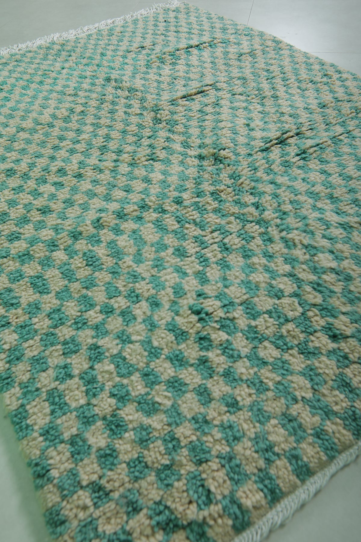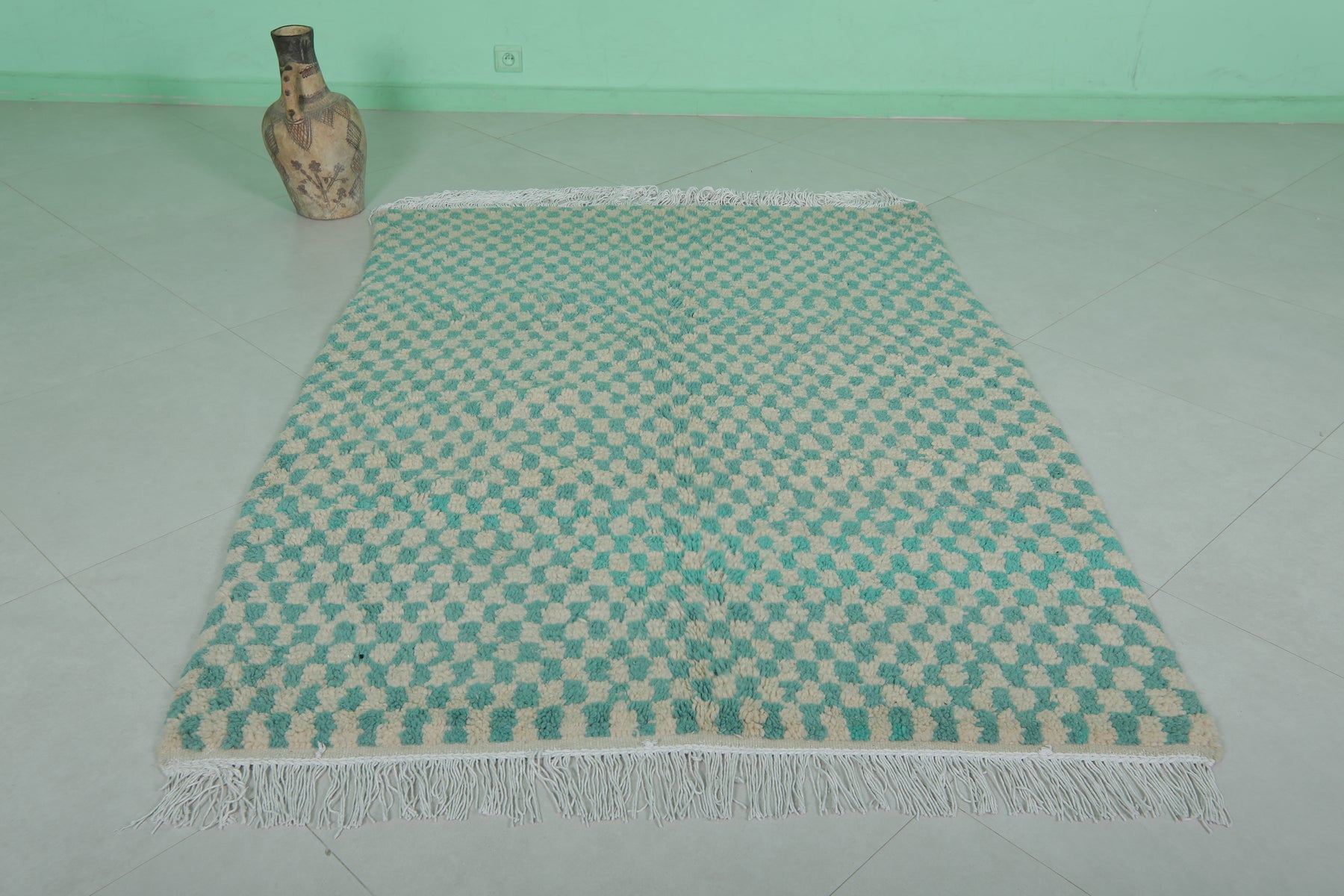 Green Moroccan Checkered Rug 4.6 X 6.3 Feet – Handcrafted Decor - Azilal rugs