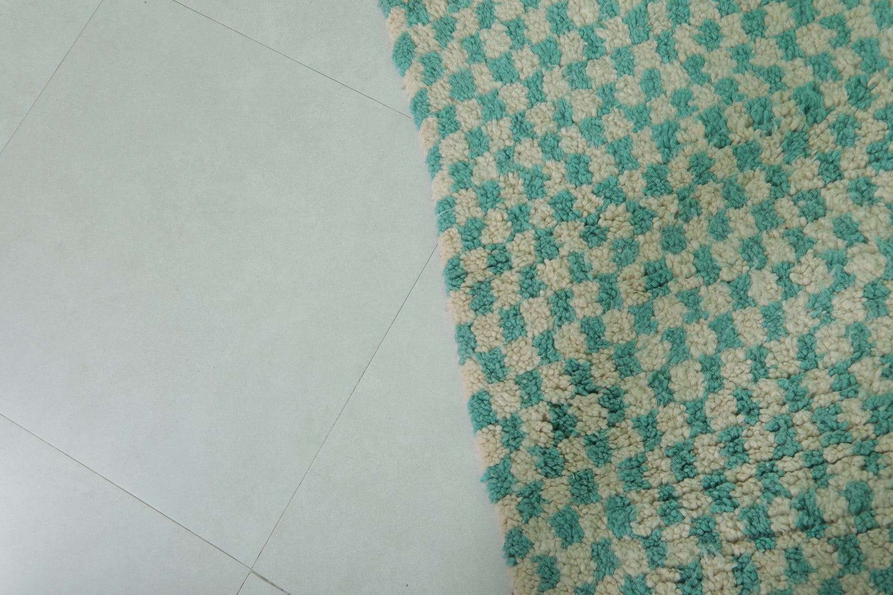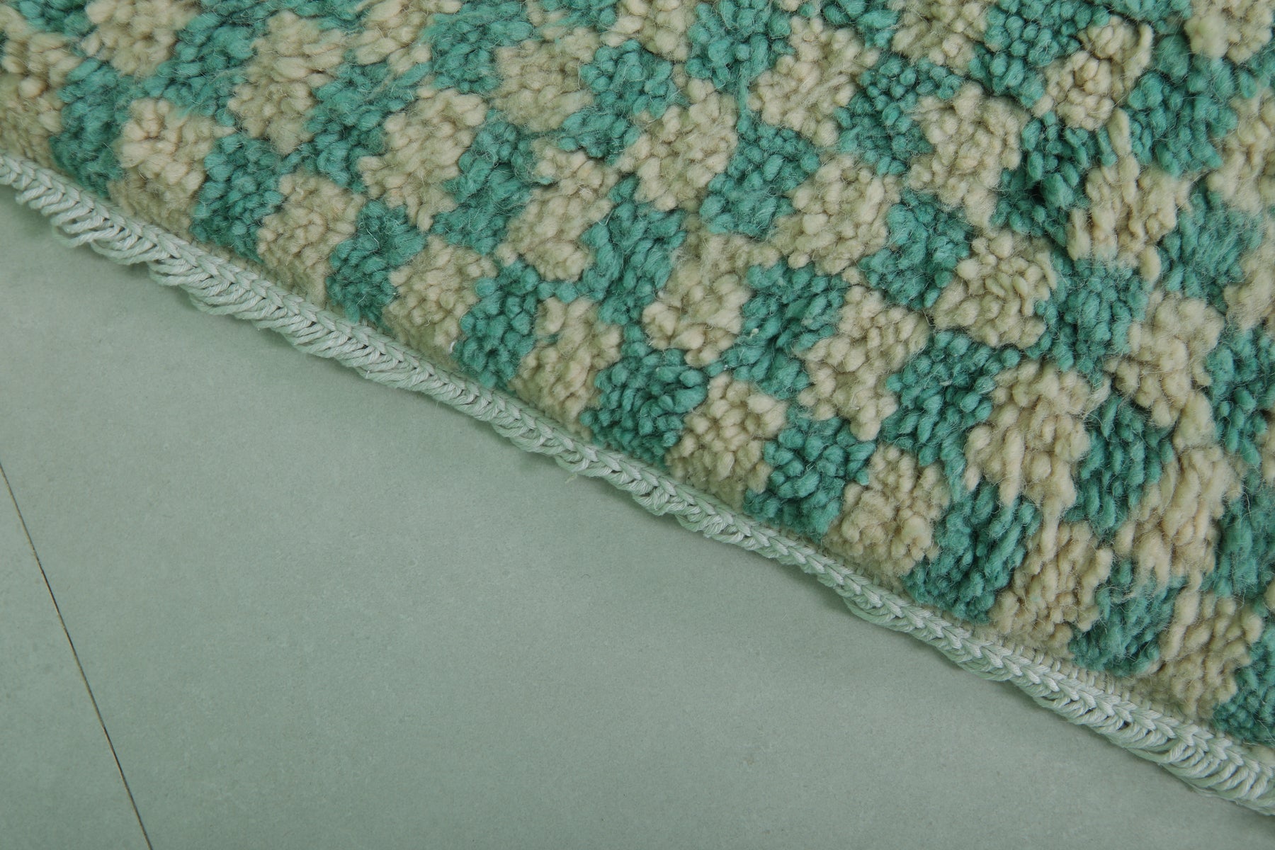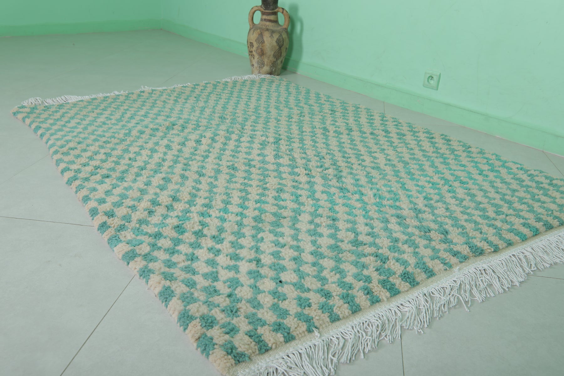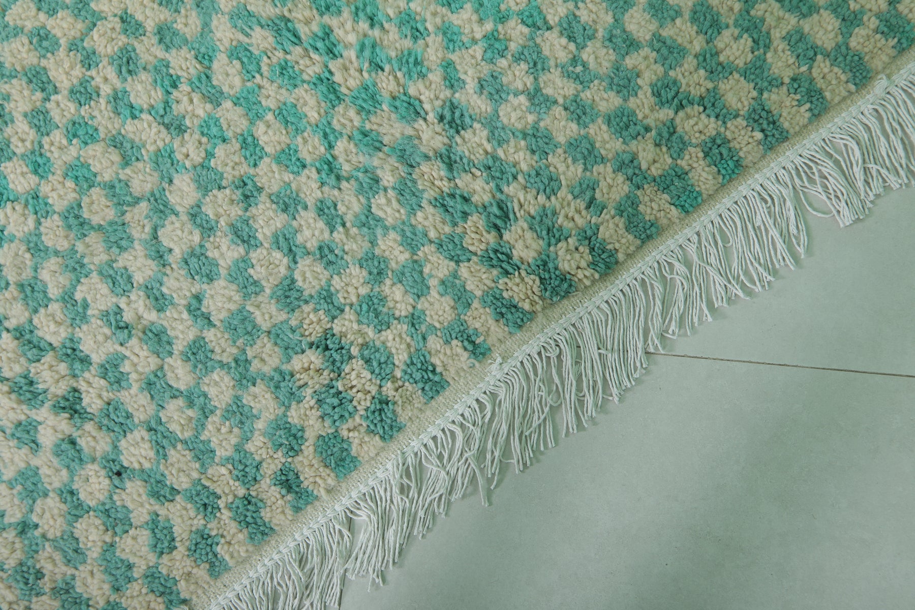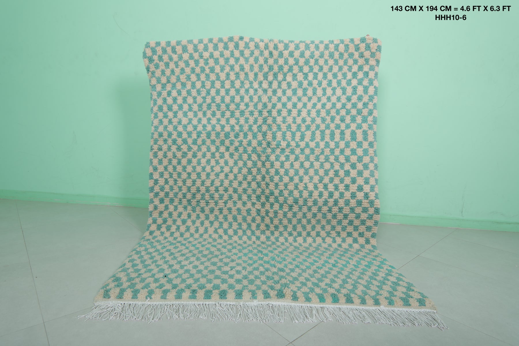 Green Moroccan Checkered Rug 4.6 X 6.3 Feet – Handcrafted Decor