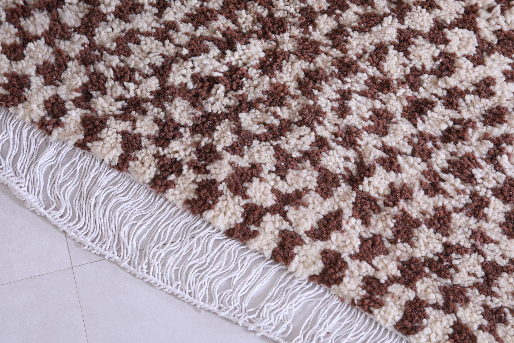 This 4.6 x 6.2 feet handmade Moroccan checkered rug features a warm brown and beige checkerboard pattern, blending traditional craftsmanship with modern elegance. Handwoven from high-quality wool, it offers a plush, soft, and durable texture that enhances any space. Perfect for living rooms, bedrooms, or cozy reading nooks, this versatile rug adds warmth and sophistication to both contemporary and bohemian décor styles.
