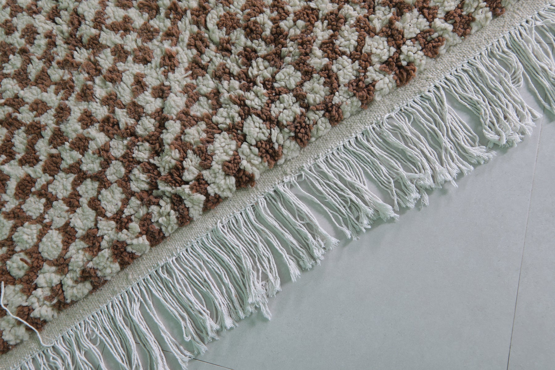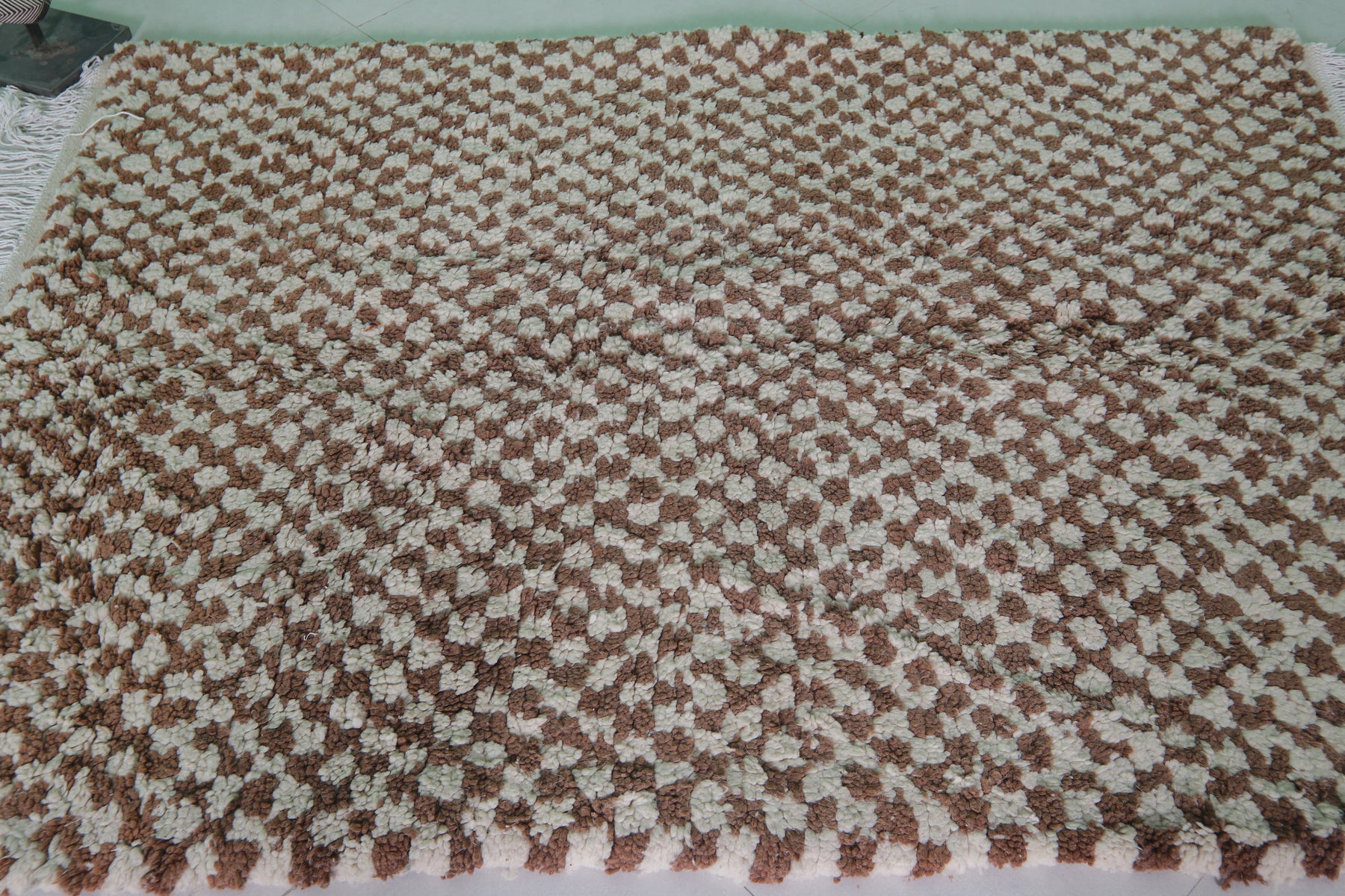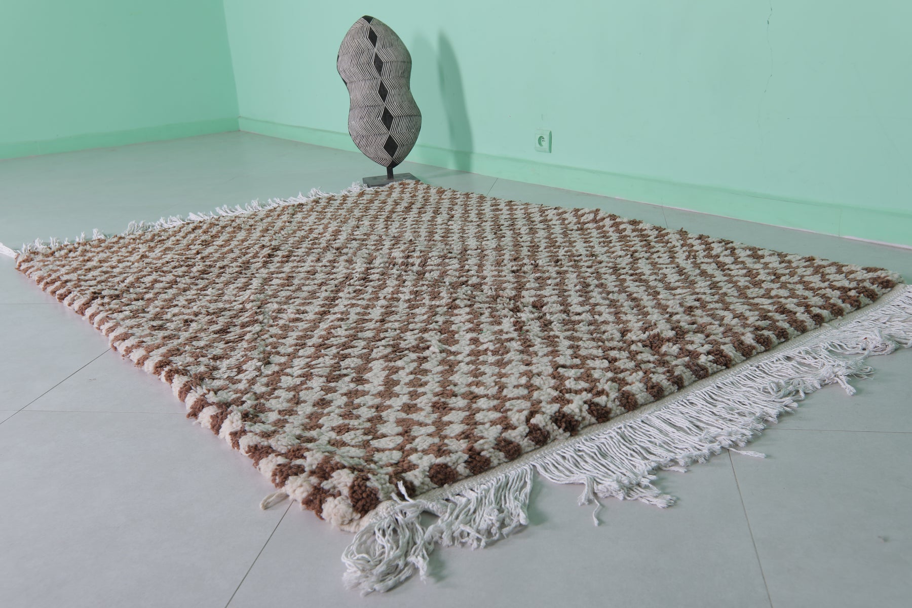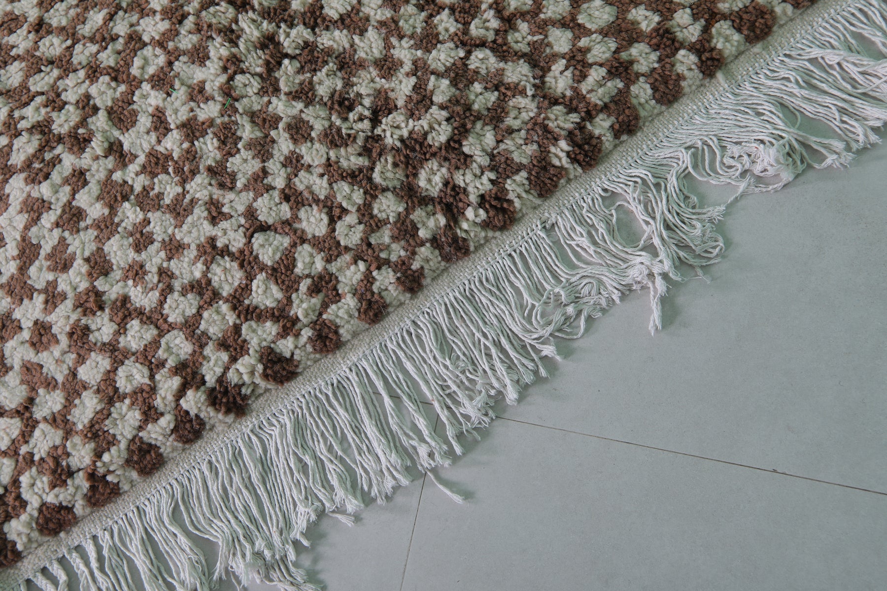 This 4.6 x 6.5 feet shaggy Moroccan chess rug features a classic brown and cream checkered pattern, blending timeless design with a cozy, plush texture. Handwoven from soft wool, this rug adds warmth, depth, and sophistication to any space. Its intricate weaving and natural tones make it a durable yet stylish accent for living rooms, bedrooms, or reading nooks. A perfect choice for bohemian, modern, or rustic interiors.