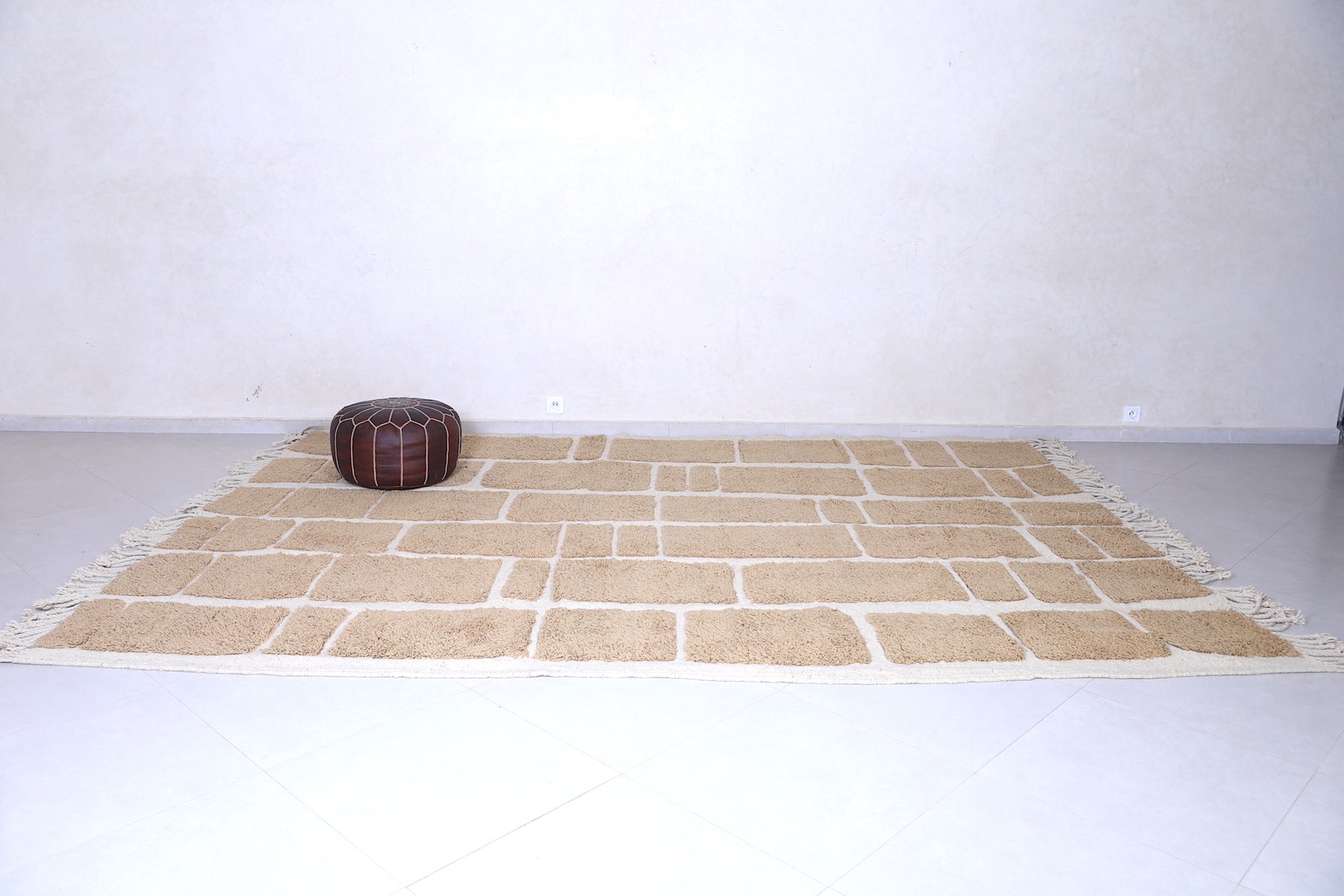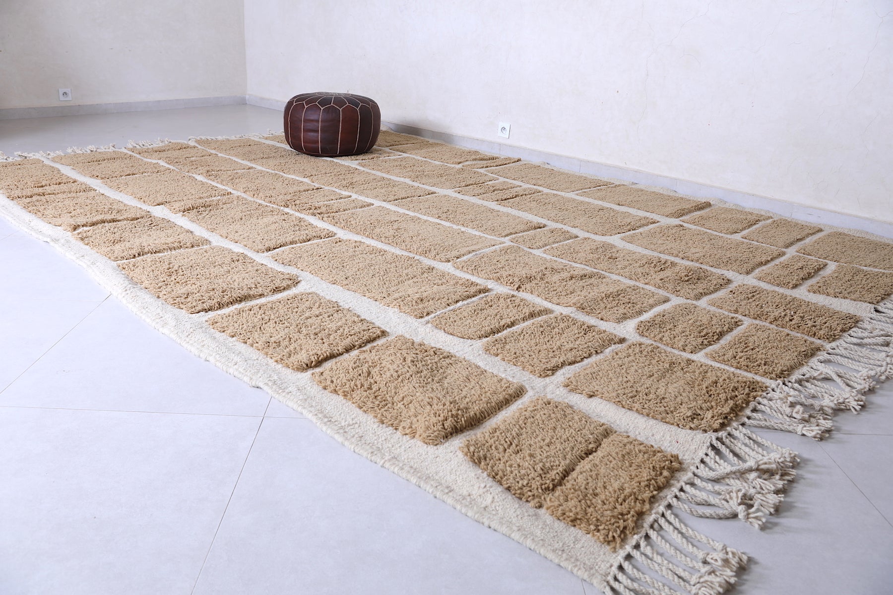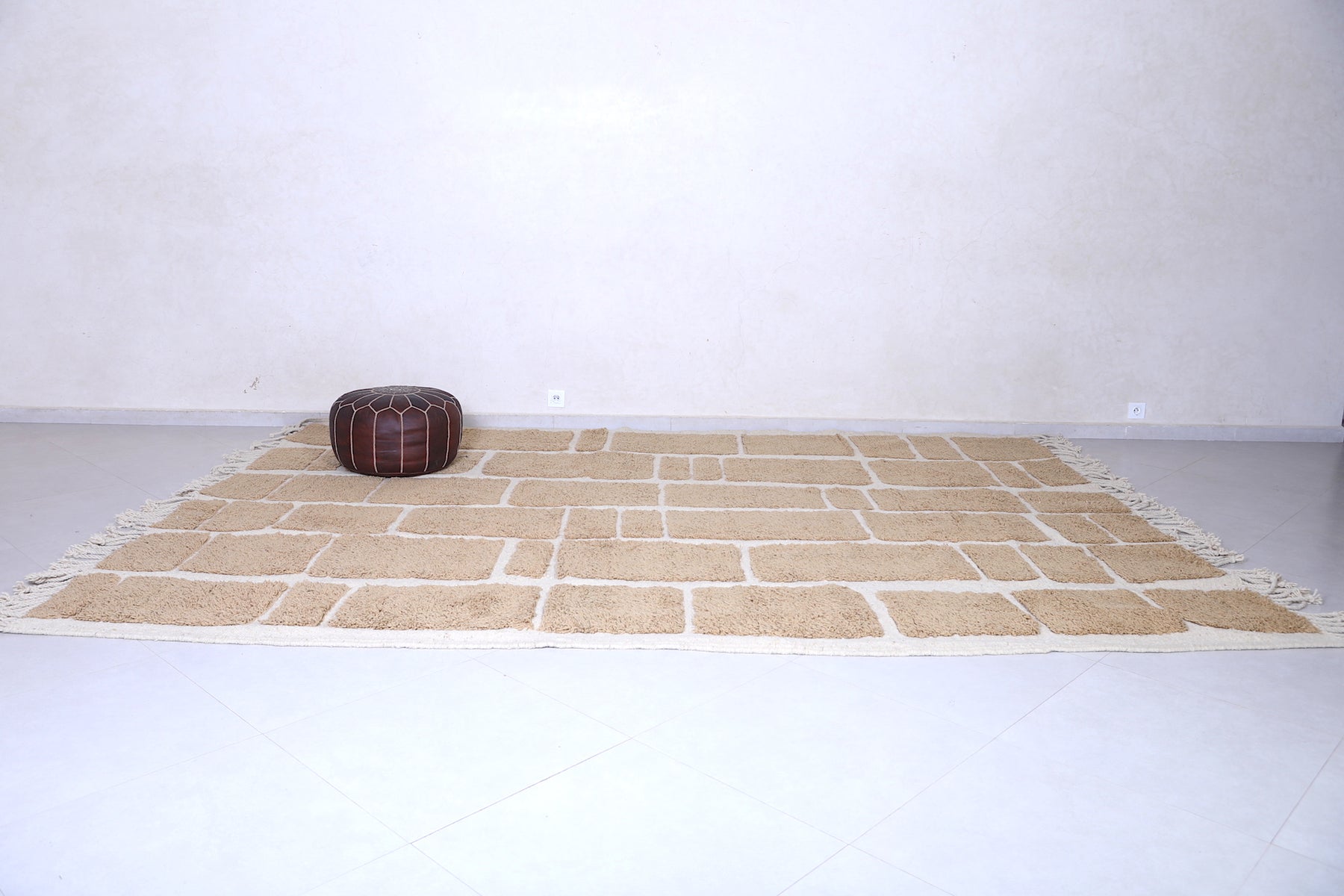 Geometric Moroccan Rug – Beige & Cream - Handwoven Modern Design