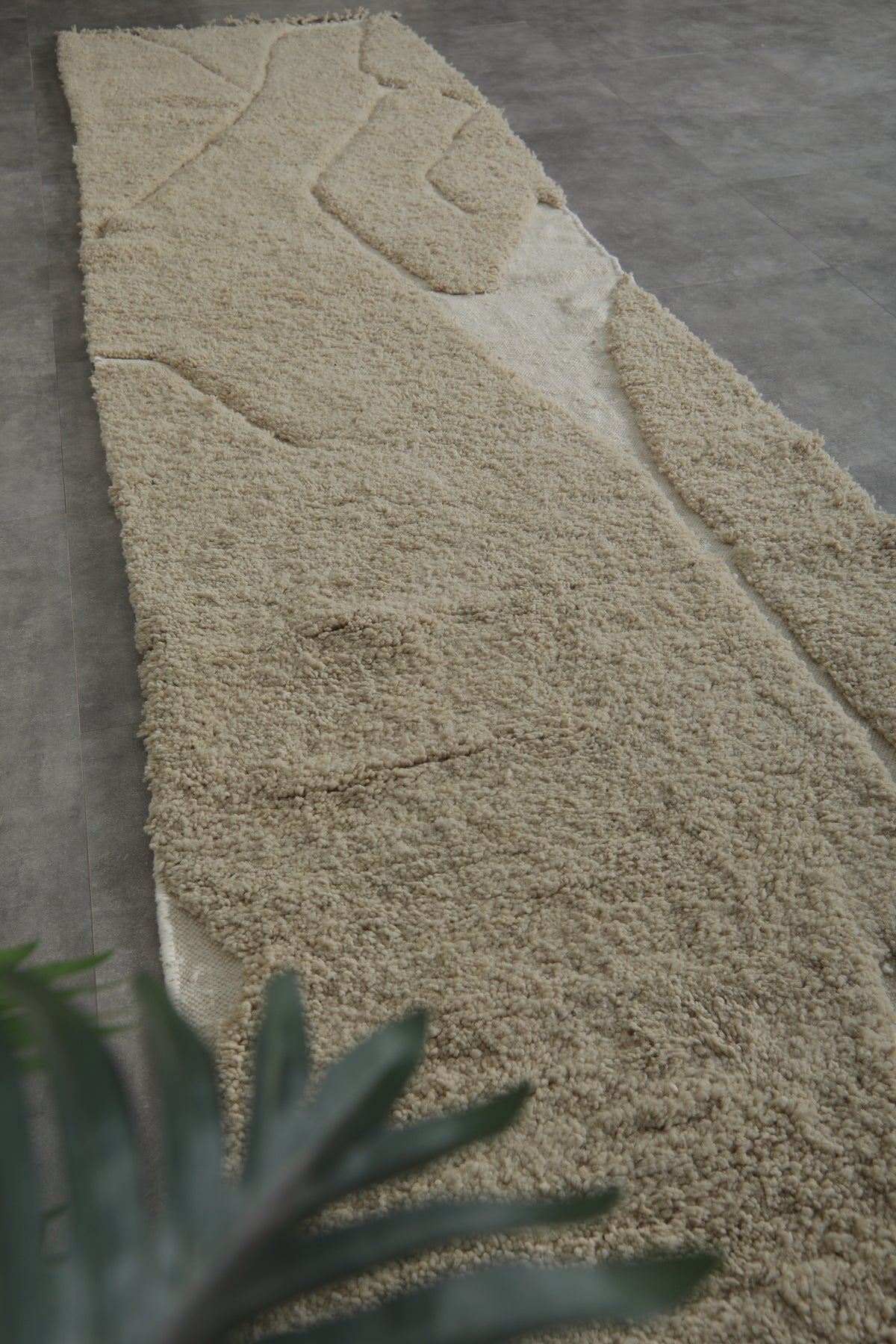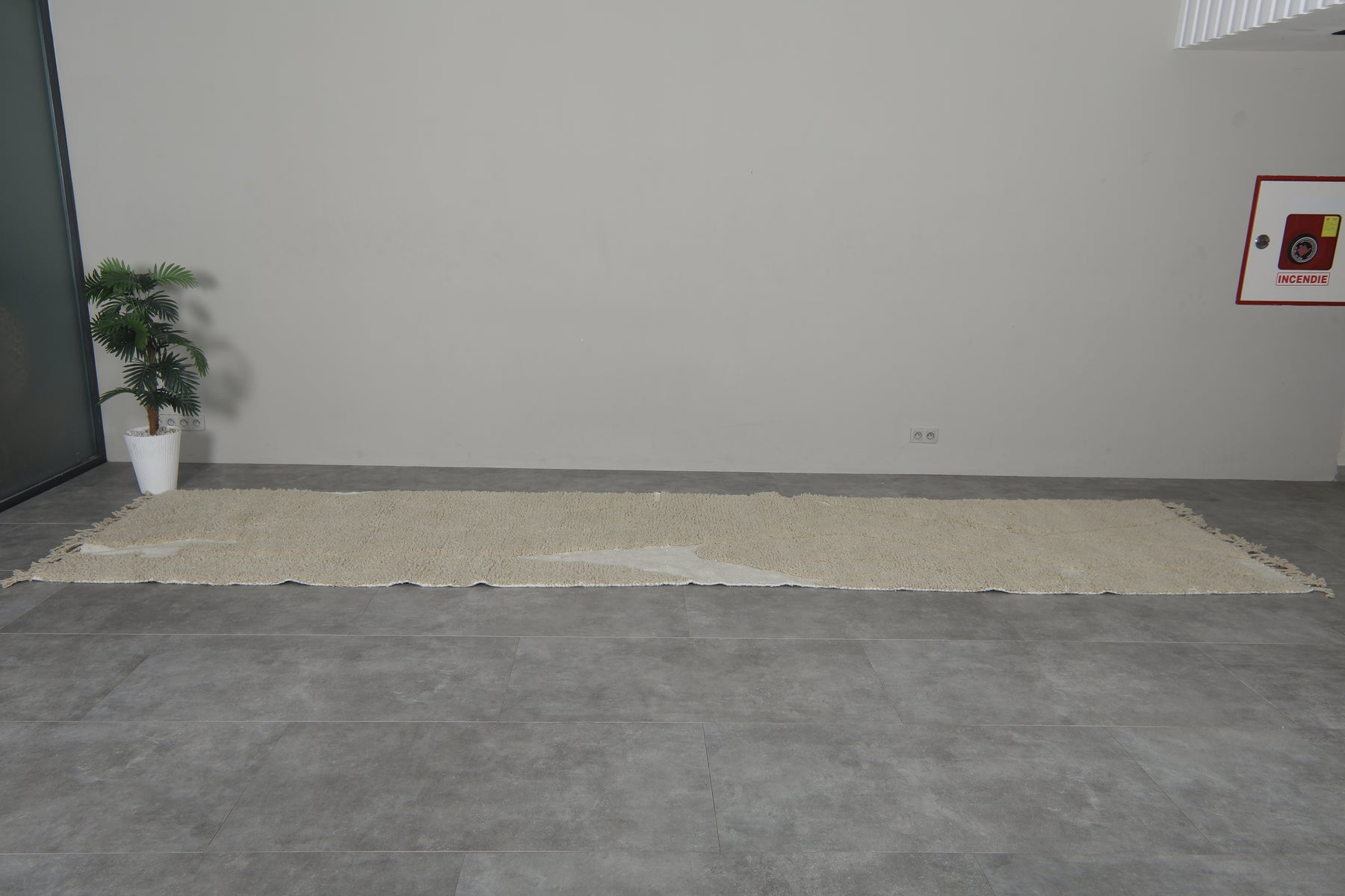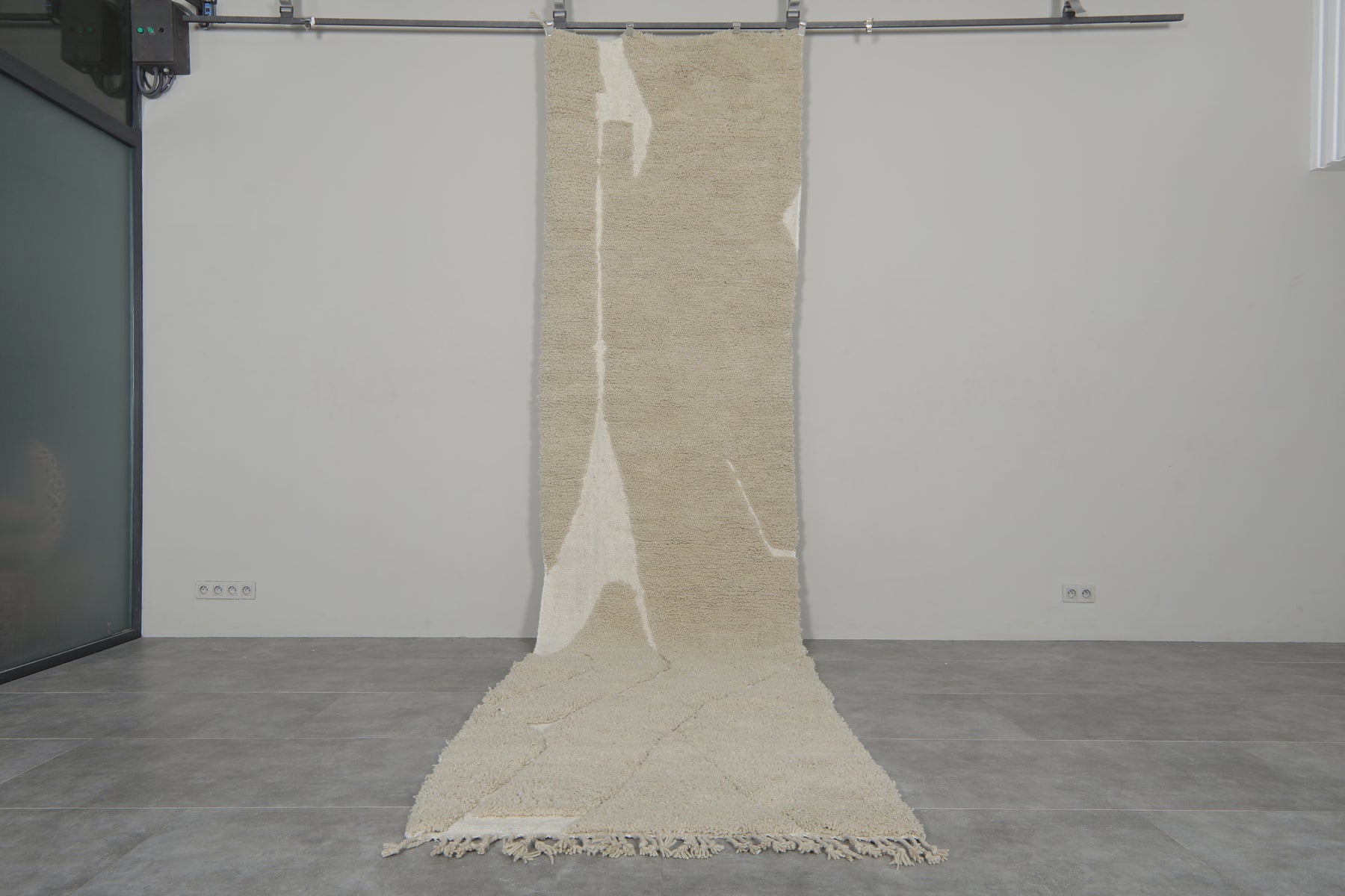 Custom handmade Moroccan runner rug - Beige & cream wool rug