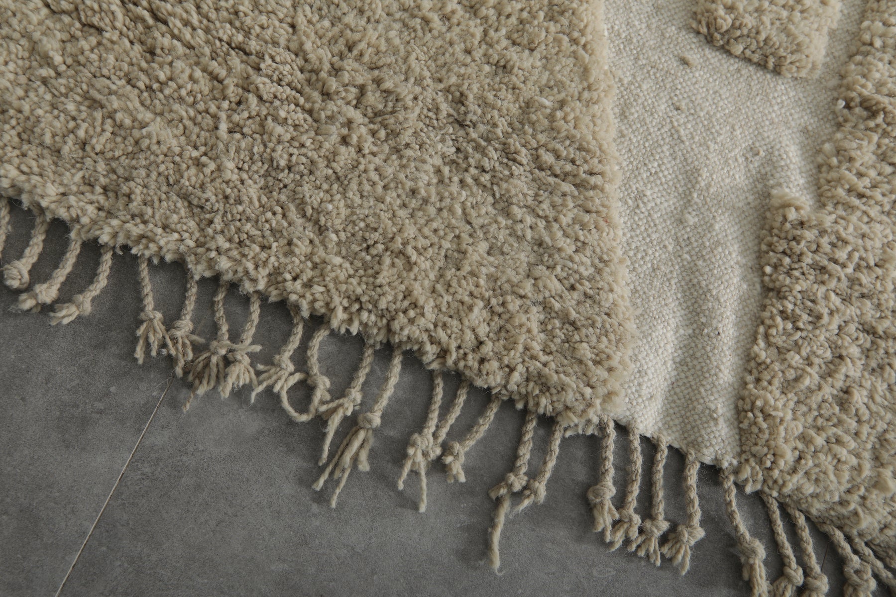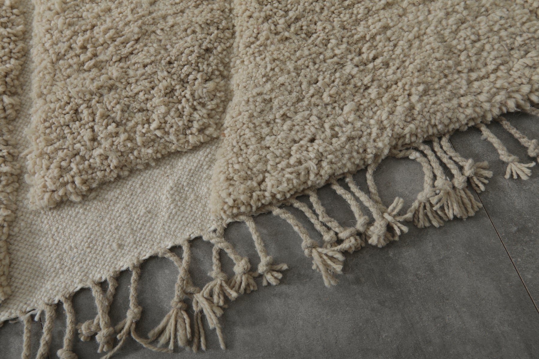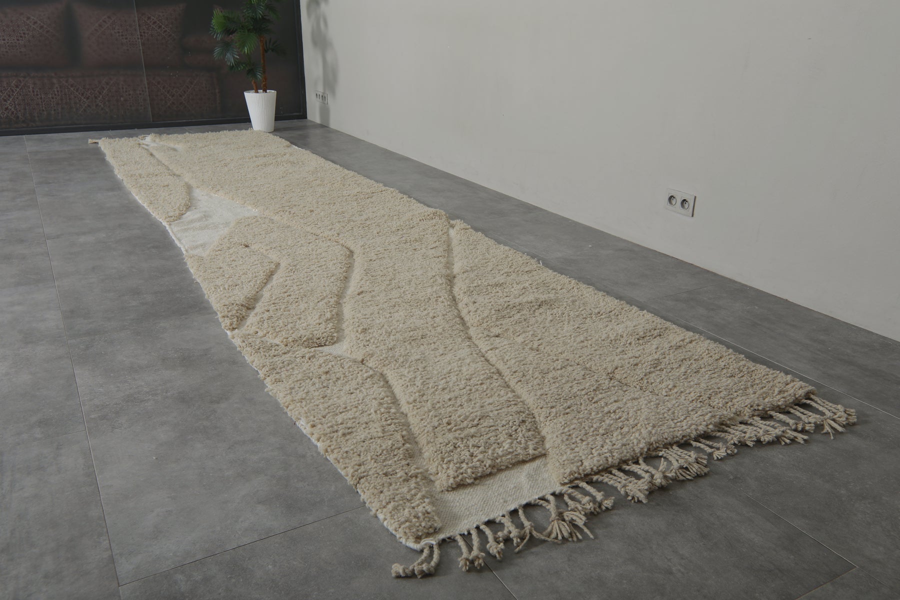 Custom handmade Moroccan runner rug - Beige & cream wool rug