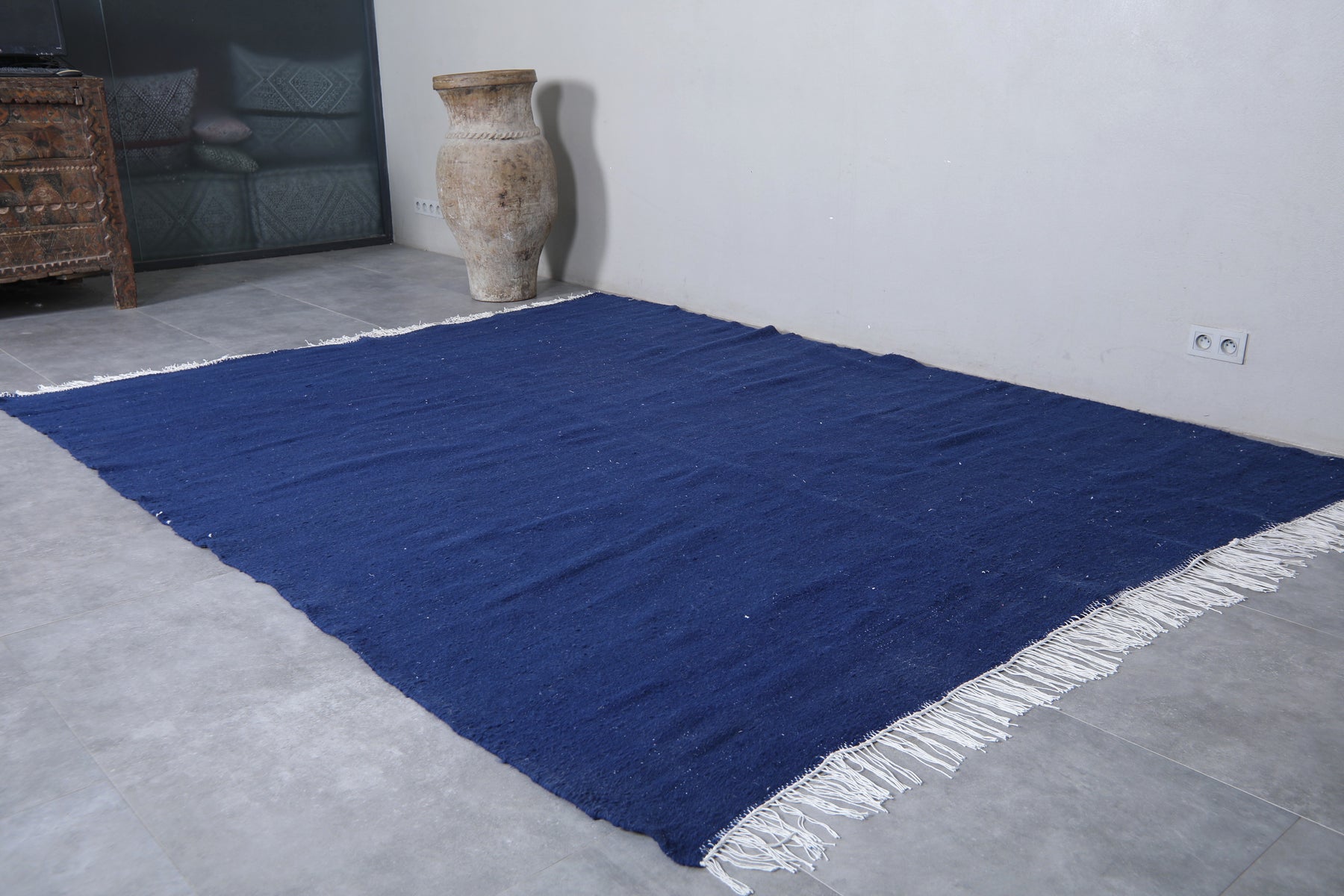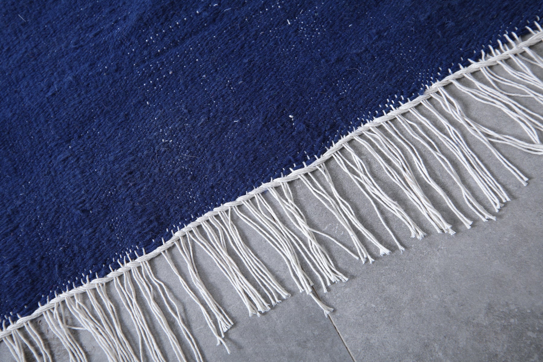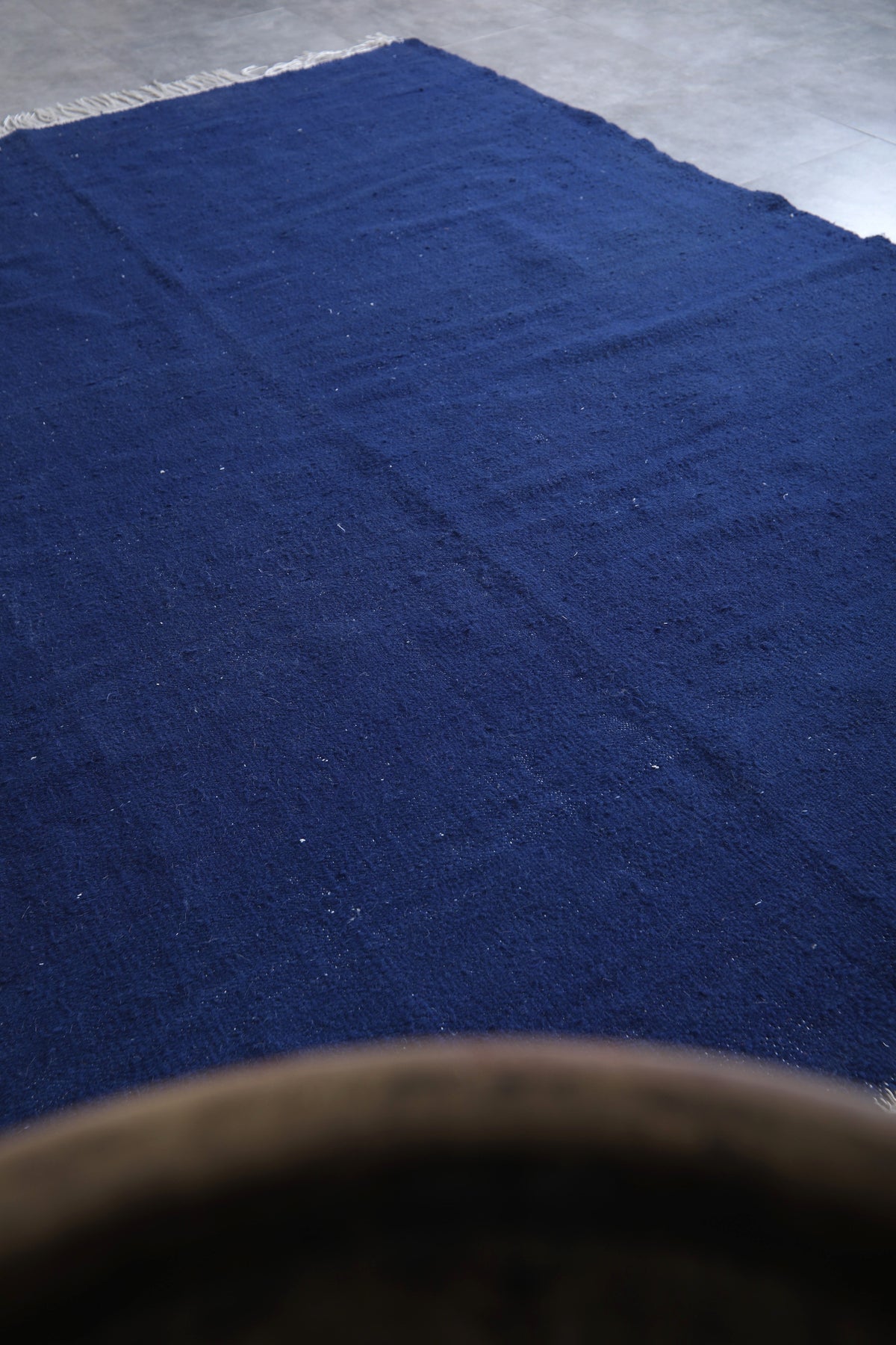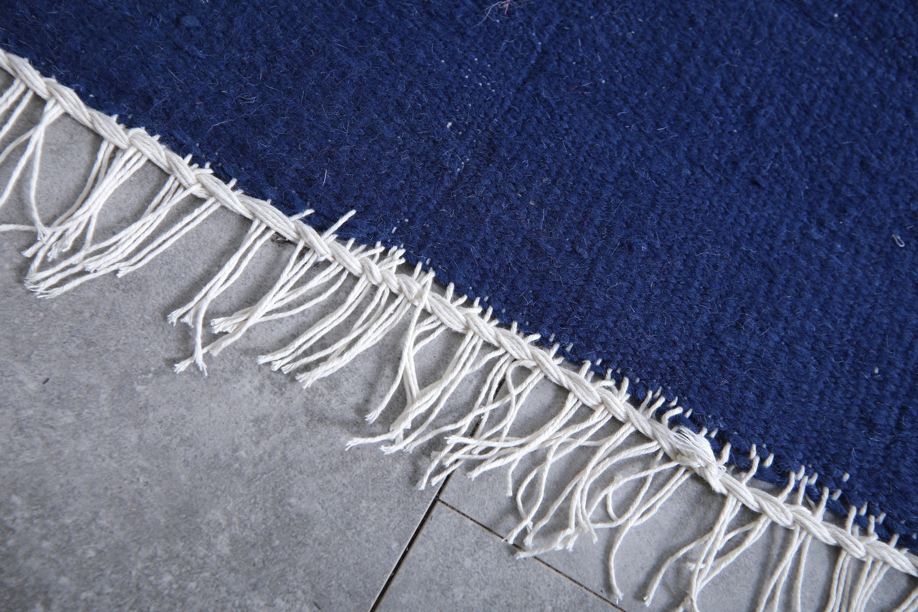Deep blue flat woven Moroccan rug - Custom wool rug