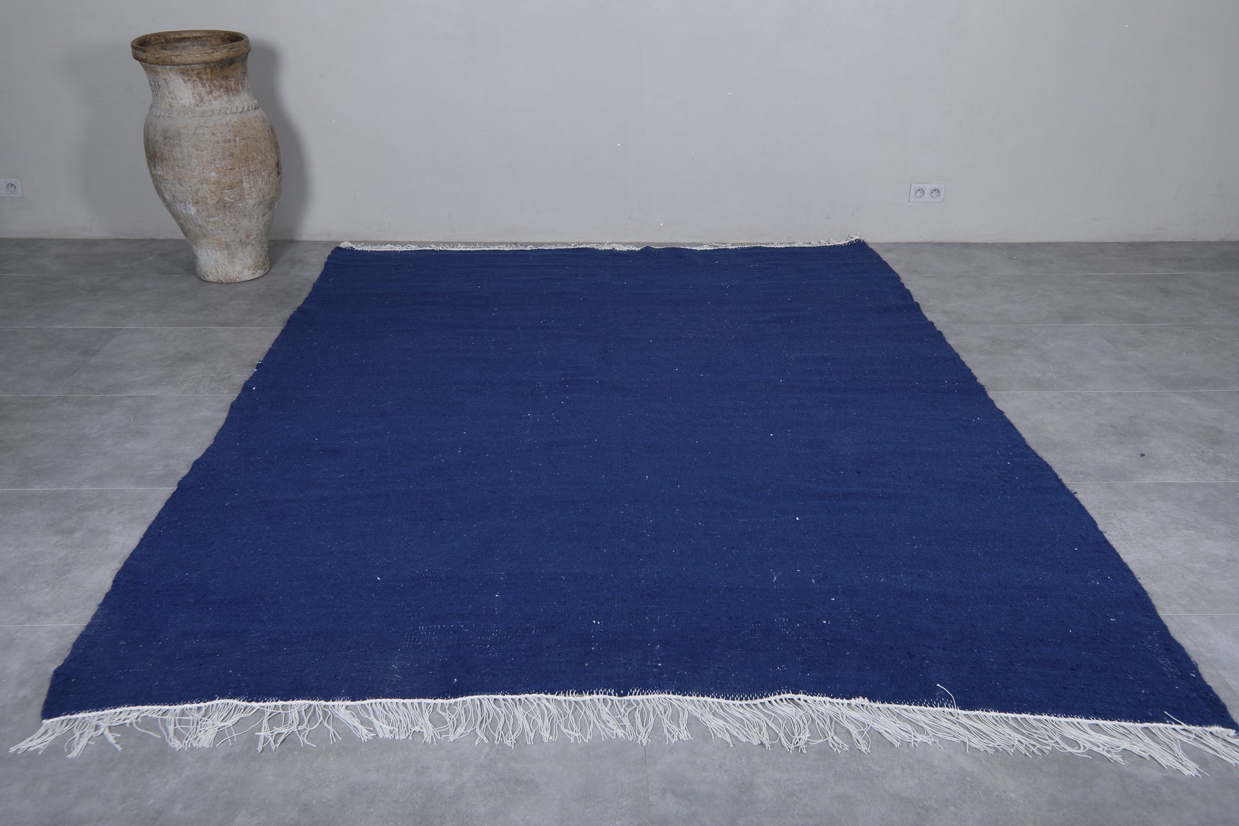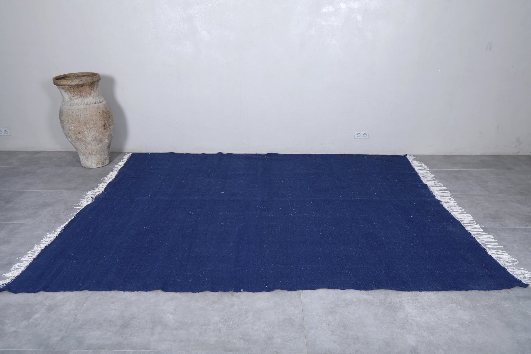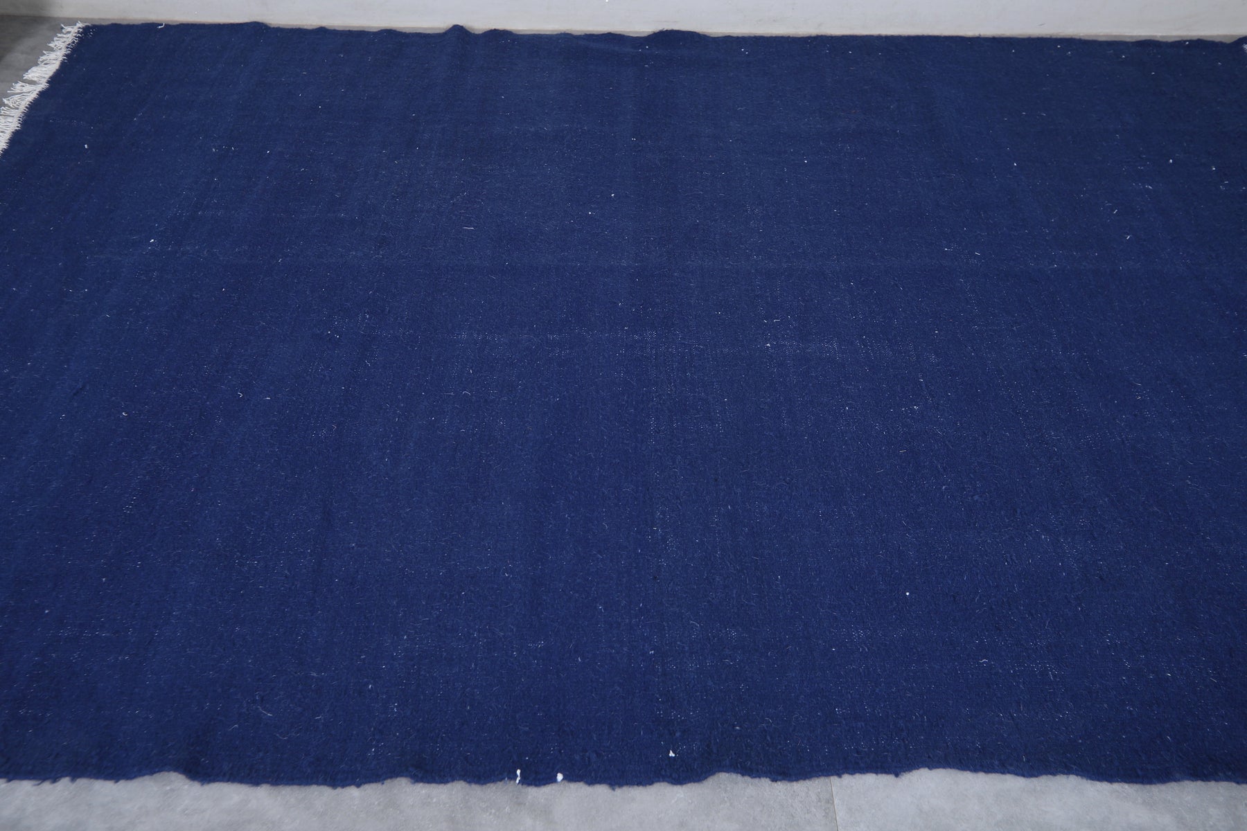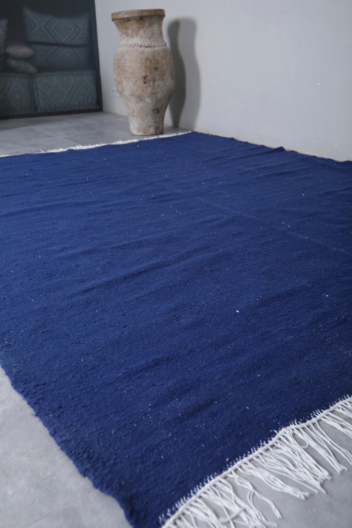 Deep blue flat woven Moroccan rug - Custom wool rug