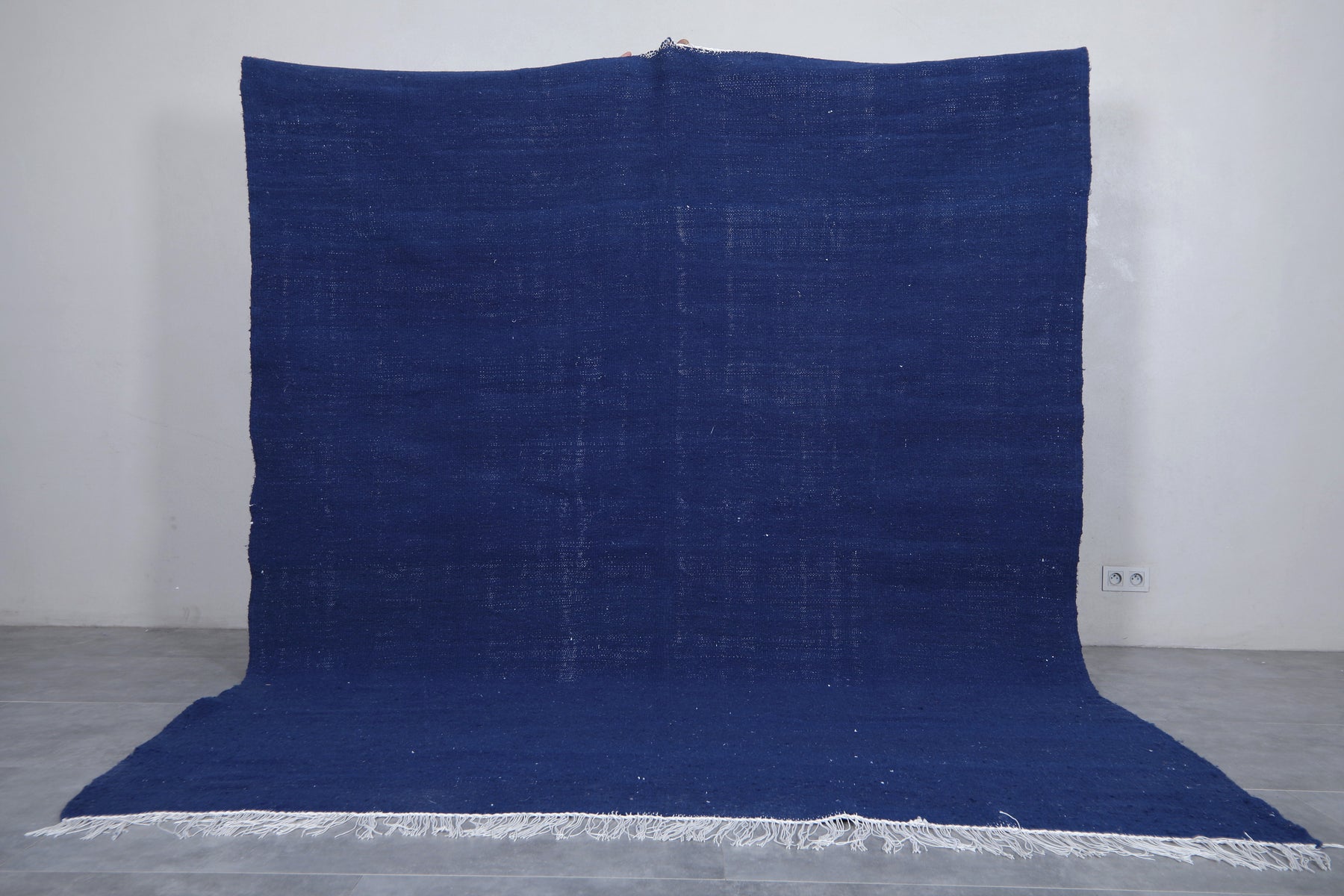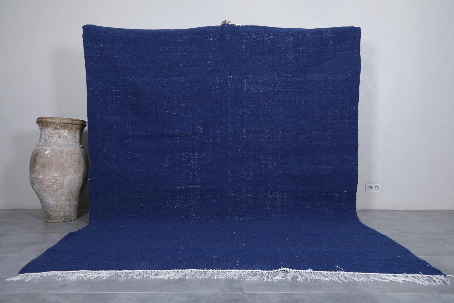 Make a bold design statement with this Flat Woven Moroccan Rug in deep blue, handcrafted in the traditional Berber beige kilim style. The rich, saturated hue adds vibrancy to your space, while the flat-weave construction offers a clean, contemporary look. Perfect for layering or use as a standalone accent, this custom rug brings elegance, culture, and modern sophistication into any room.