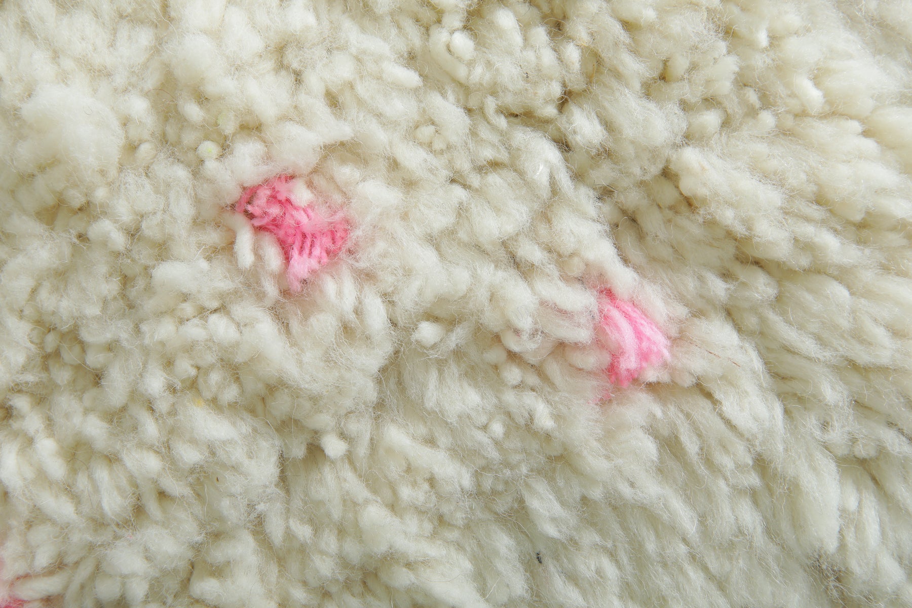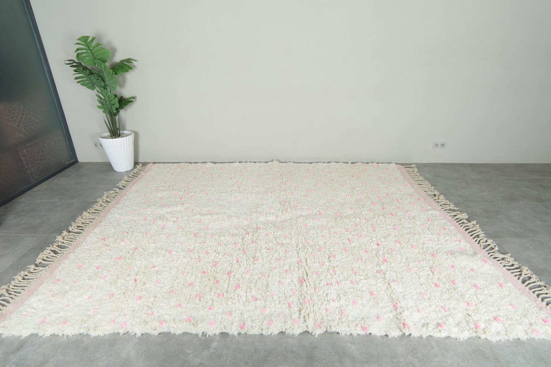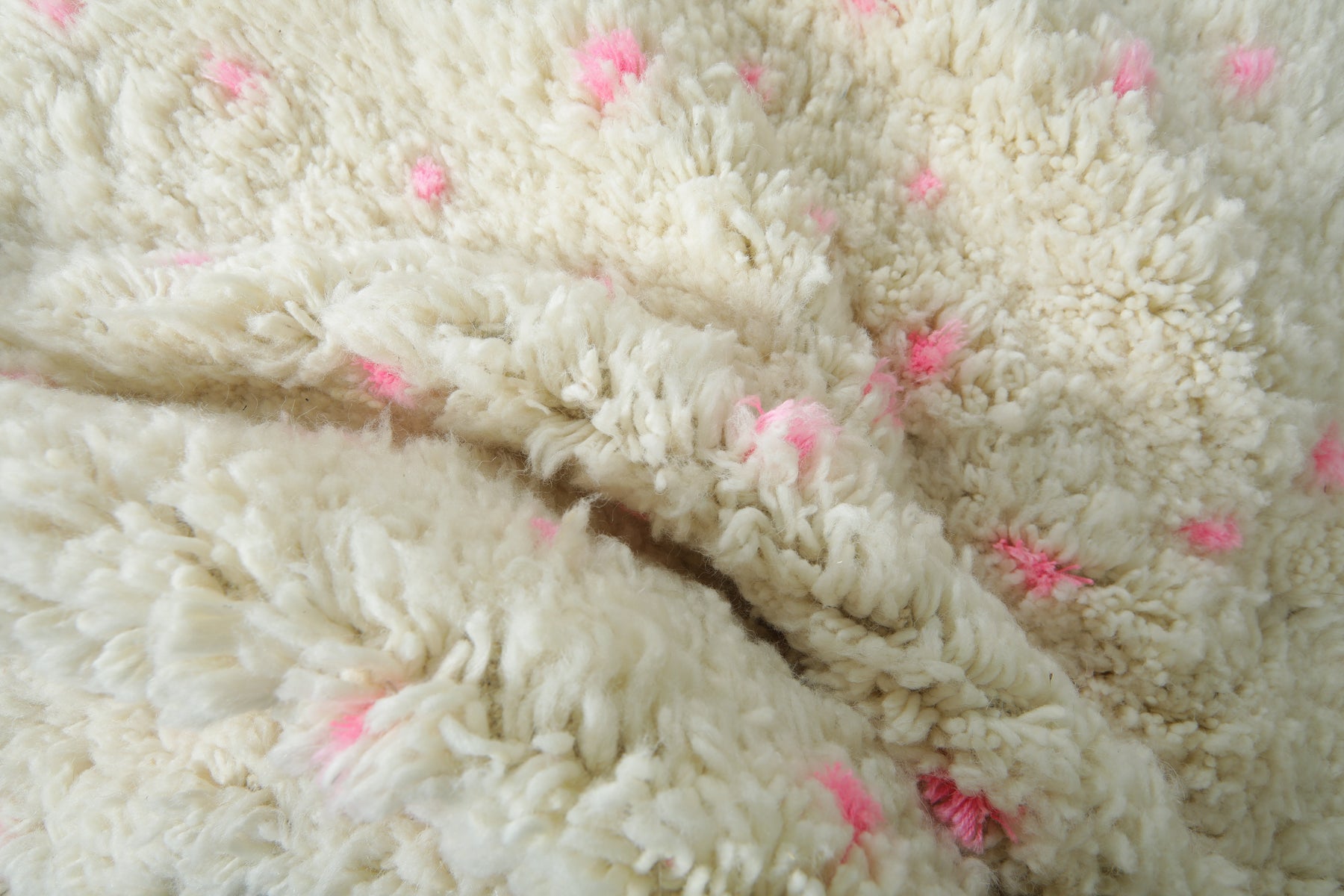 Handmade Moroccan rug – White wool with soft pink dots - Custom rug