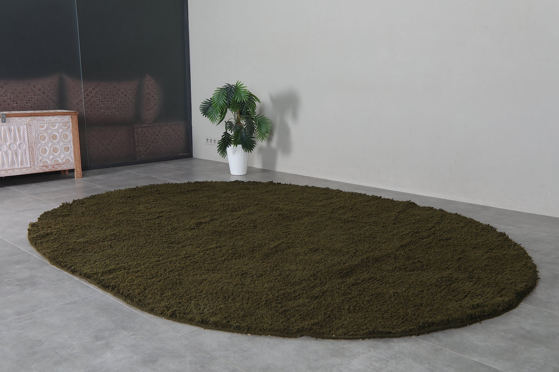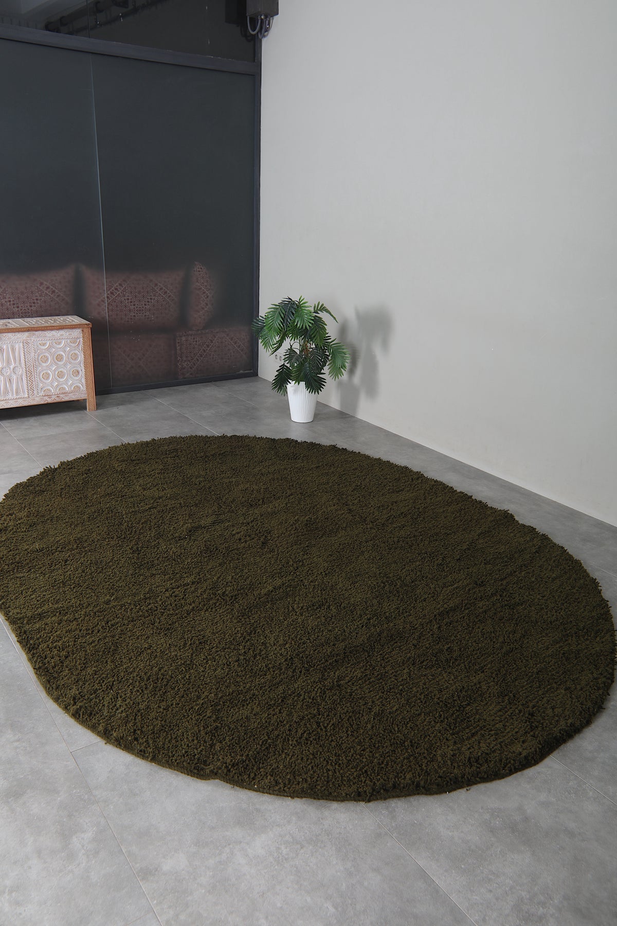 Bring a touch of modern elegance to your home with this handcrafted olive green oval rug. Its rich, earthy tone creates a calming foundation for any room, while the soft, plush wool texture invites comfort and warmth. Perfect for grounding your living room, bedroom, or reading nook, the unique oval silhouette adds visual interest and softens angular spaces. Ethically made and built to last, this rug combines minimalist design with natural beauty—ideal for contemporary, Scandinavian, or rustic interiors.