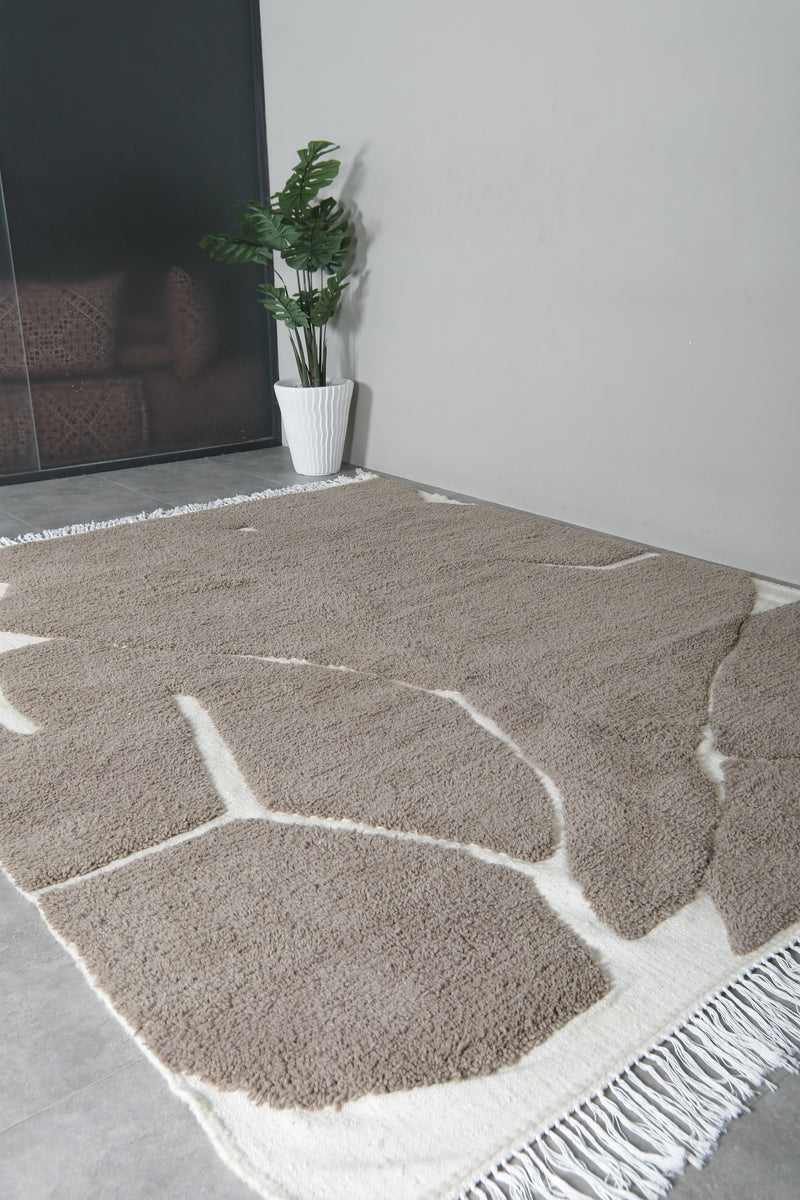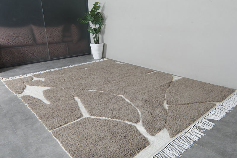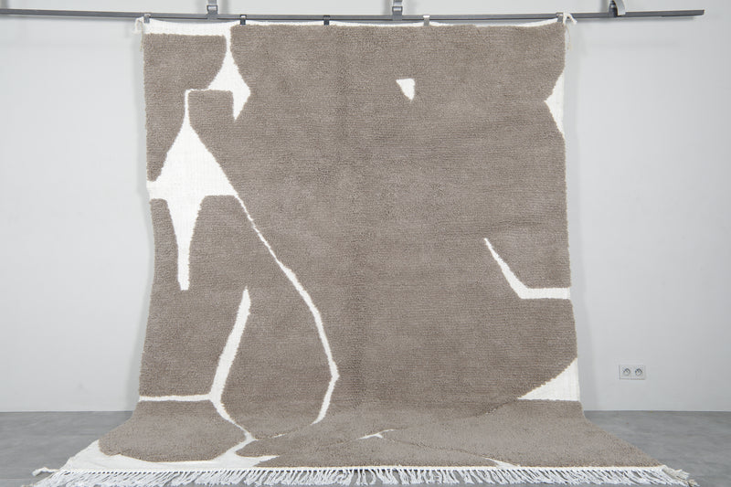 This handwoven Moroccan rug features a sophisticated white Grey color, offering a warm, earthy tone that effortlessly complements both modern and rustic interiors. Crafted from 100% natural wool, the rug showcases traditional Berber geometric patterns with a minimalist flair, blending cultural heritage with contemporary design. The soft texture of the wool provides a cozy feel underfoot while adding a touch of elegance and tranquility to your space. Perfect for creating a calming, neutral backdrop, this rug is available in various sizes to suit any room in your home.