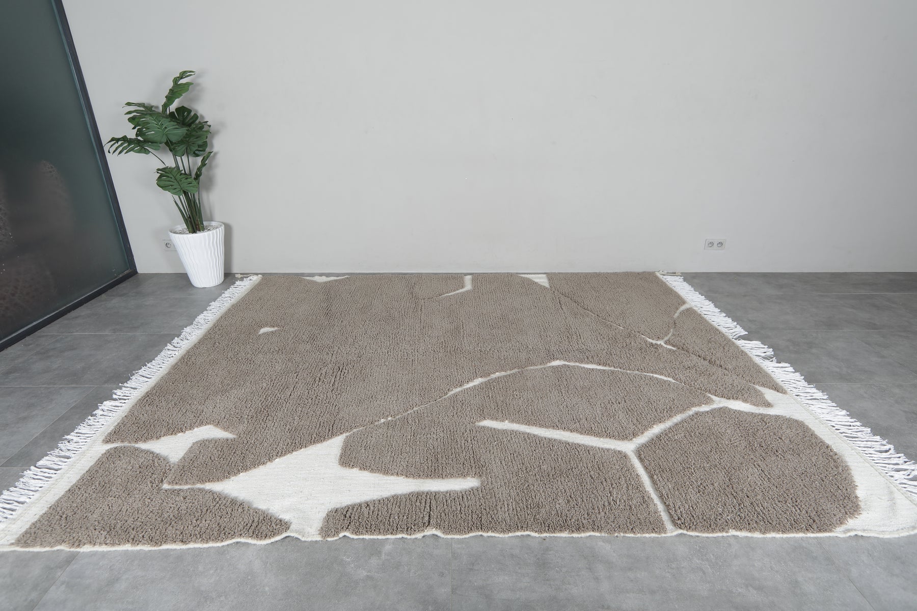 Custom handwoven Moroccan rug - Earthy white & grey berber design