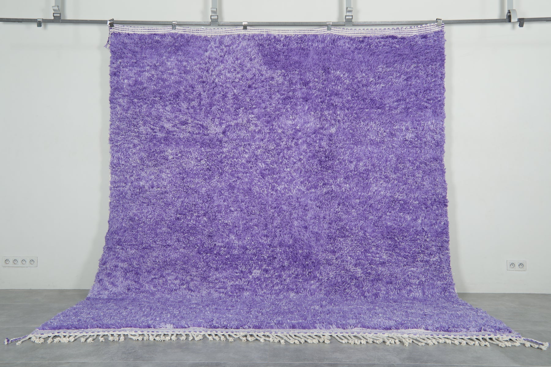 Handwoven Moroccan Rug - Purple Shaggy Wool Carpet - Custom Rug