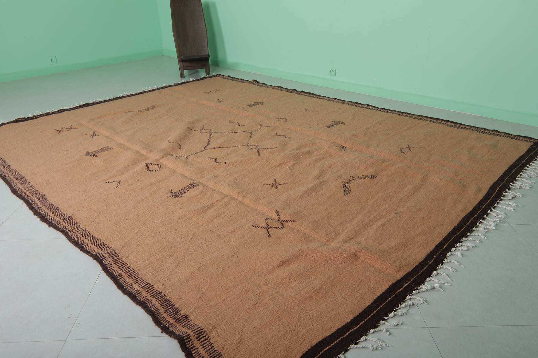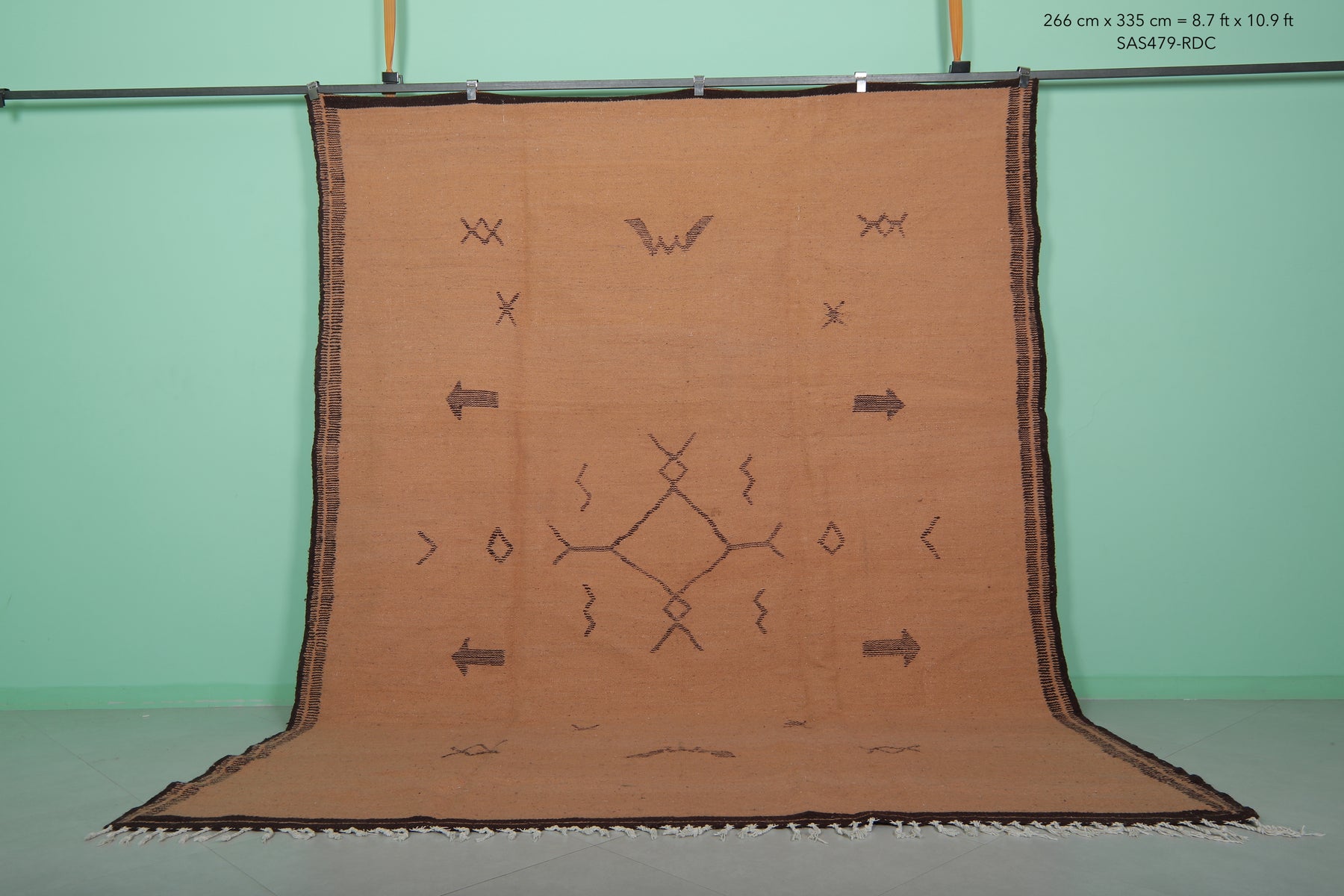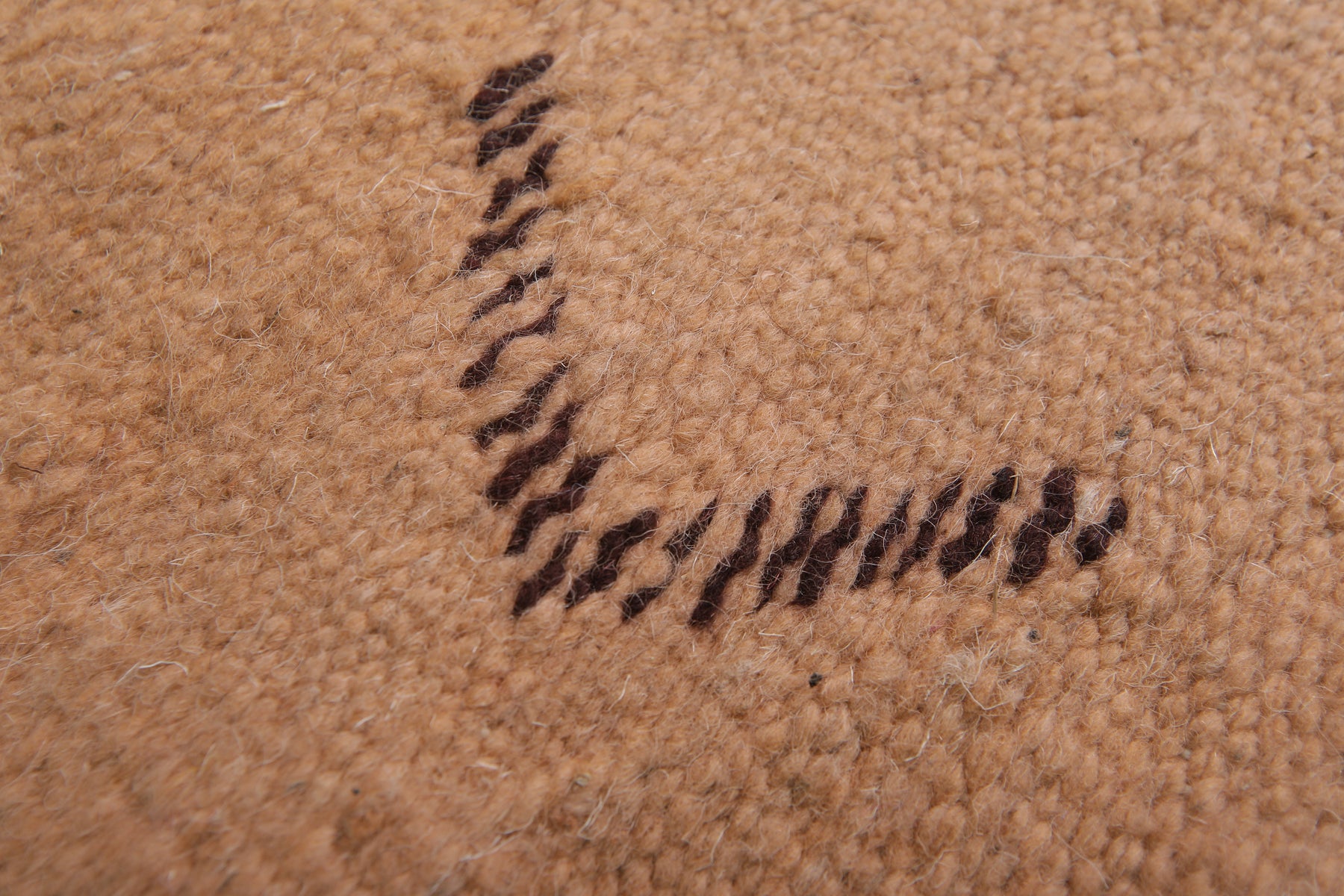 This 8.7 x 10.9 feet Azilal Moroccan rug blends earthy elegance with traditional tribal patterns on a warm brown background. Handwoven from high-quality wool, it showcases subtle Berber symbols that add a rustic and artistic charm to any space. Perfect for living rooms, bedrooms, or offices, this rug combines durability with Moroccan heritage.