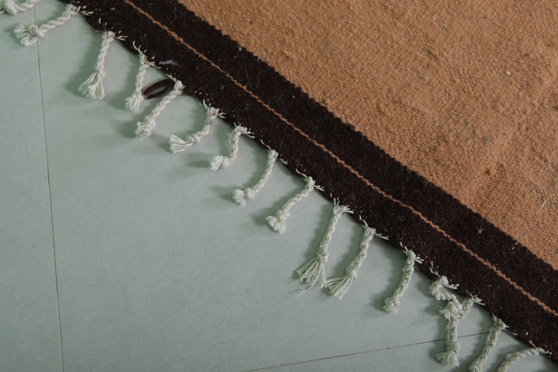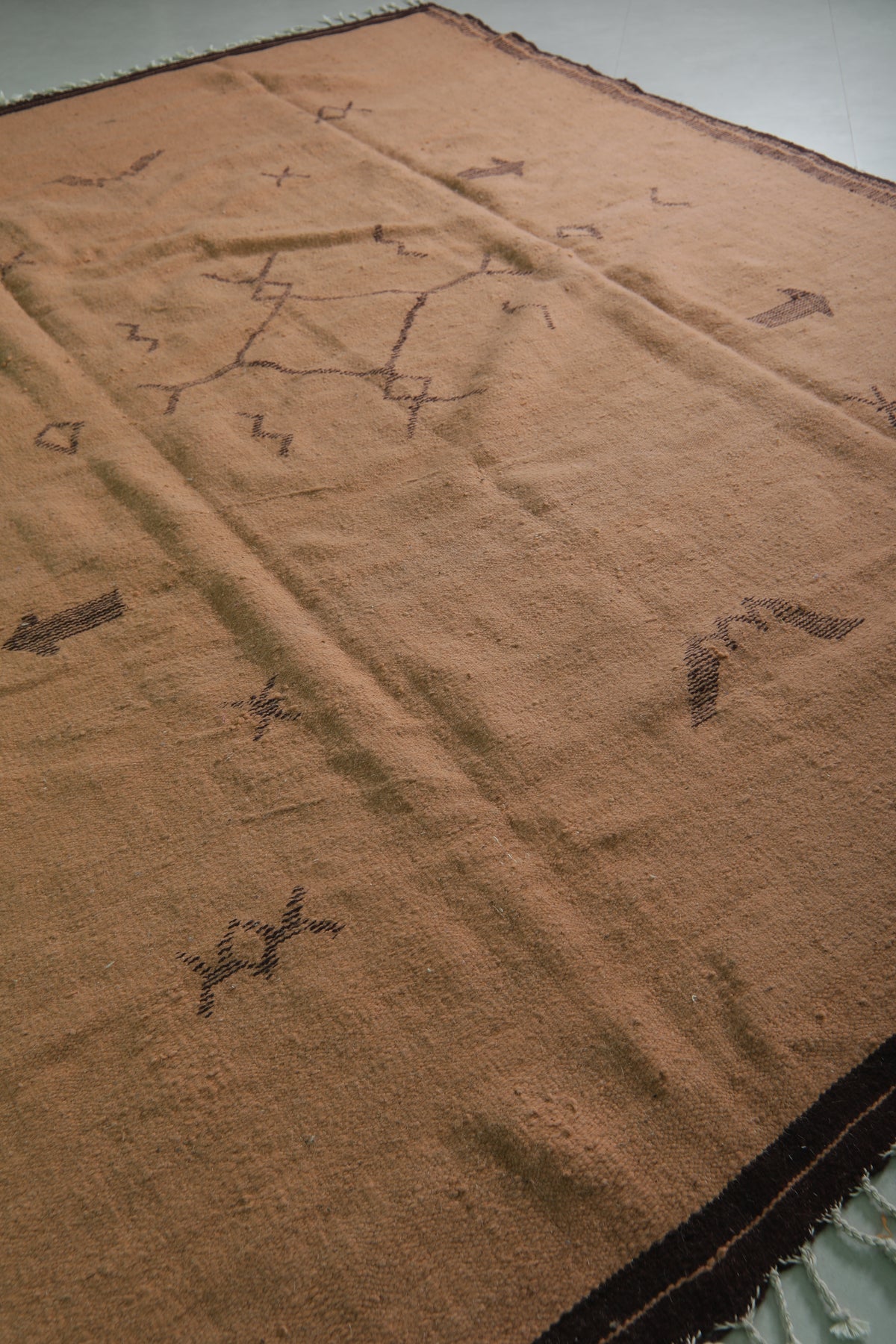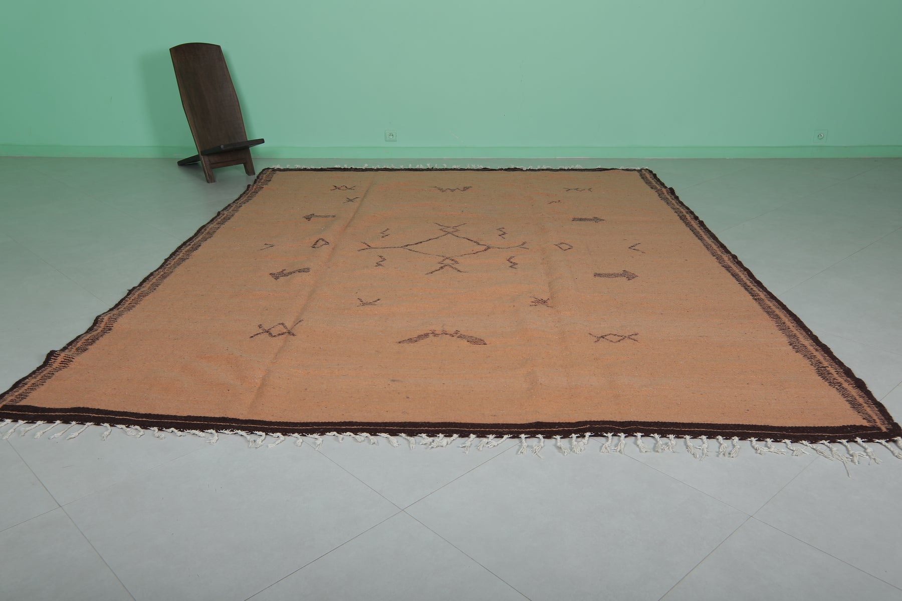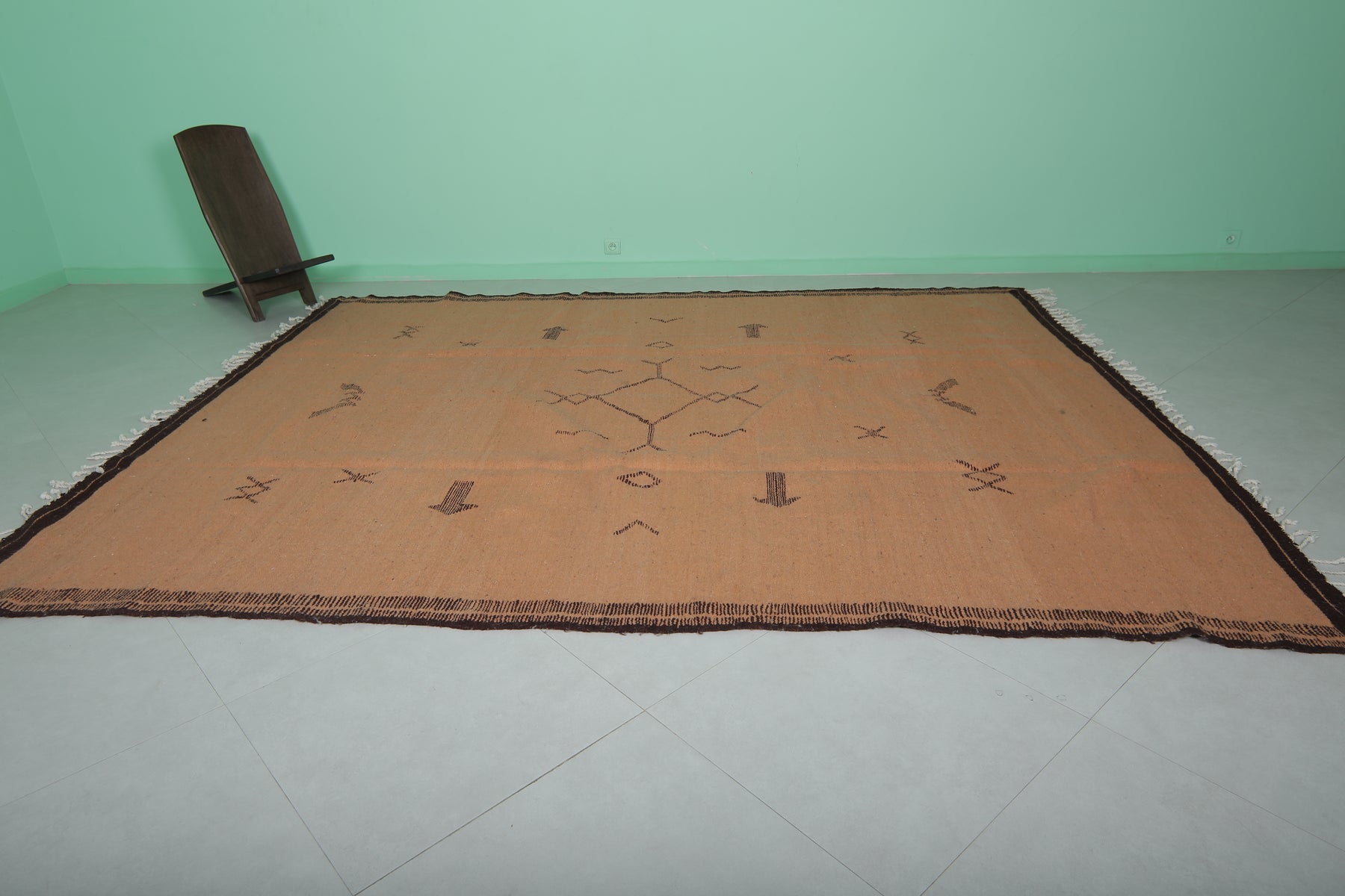 This 8.7 x 10.9 feet Azilal Moroccan rug blends earthy elegance with traditional tribal patterns on a warm brown background. Handwoven from high-quality wool, it showcases subtle Berber symbols that add a rustic and artistic charm to any space. Perfect for living rooms, bedrooms, or offices, this rug combines durability with Moroccan heritage.