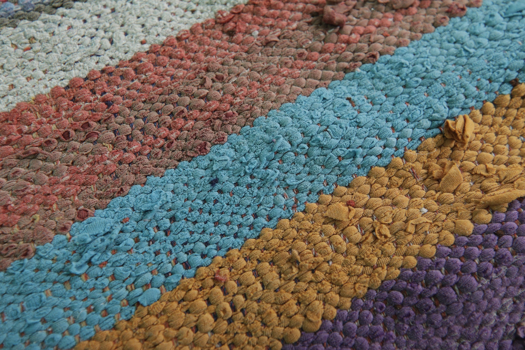 • Vibrant multicolored stripes create a bold and artistic statement.