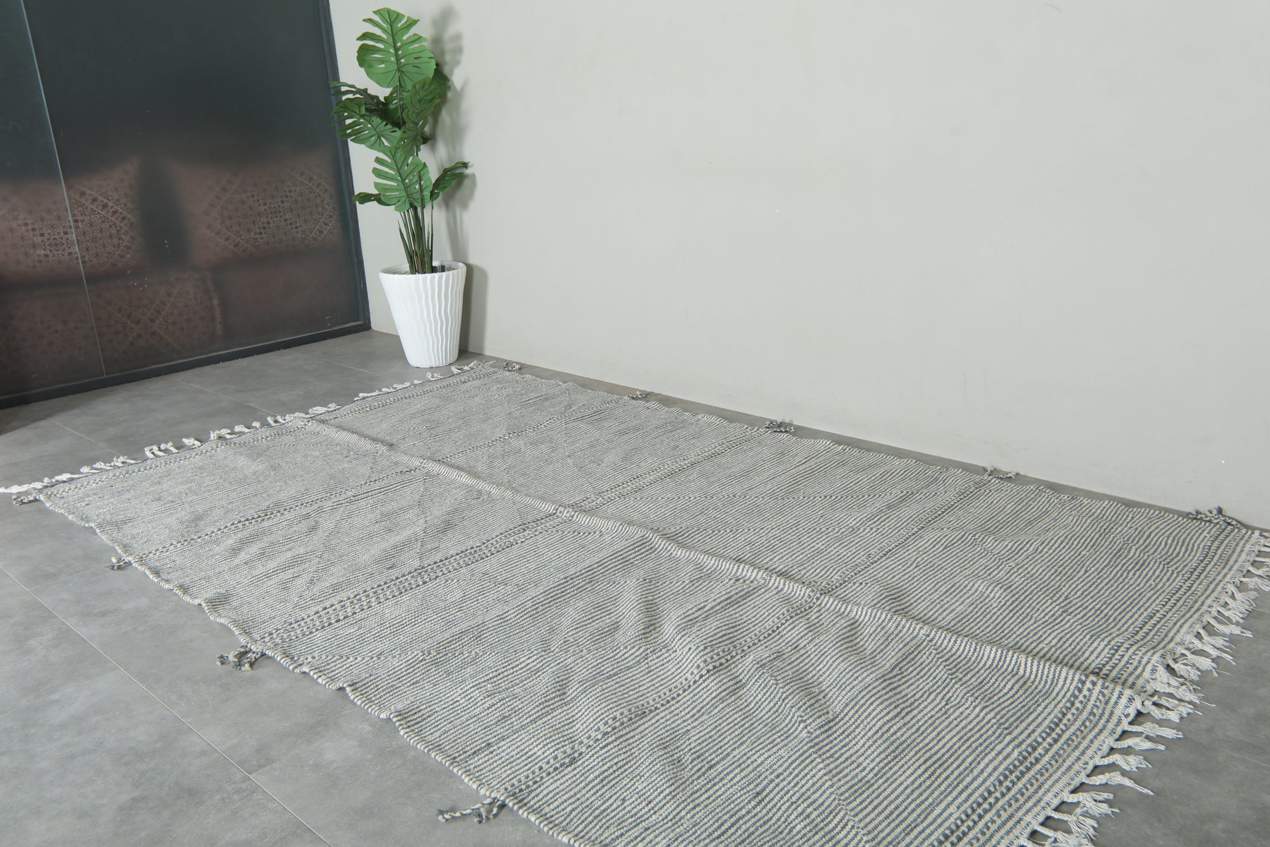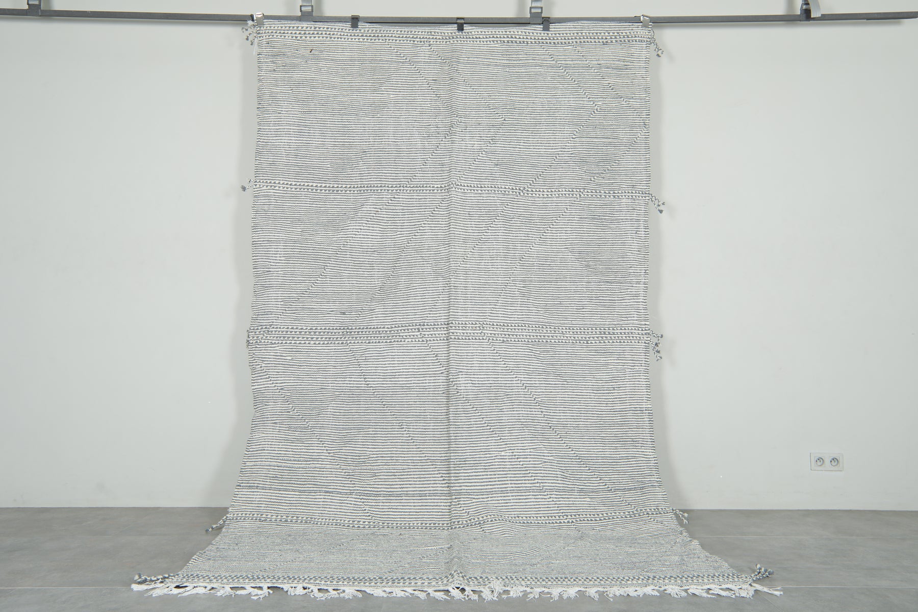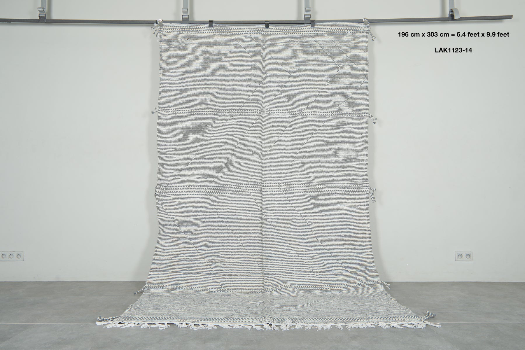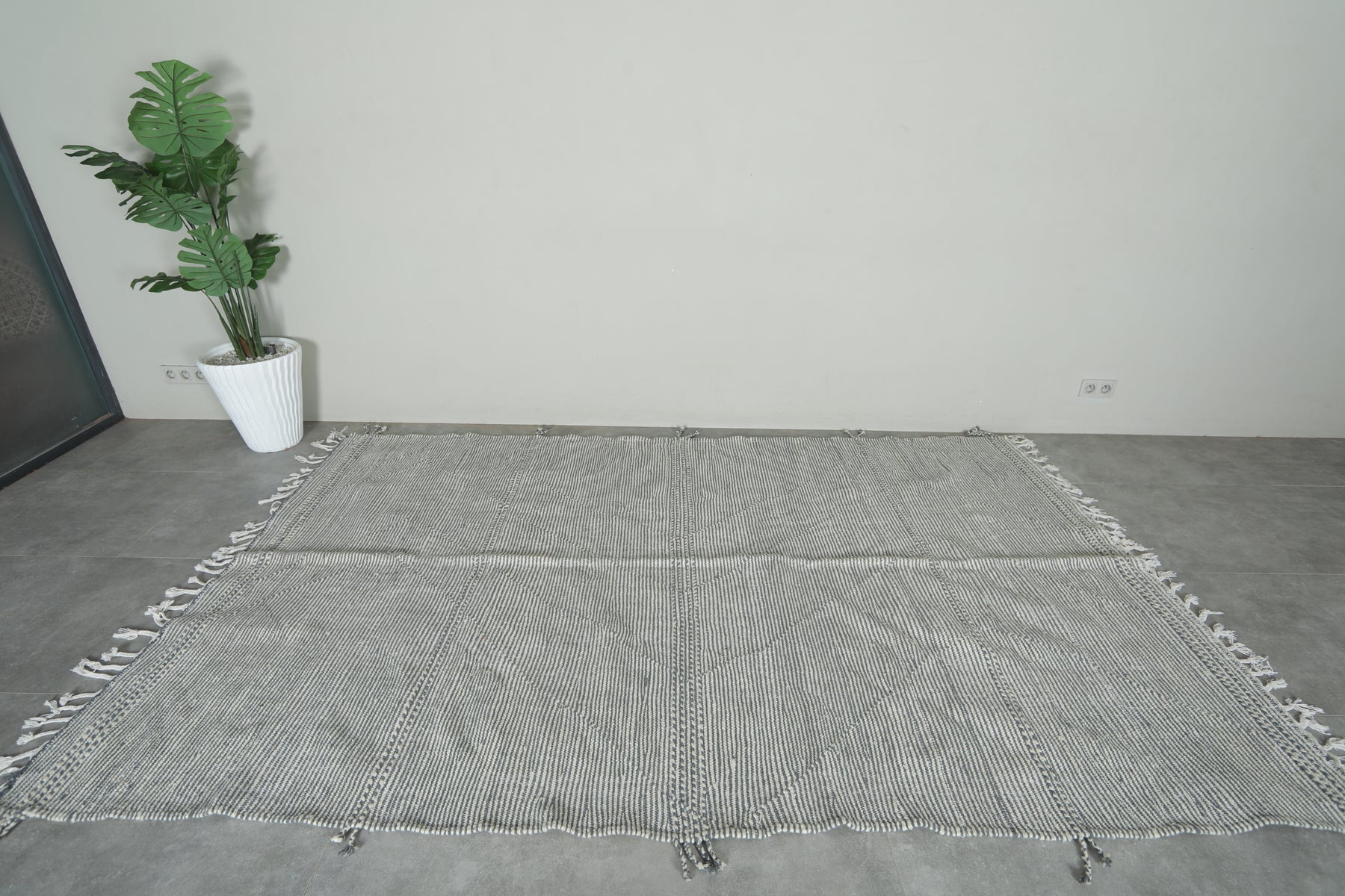 Gray & white striped Moroccan flatwoven rug - 6.4 ft x 9.9 ft