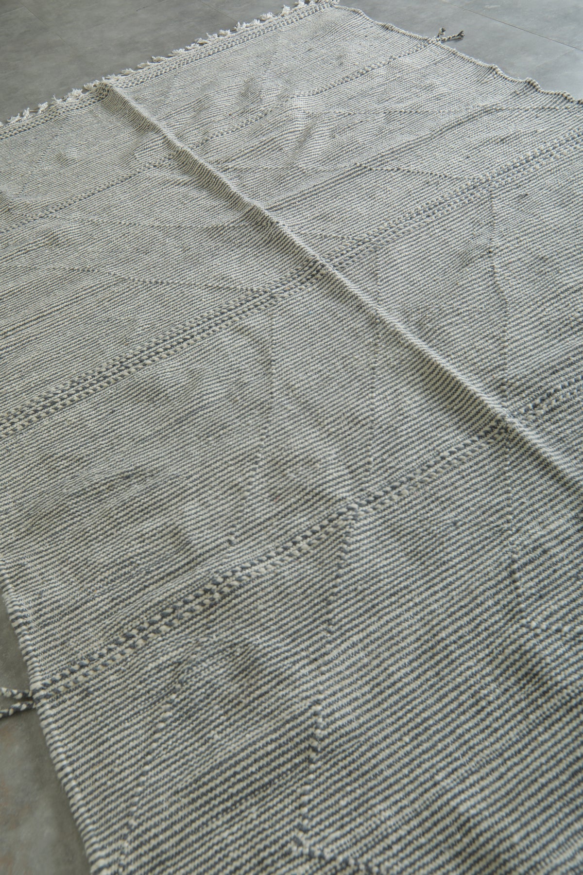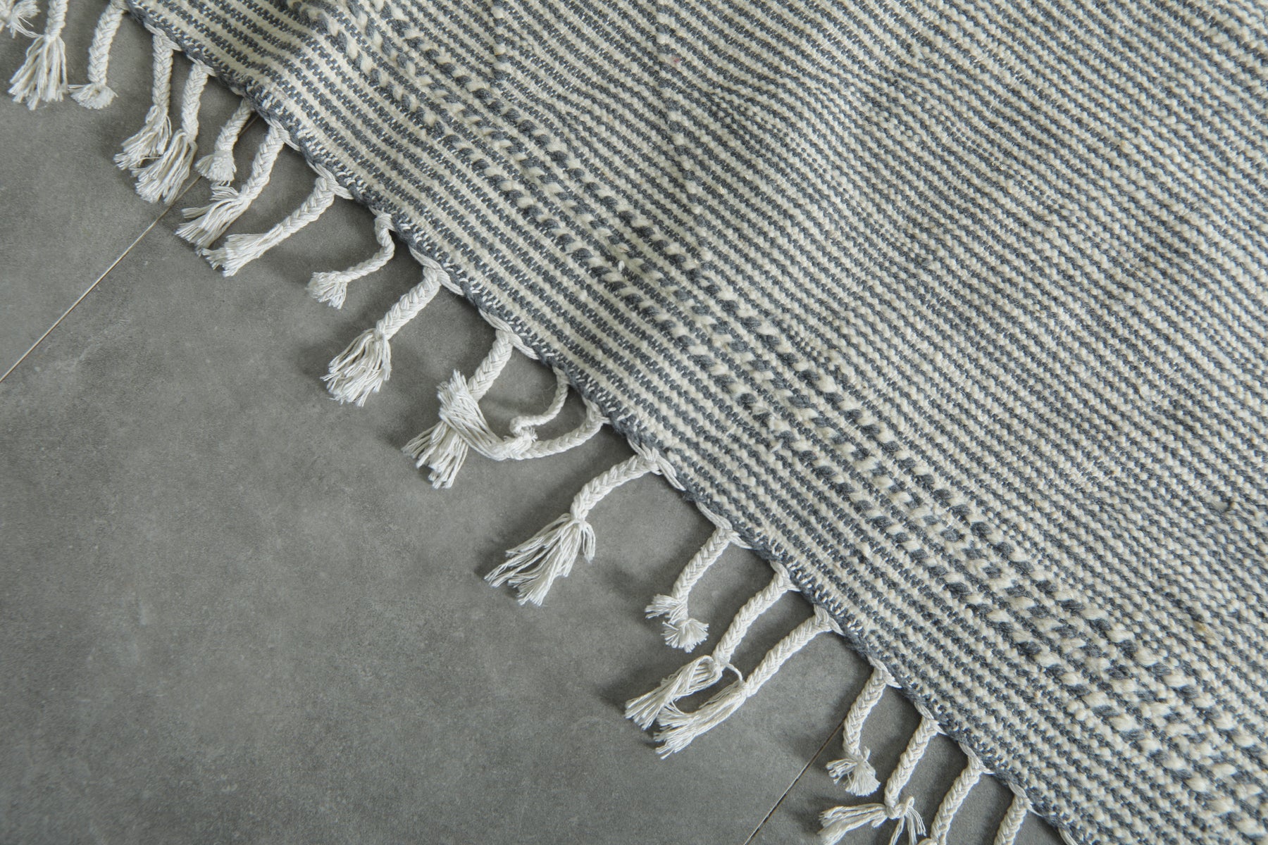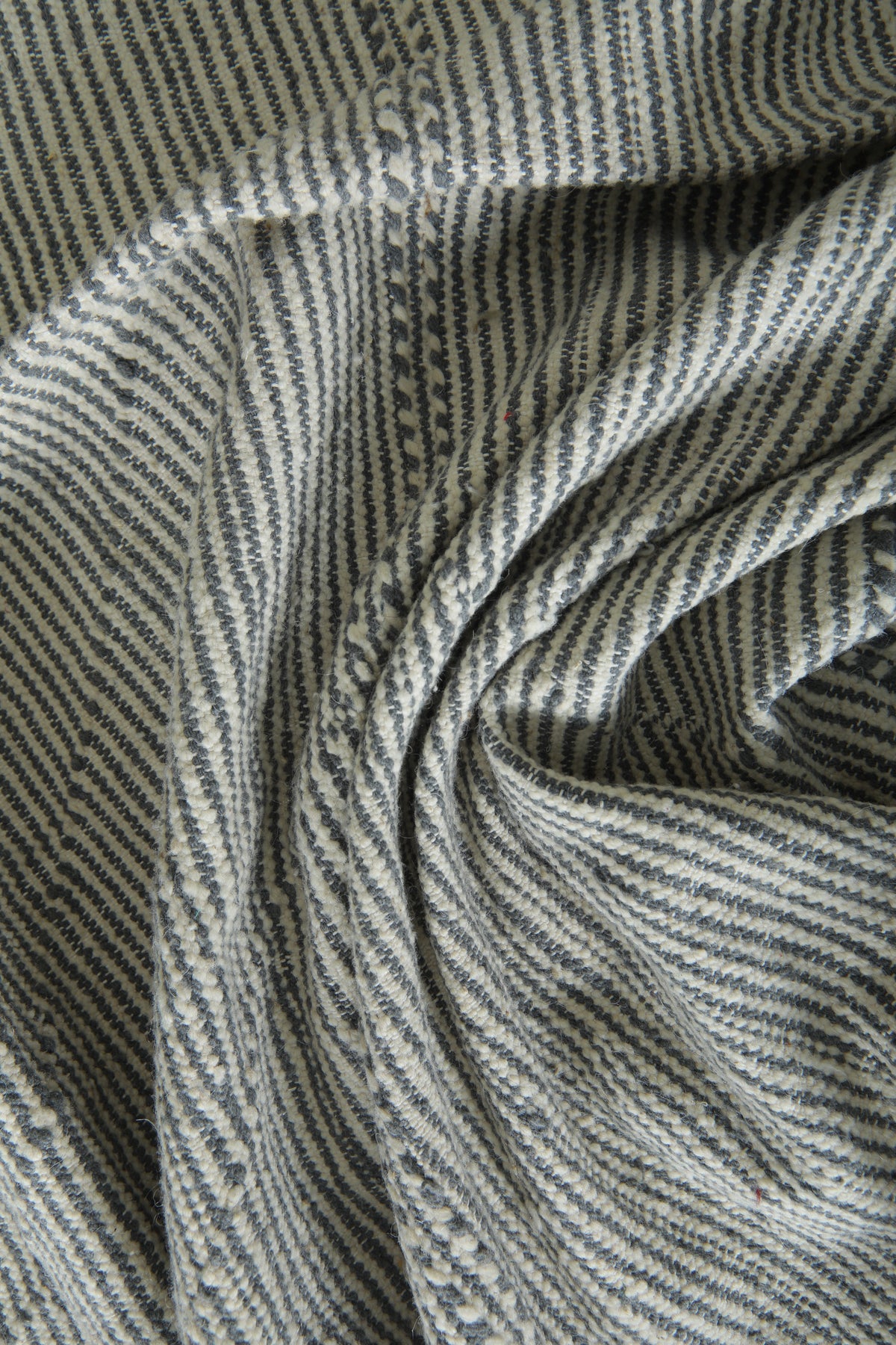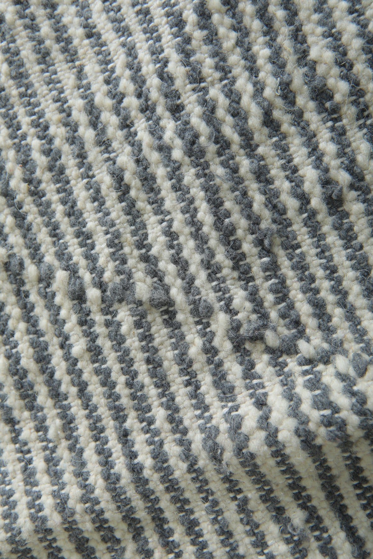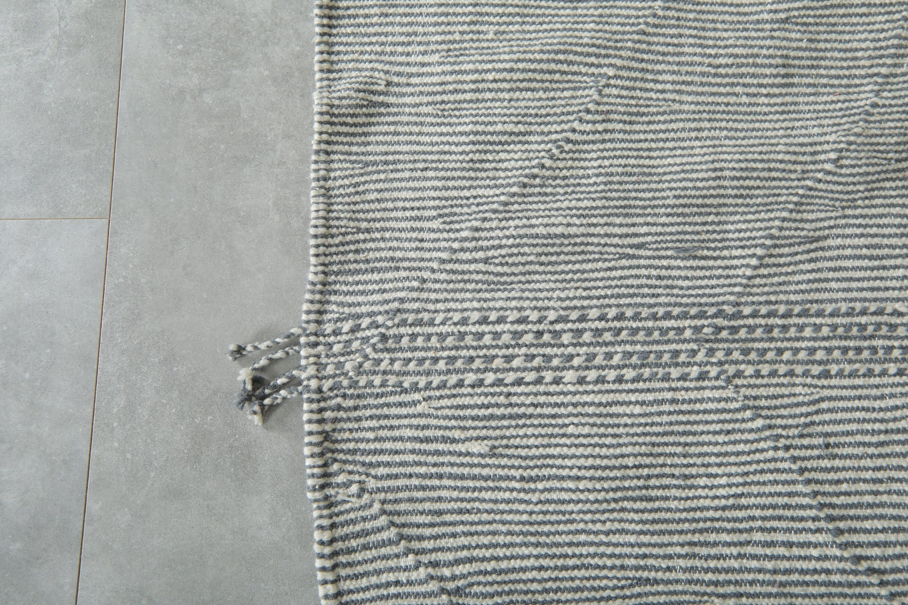 Elevate your home with this handcrafted flatwoven rug in a timeless white and charcoal gray stripe design. Made from natural wool, this minimalist rug blends durability with elegance, making it a perfect choice for modern, Scandinavian, or bohemian interiors. Its lightweight, reversible flatweave construction ensures easy maintenance while adding warmth and style to any living room, bedroom, or office space.