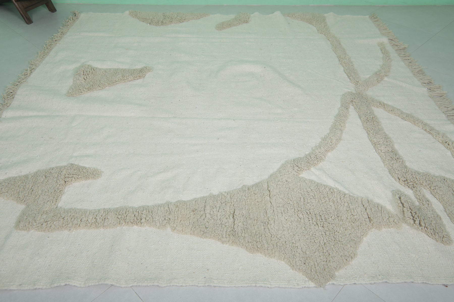 This 8.3 x 8.4 feet handwoven Beni Ourain Moroccan rug embodies elegance and tradition. Crafted from 100% natural wool by skilled artisans, it features a luxurious texture and intricate geometric patterns. The soft ivory tones and minimalist design create a warm and inviting ambiance, making it a perfect fit for contemporary, bohemian, and classic interiors.