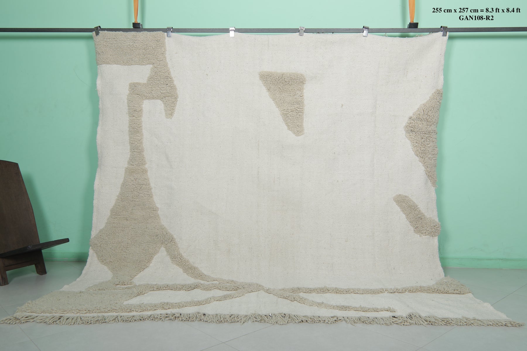 Handwoven Beni Ourain Moroccan Rug 8.3x8.4 FT - Natural Wool
