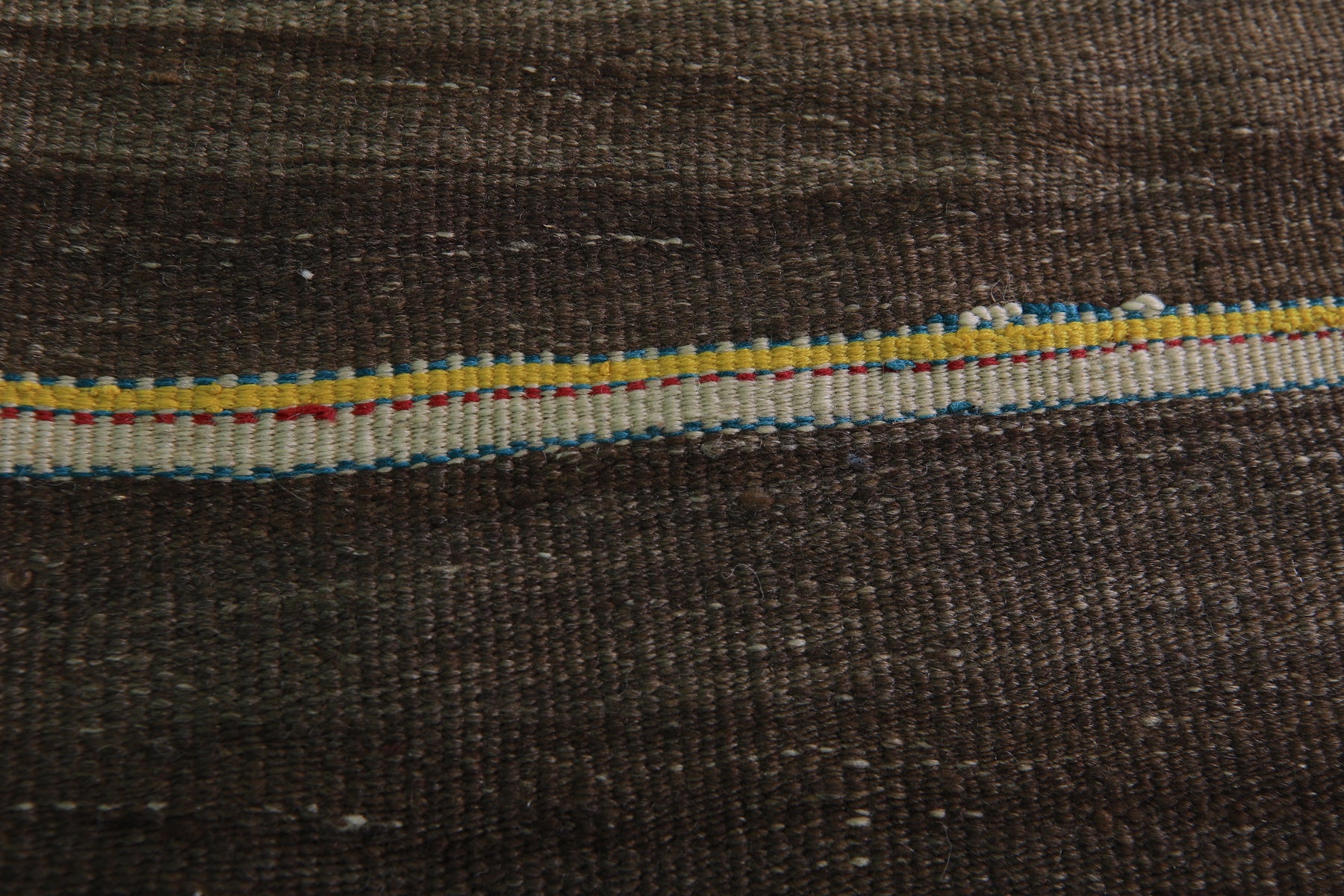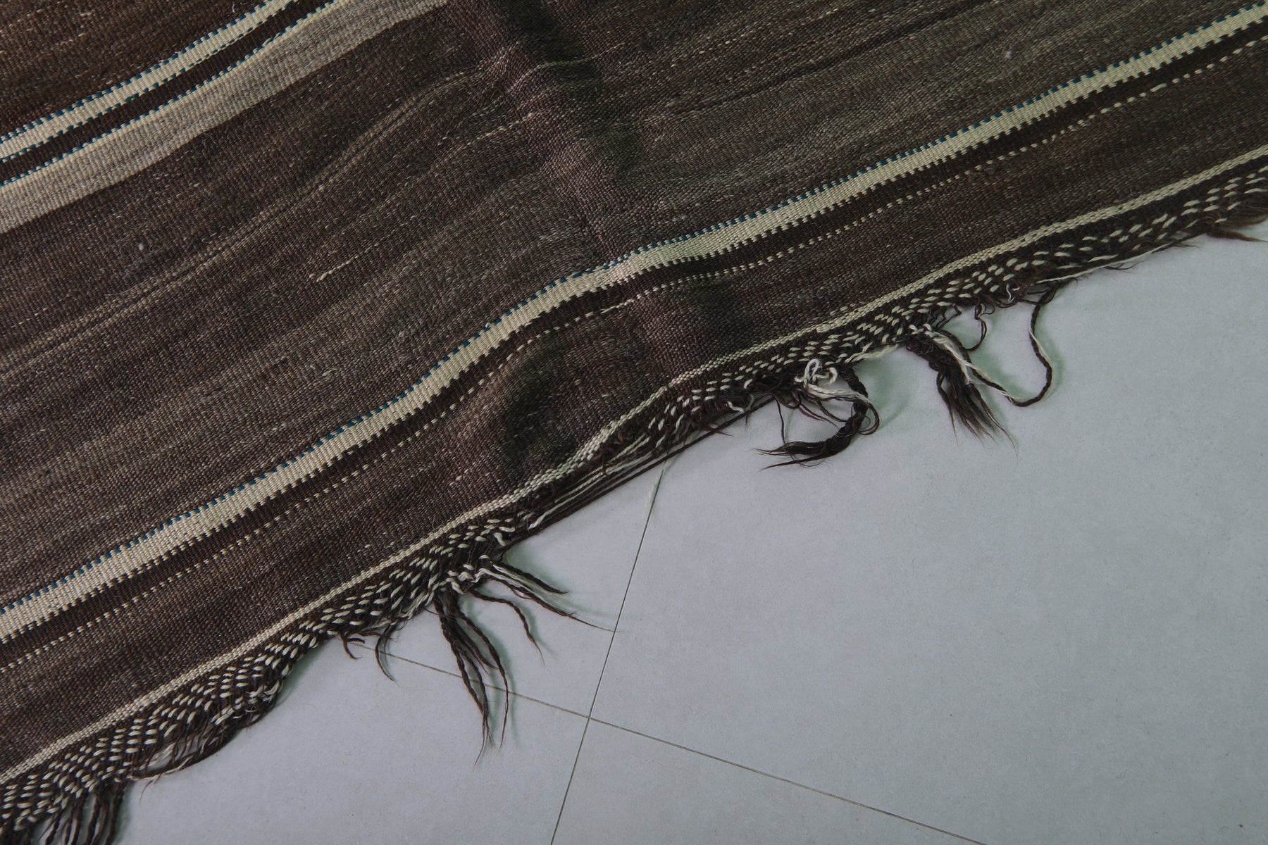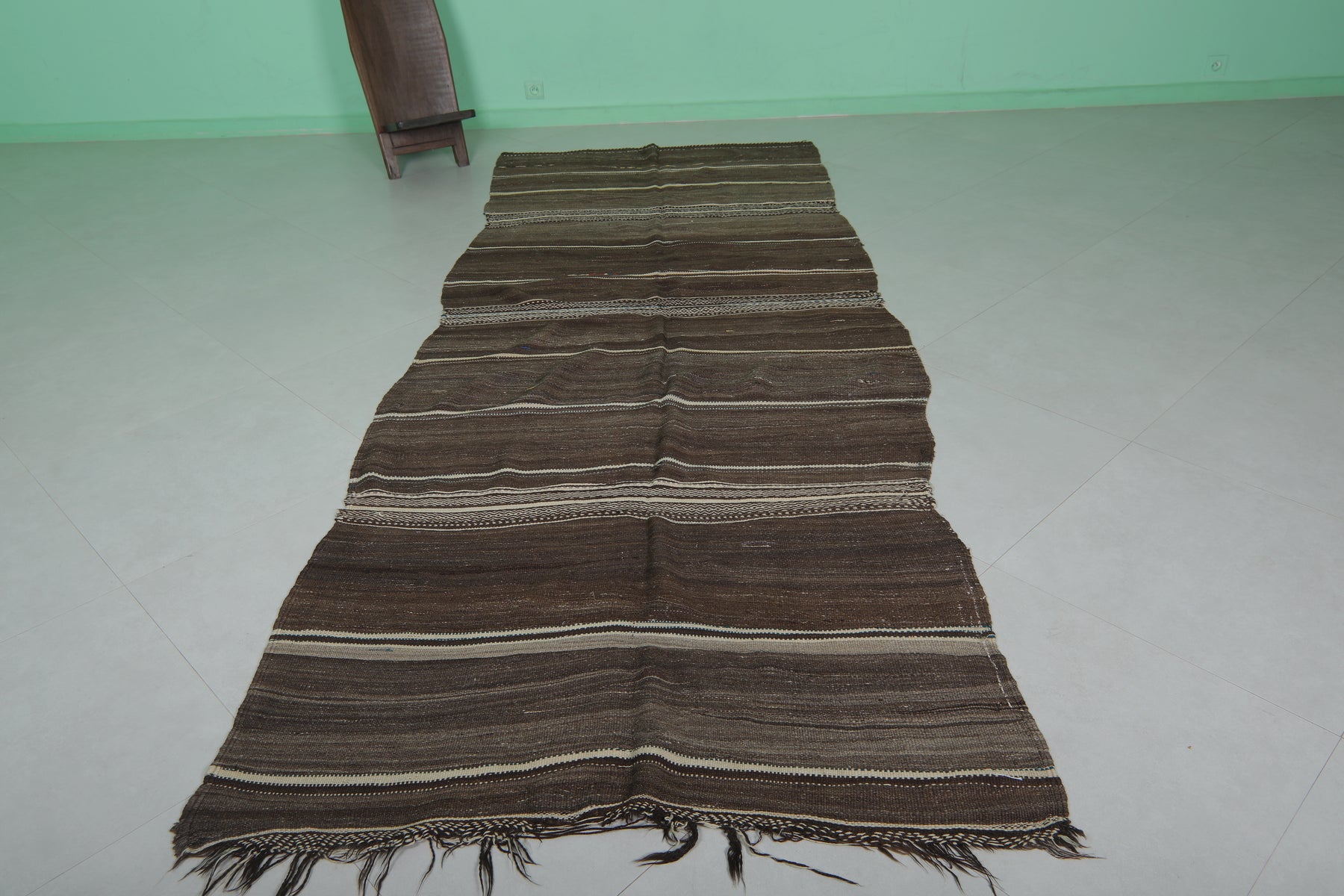 Handwoven Moroccan Kilim - Earthy Brown Striped Design - 4.2x11 ft - Handwoven Kilim