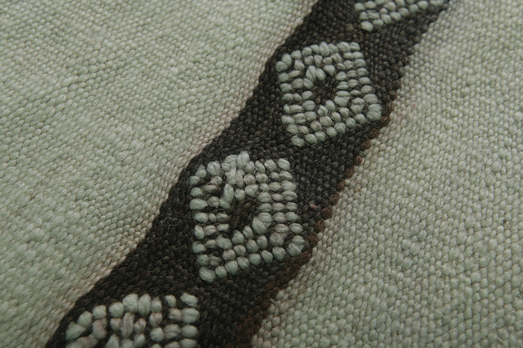 This 5.2 x 12.5 feet Handwoven Moroccan Kilim Rug features a minimalist geometric design on a neutral beige backdrop, creating a sophisticated and timeless appeal. Crafted by skilled Moroccan artisans, this rug is ideal for hallways, large dining areas, or spacious living rooms.
