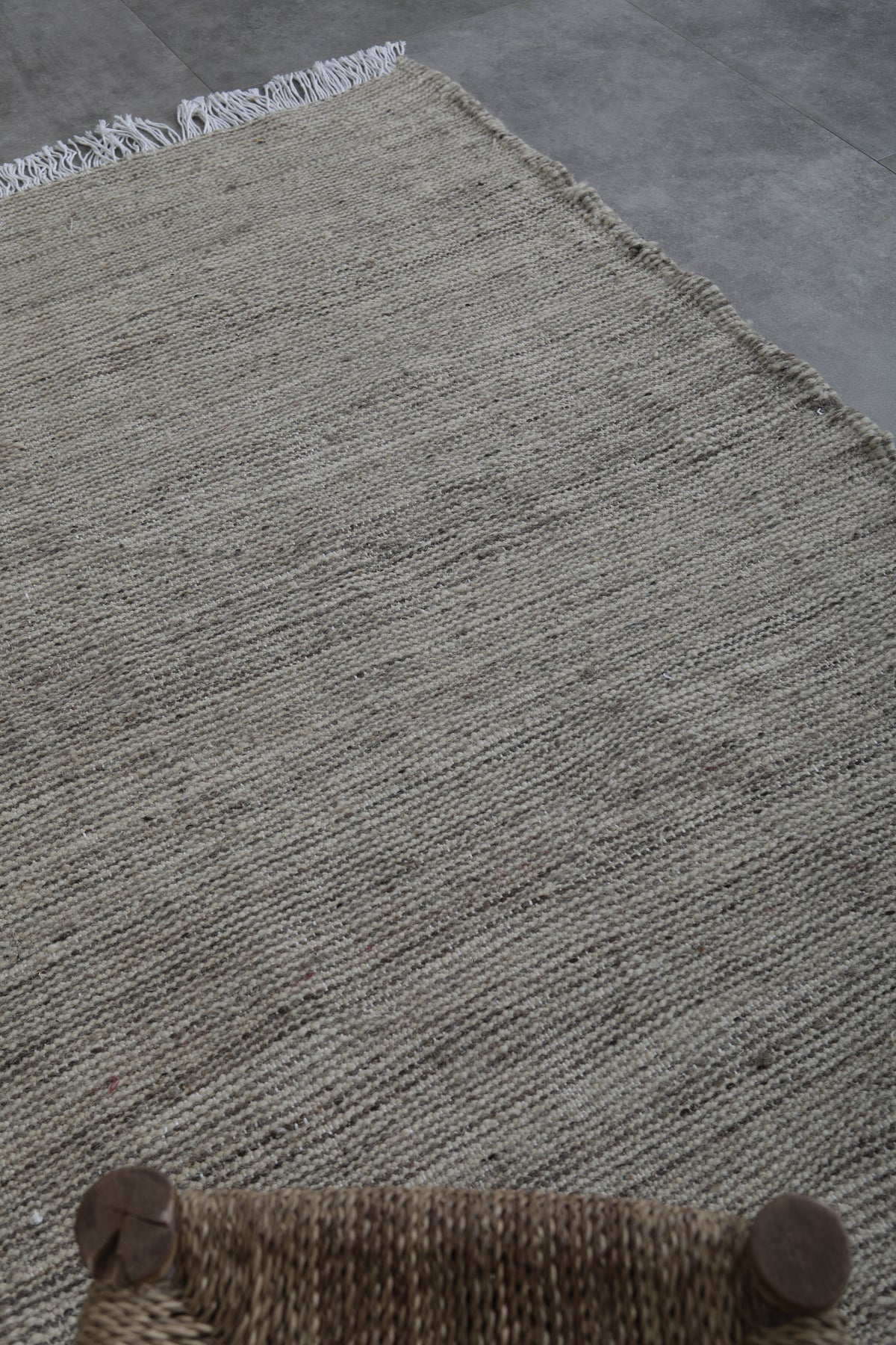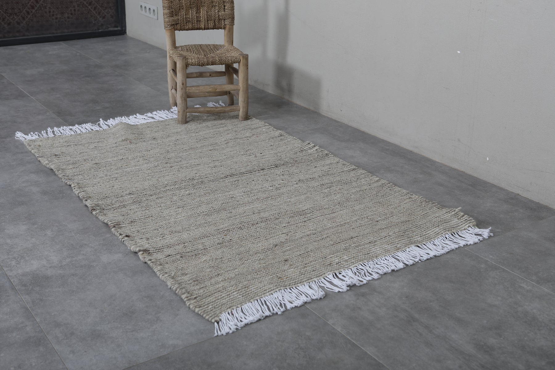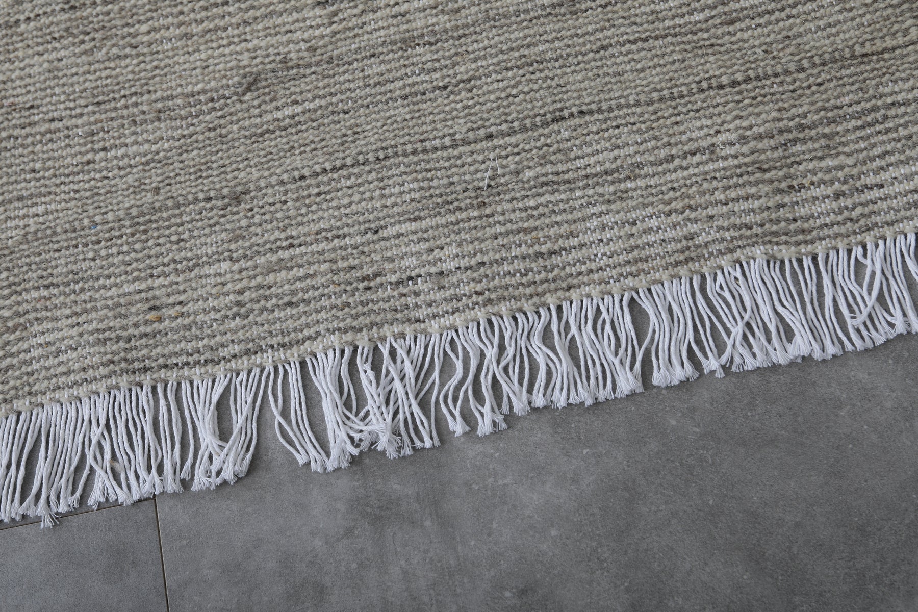 This 3.3 x 5.1 feet handwoven Moroccan rug brings natural elegance to any space with its soft, neutral tones and minimalist design. Crafted from 100% premium wool, it offers a plush texture and lasting durability, making it a perfect addition to living rooms, bedrooms, or office spaces.