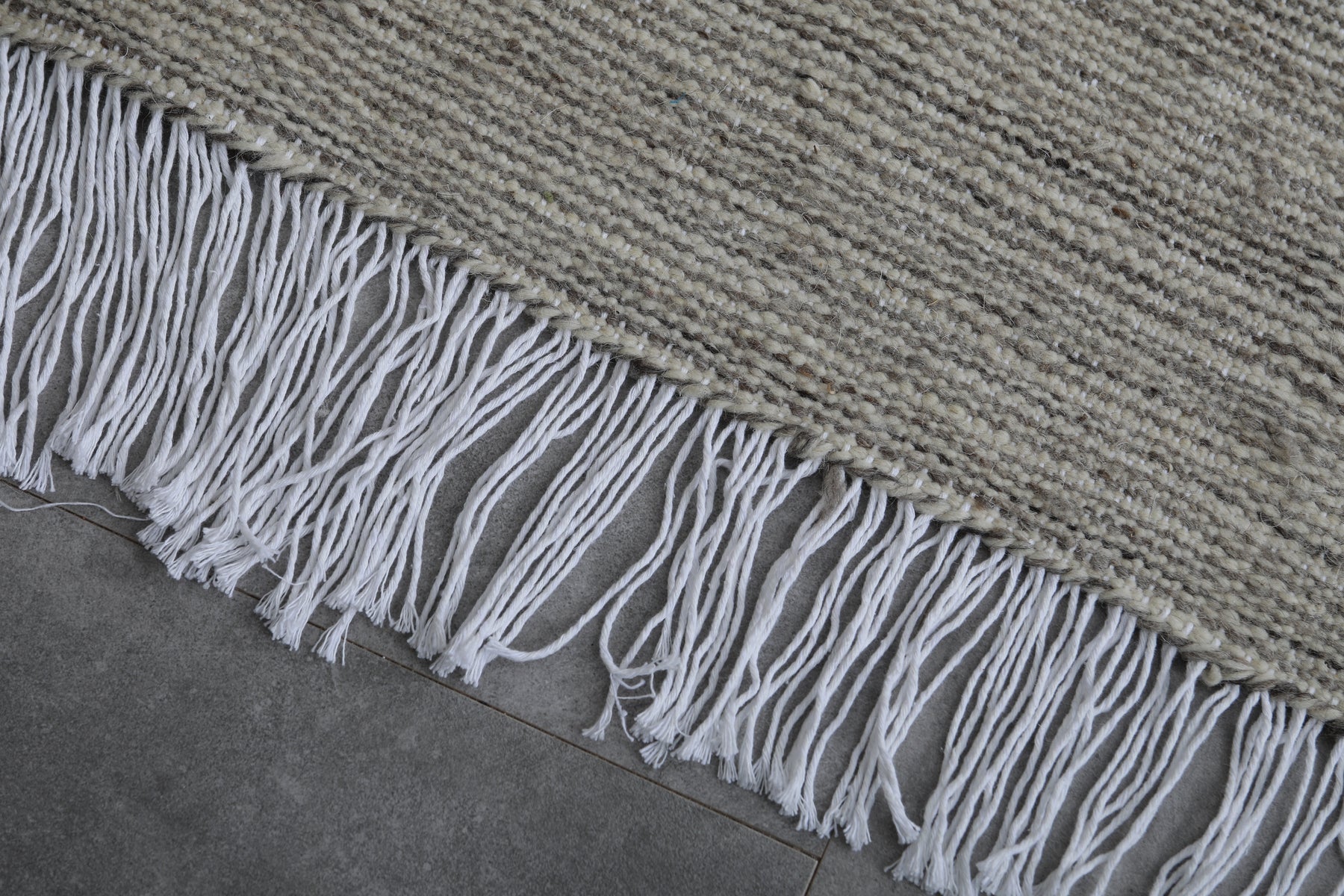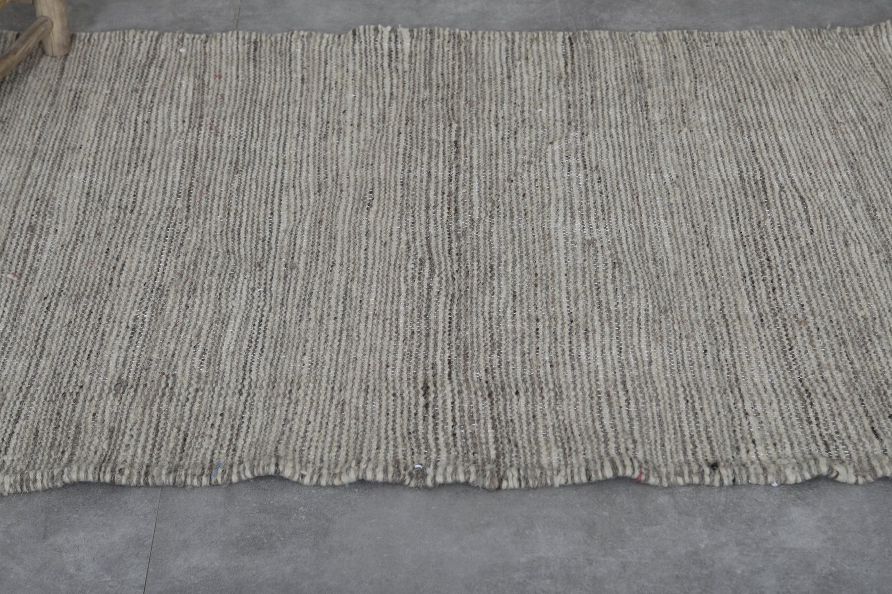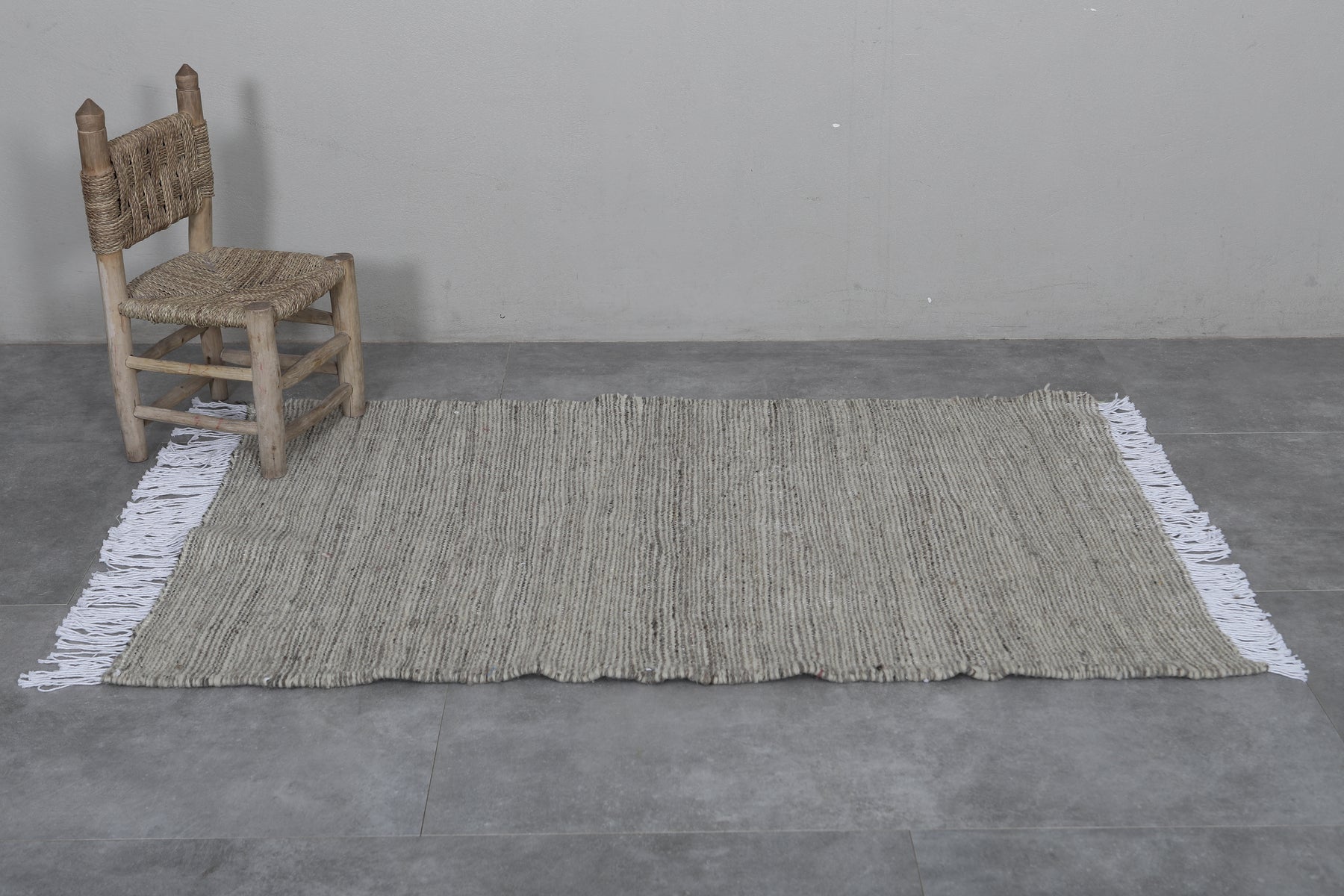 This 3.3 x 5.1 feet handwoven Moroccan rug brings natural elegance to any space with its soft, neutral tones and minimalist design. Crafted from 100% premium wool, it offers a plush texture and lasting durability, making it a perfect addition to living rooms, bedrooms, or office spaces.