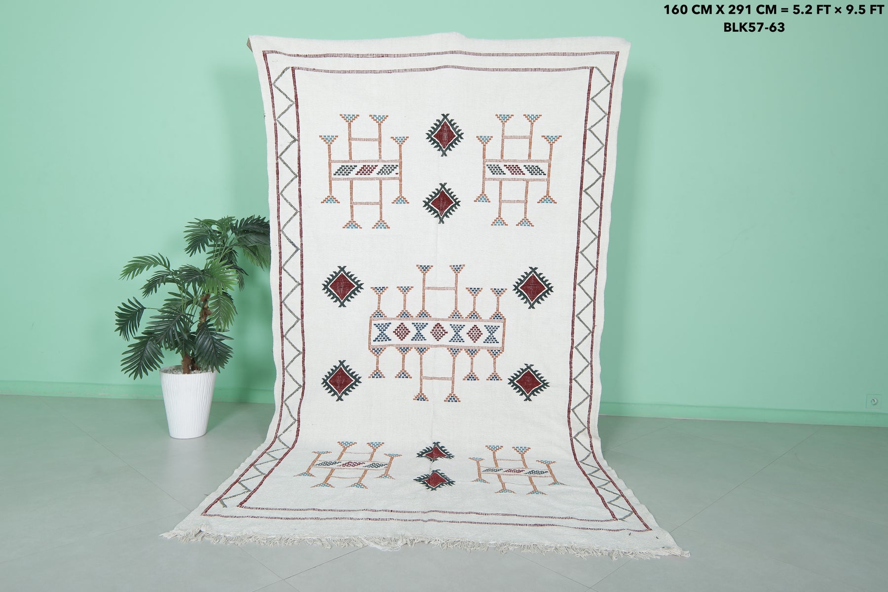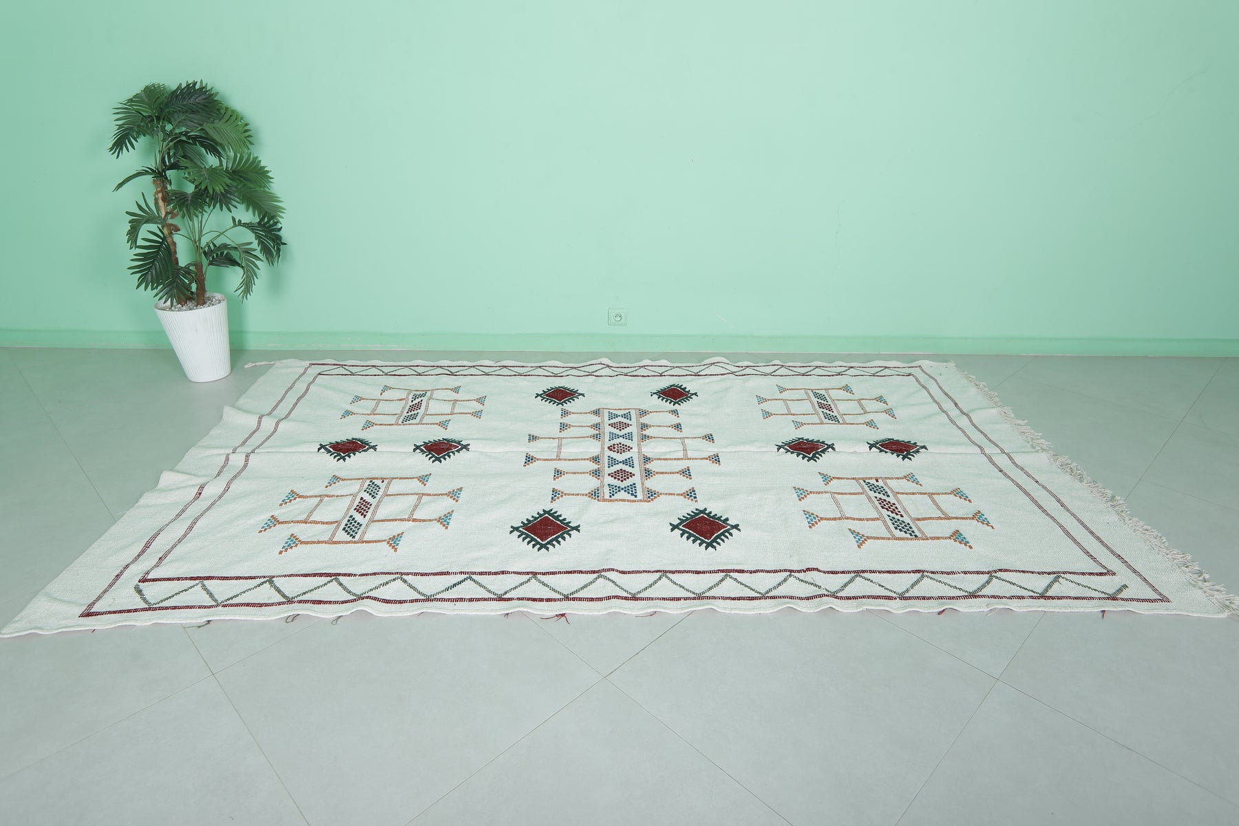 Moroccan Handwoven Kilim Rug 5.2 FT x 9.5 FT - Elegant Geometric Design