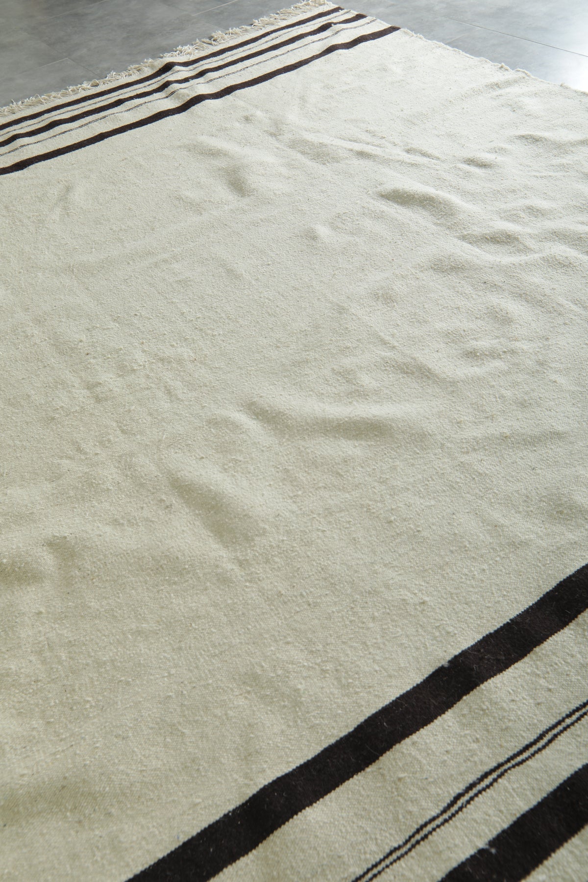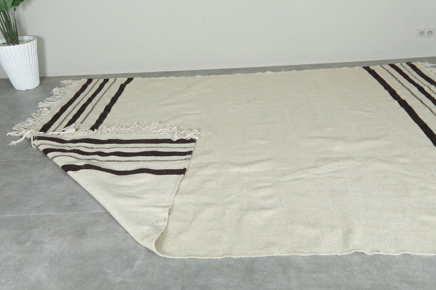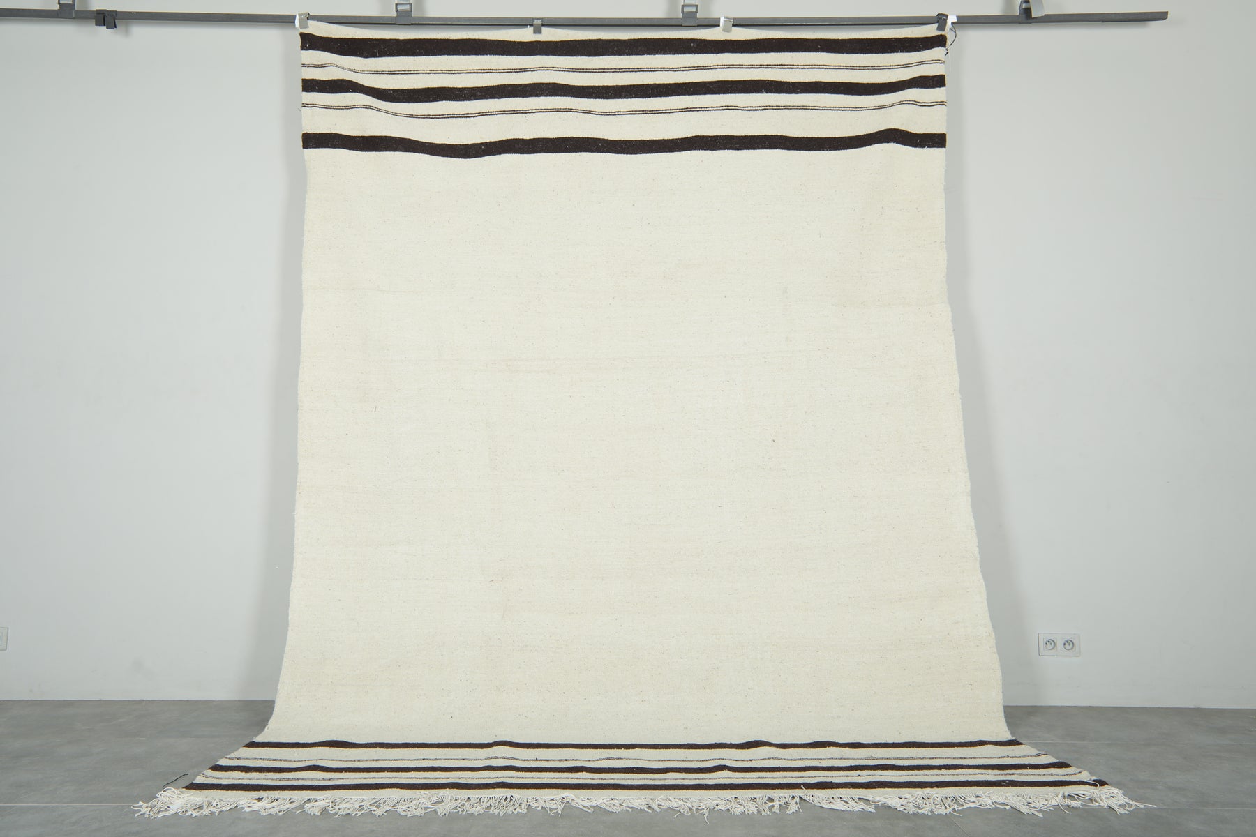 Moroccan kilim flatweave rug - Ivory with black stripes - 8 ft x 10.7 ft